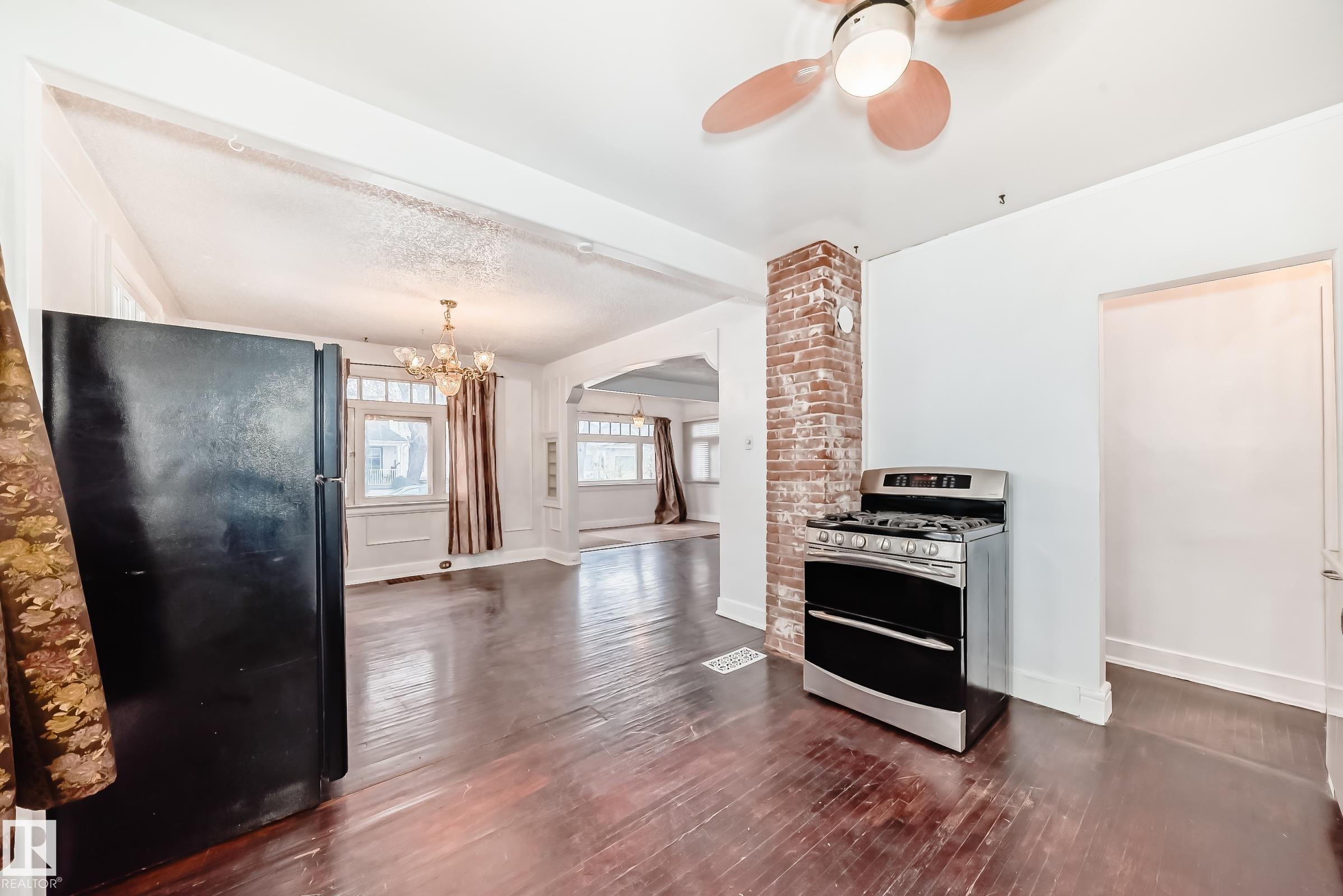 Very clean 1929 built custom built 2 bedroom character home plus a bonus loft home centrally located in the Alberta Ave neighborhood with 1,022 sq ft. The home features refinished oak hardwood floors on the main floor, lots of large windows for endless natural light throughout the home, with decorative decor throughout, vaulted ceiling in large living room with operational gas fireplace, dining room, and a large full bathroom. The kitchen was renovated with quartz countertops, butcher block, gas stove, 2 refrigerators, and microwave. And a bonus to the home the main floor has a freshly painted loft that matches the incredible decor of this home. The full basement is unfinished and great for storage. The garage is a single detached with and attached carport. The home is on a very nice quiet street just a short distance to Nait and Kingsway Garden Mall and shops an Cafes on 118 ave.