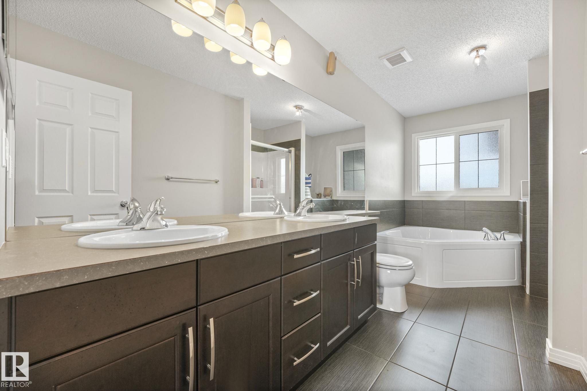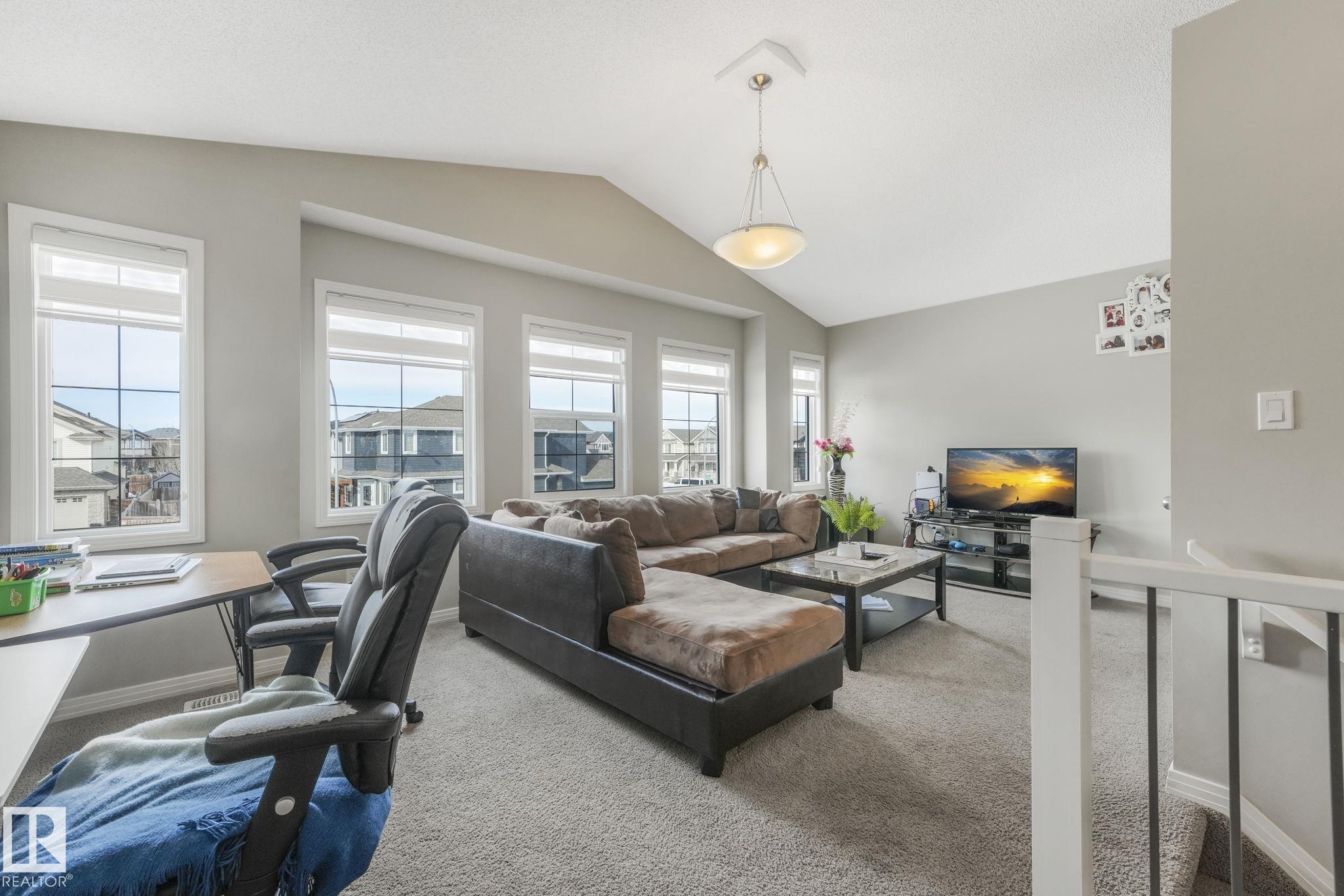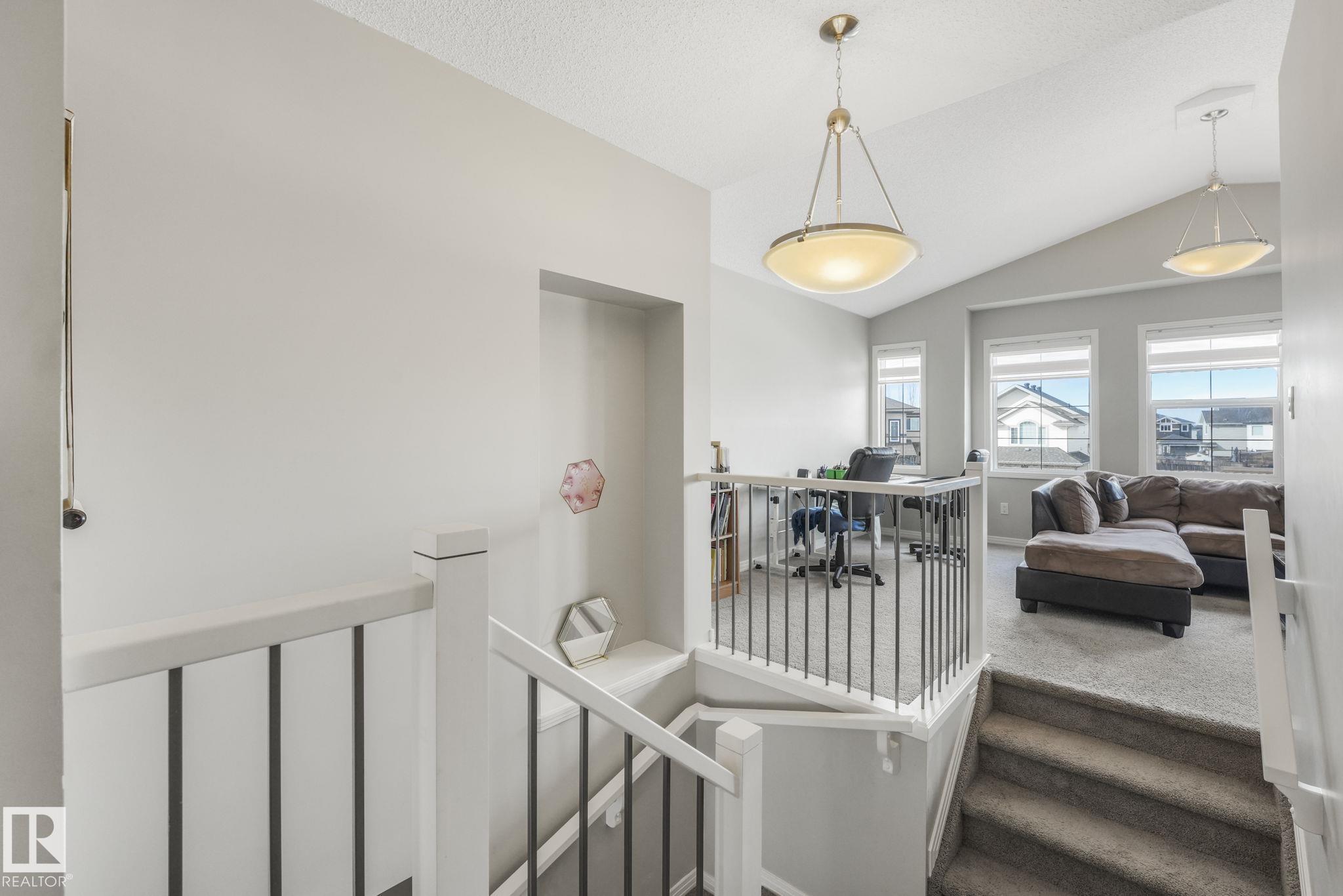 STUNNING FAMILY HOME IN CARLTON! Beautifully maintained by the original owners, this exceptional 2 storey offers a bright open design, A/C, elegant upgrades & large windows that fill the home with light. The main floor features a gorgeous chef's kitchen, tall espresso cabinetry, quartz countertops, corner pantry, high-end s/s appliances & large eat-up island--perfect for entertaining. The dining area opens to the deck with maintenance-free railings & flows into the inviting living room with a modern fireplace. A 2-pc bath & convenient mudroom complete the main level. Upstairs you'll find a huge vaulted bonus room with oversized windows, laundry, 3 beds & full bath. The spacious primary suite offers a w/i closet & luxurious 5-pc ensuite with corner soaker tub & separate glass shower. The unfinished basement provides excellent future potential. Outside has great curb appeal, fenced yard & insulated, drywalled d/attached garage. Ideally located near parks, schools & shopping--an incredible place to call home!!