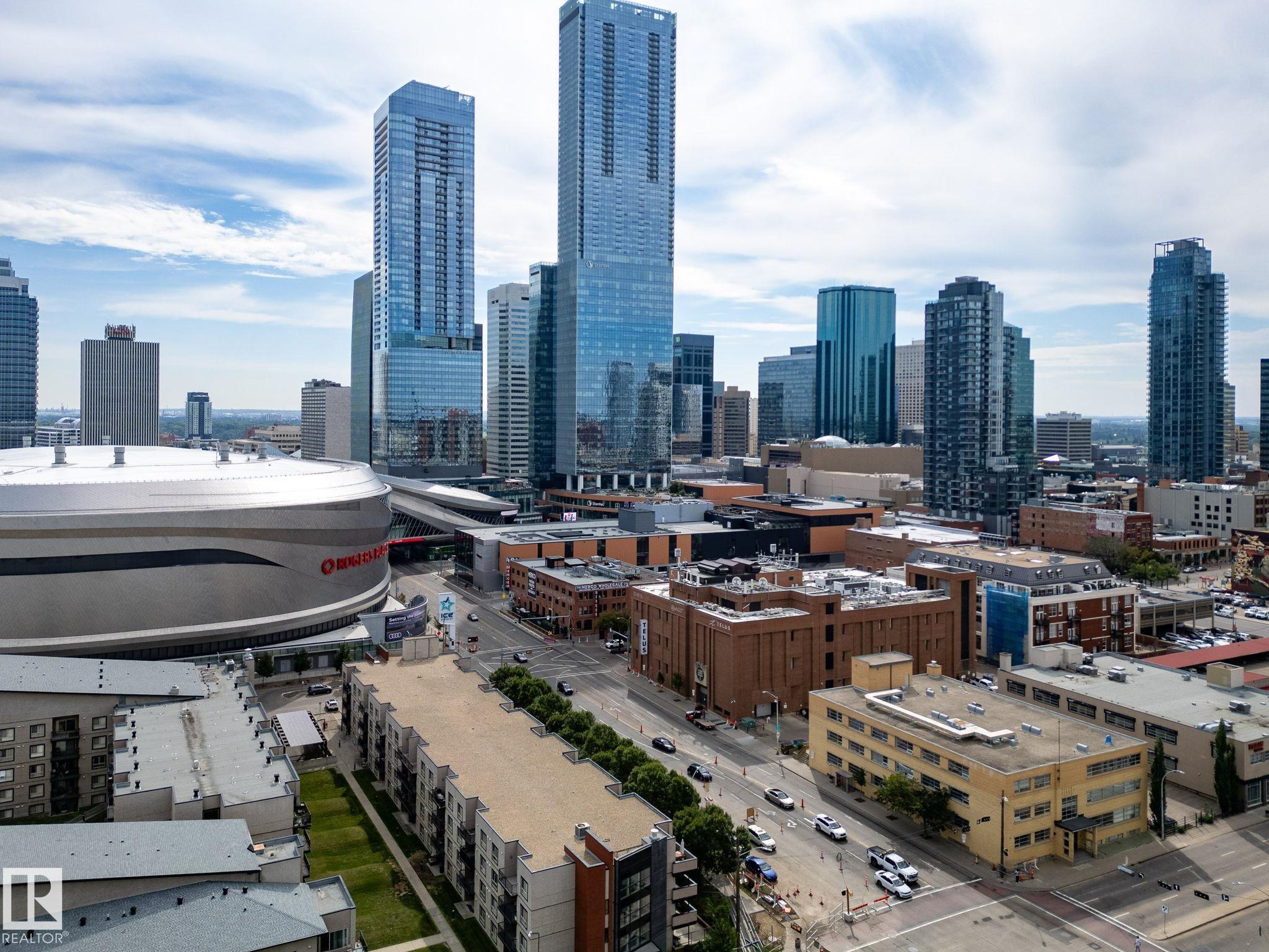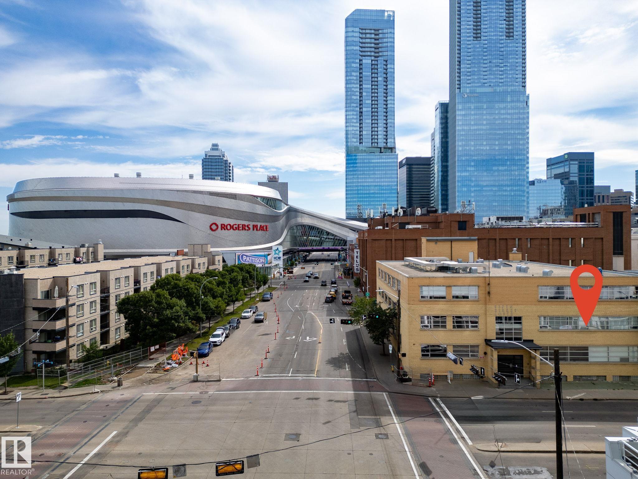 FIFTH STREET LOFTS! RARE CORNER UNIT WITH WRAP-AROUND WINDOWS! Looking for a turnkey rental? MOST OF THE FURNITURE IS INCLUDED (bed, couch, coffee table, bar stools, night stand) IF BUYER DESIRES! This building was initially built by Poole Construction (PCL) in 1951 for the Goodyear Tire Company, and was later converted into lofts by renowned local firm Dub Architects in 1999. You will love this bright corner unit with 12ft ceilings, updated kitchen, & polished concrete flooring! This location can't be beat. You are steps from Grant MacEwan University, Rogers Place, Downtown's best restaurants, pubs, & coffee shops. Quick access to LRT, UofA, & River Valley. This condo is perfect for Downtown professionals, students, or anybody who enjoys living in a unique property with central location. Unit comes with a secured (gated) & energized parking stall, plus an indoor storage cage! Own a unique piece of Edmonton's history while enjoying a stylish, affordable condo and incredible location! Come check it out!