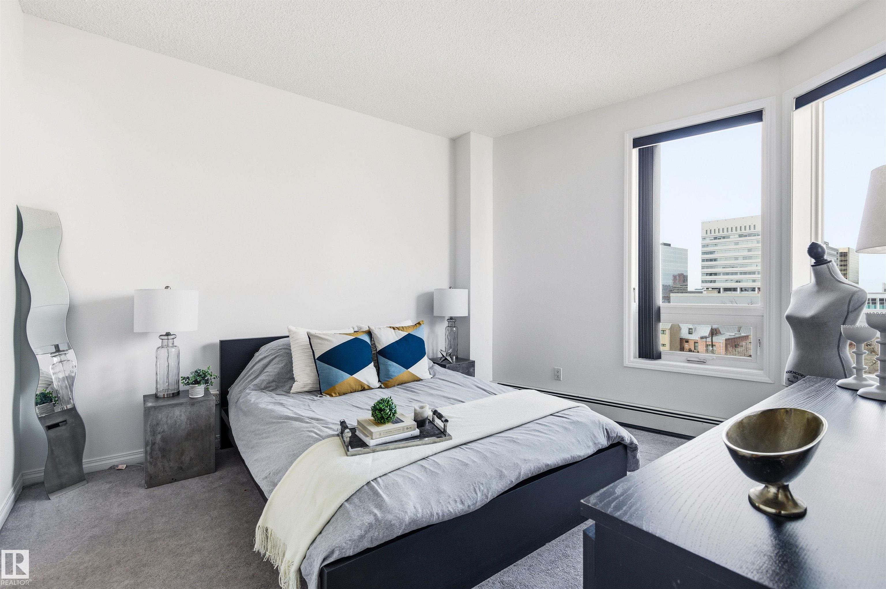 Stylish and well-designed downtown condo offering incredible convenience and value! This bright and functional unit features an open living and dining area, spacious bedroom, full 4-piece bath, and in-suite laundry for everyday ease. The kitchen provides ample storage and flows seamlessly into the main living space, perfect for entertaining or relaxing. Enjoy your private balcony and the added comfort of HEATED UNDERGROUND PARKING-ideal for Edmonton winters. Located in the heart of downtown, you're just steps to restaurants, shopping, transit, river valley trails, and all amenities. Condo fees of $482.12 include heat and water, making ownership simple and predictable. An excellent opportunity for first-time buyers, professionals, or investors seeking a prime central location!