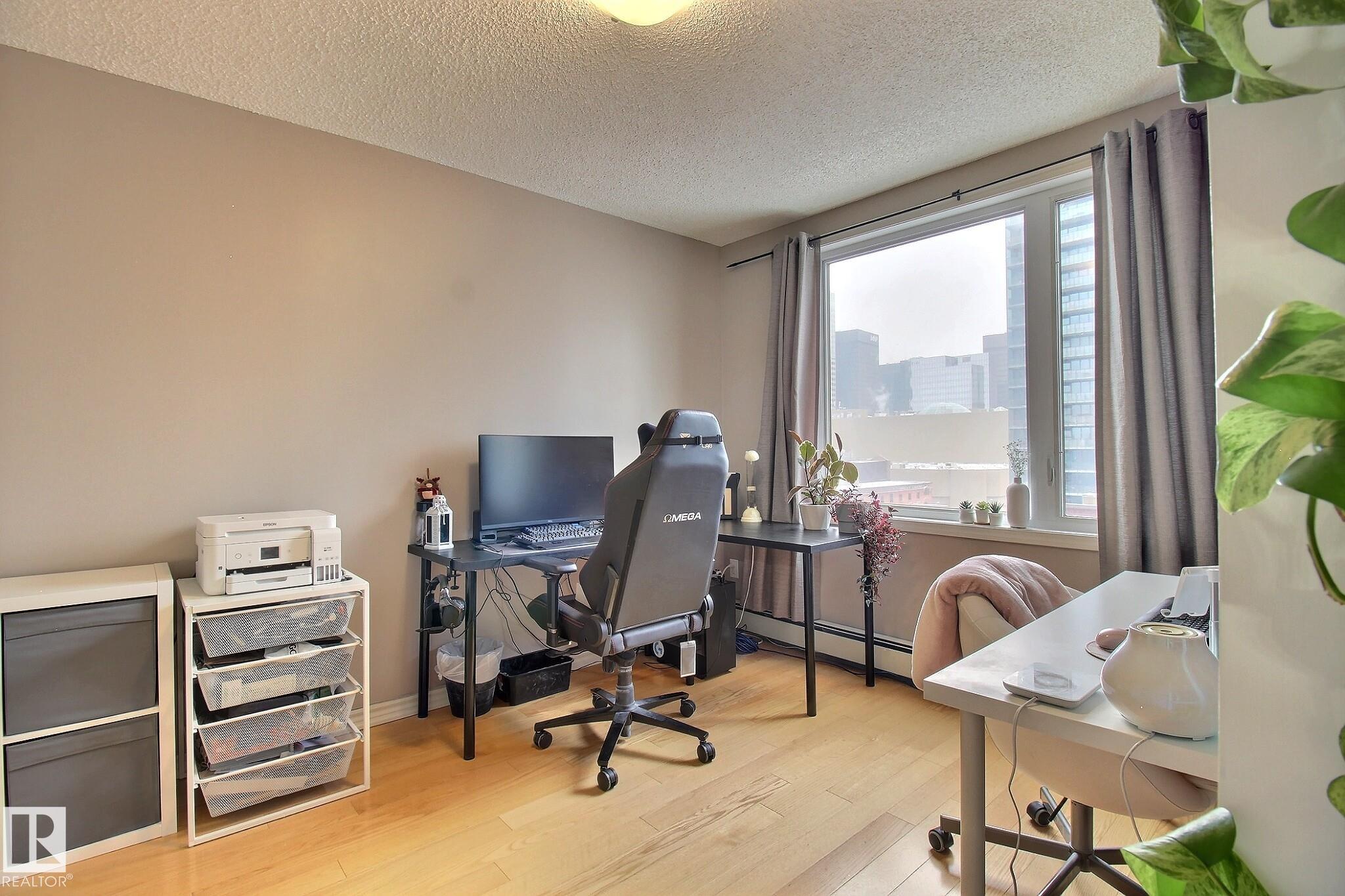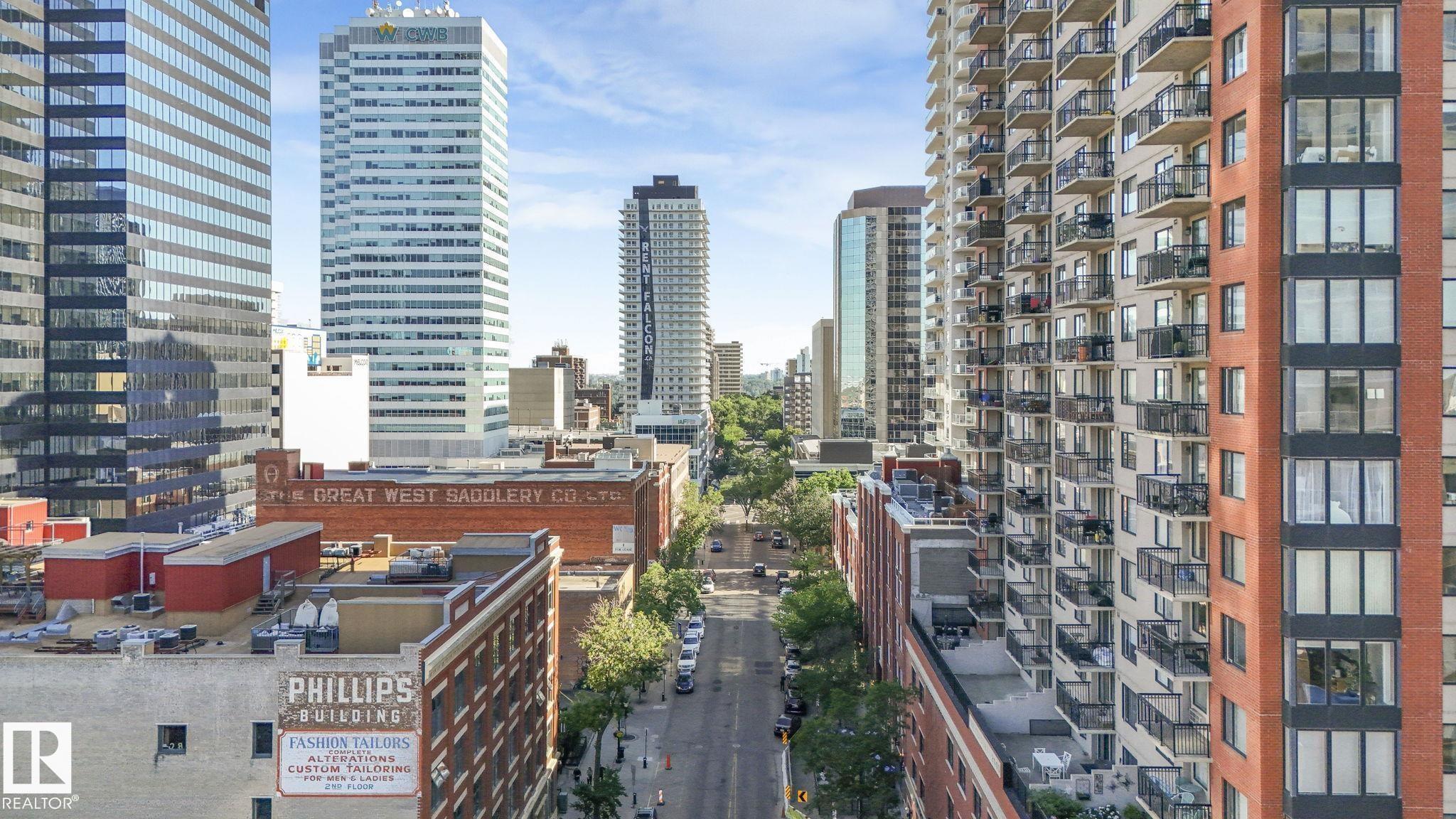 Downtown Living Steps from Everything on Vibrant 104 Street! This bright and stylish 2 Bedroom, 1 Bathroom condo offers 775 Sq Ft with titled heated underground parking, In-Suite Laundry and additional Storage. Featuring Hardwood Floors, Maple Cabinetry and Stainless Steel Appliances, the open concept layout is filled with natural light from oversized windows. The Primary Bedroom includes a Walk Through Closet with direct access to the Bathroom, while the Second Bedroom offers a Walk In Closet plus extra storage. Enjoy your private East Facing Balcony with Downtown Views and a Gas Line for a BBQ or Firepit. Located in a well managed concrete building with a Fully Equipped Fitness Facility. Walk to Grocery Stores, Restaurants, Bars, Rogers Place, Coffee Shops, the 104 Street Farmers Market, Ice District and LRT with easy access to the University of Alberta and MacEwan. Incredible value in a prime location, perfect for professionals, students or investors!