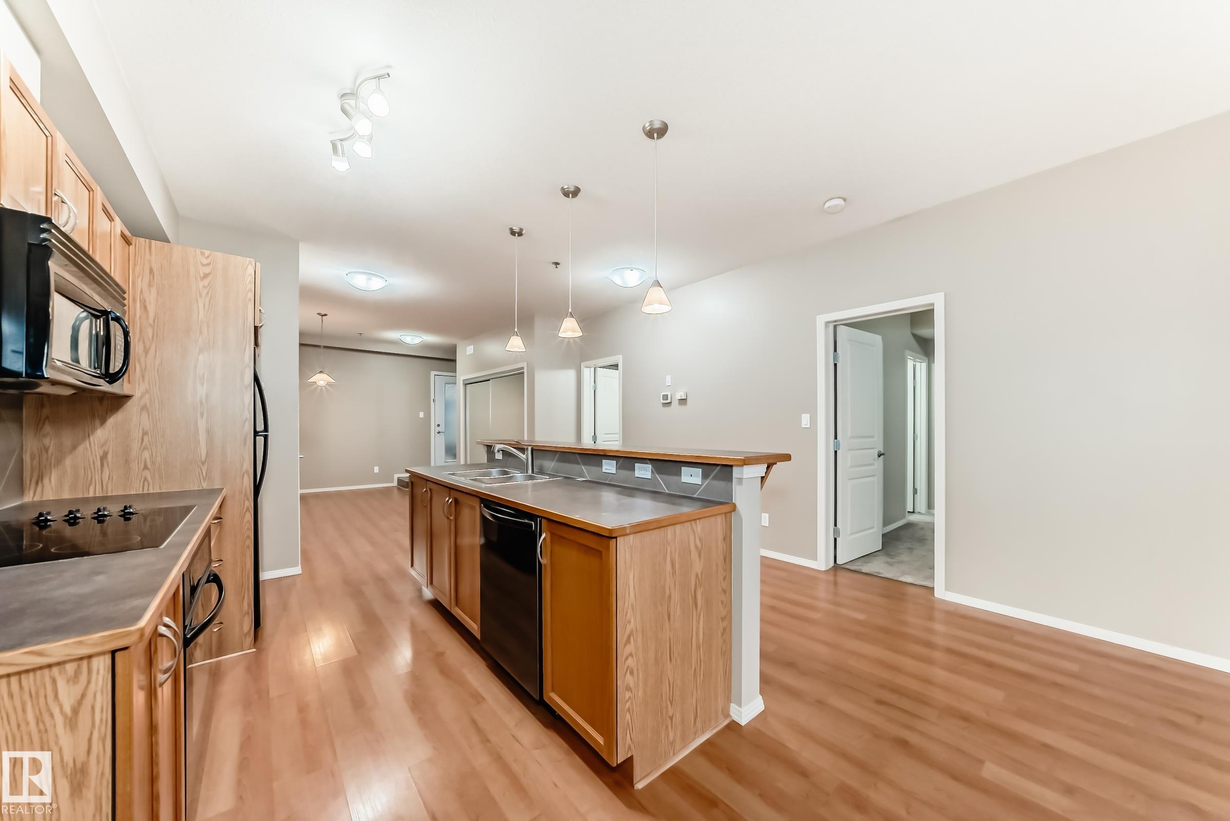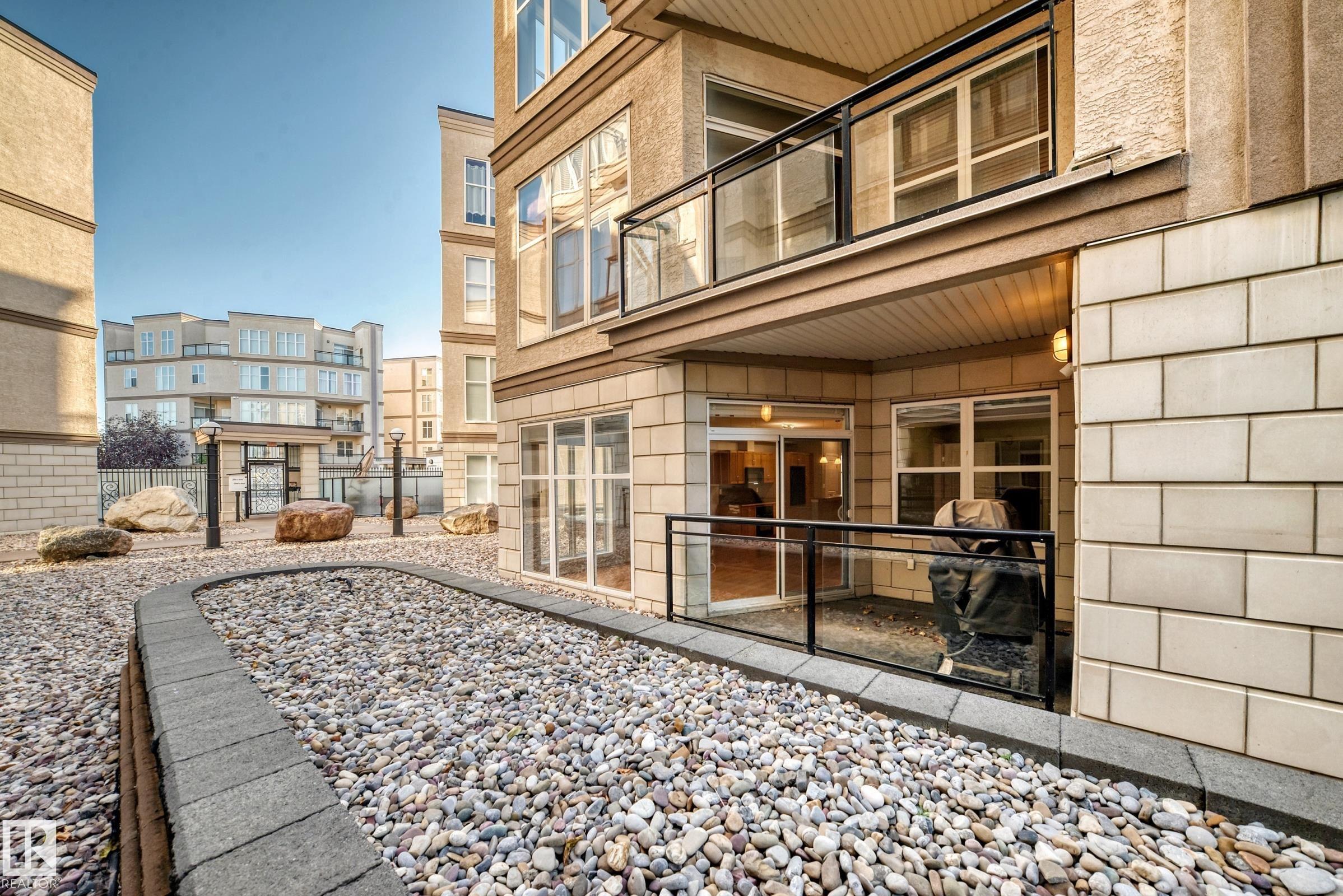 BEST LIFESTLYE !! SUPER LOCATION ! Bright, High Ceilings, Perfect Main Floor End Corner Unit, Heated Titled Underground Parking w storage locker. Must View, Amazing Design, Very Spacious Open Concept, abundance of natural light, very large windows corner unit features 2 full washrooms, large primary bedroom w super ensuite, separate den, flex, or 2nd bdrm opt. Nook & formal eating areas flow seemlessly from a Fabulous Kitchen w work eating island. High celings, upgraded appliances, newer stove top, dishwasher, garburator, window coverings, new carpets 2025, updated painting, very clean, quick possession is moving exciting. The Perfect Covered Patio from the great room area has concrete floor, glass railings, timeless Stucco, Tile Stone ext and is truly best with built in gas line for bar be que heaven year round. The Covered Patio is surrounded by landscape block flower bed gardens providing character, ambience. Walk to all amenties, services, Italian Store. Ideal South Location, QUALITY LIVING HERE !!!