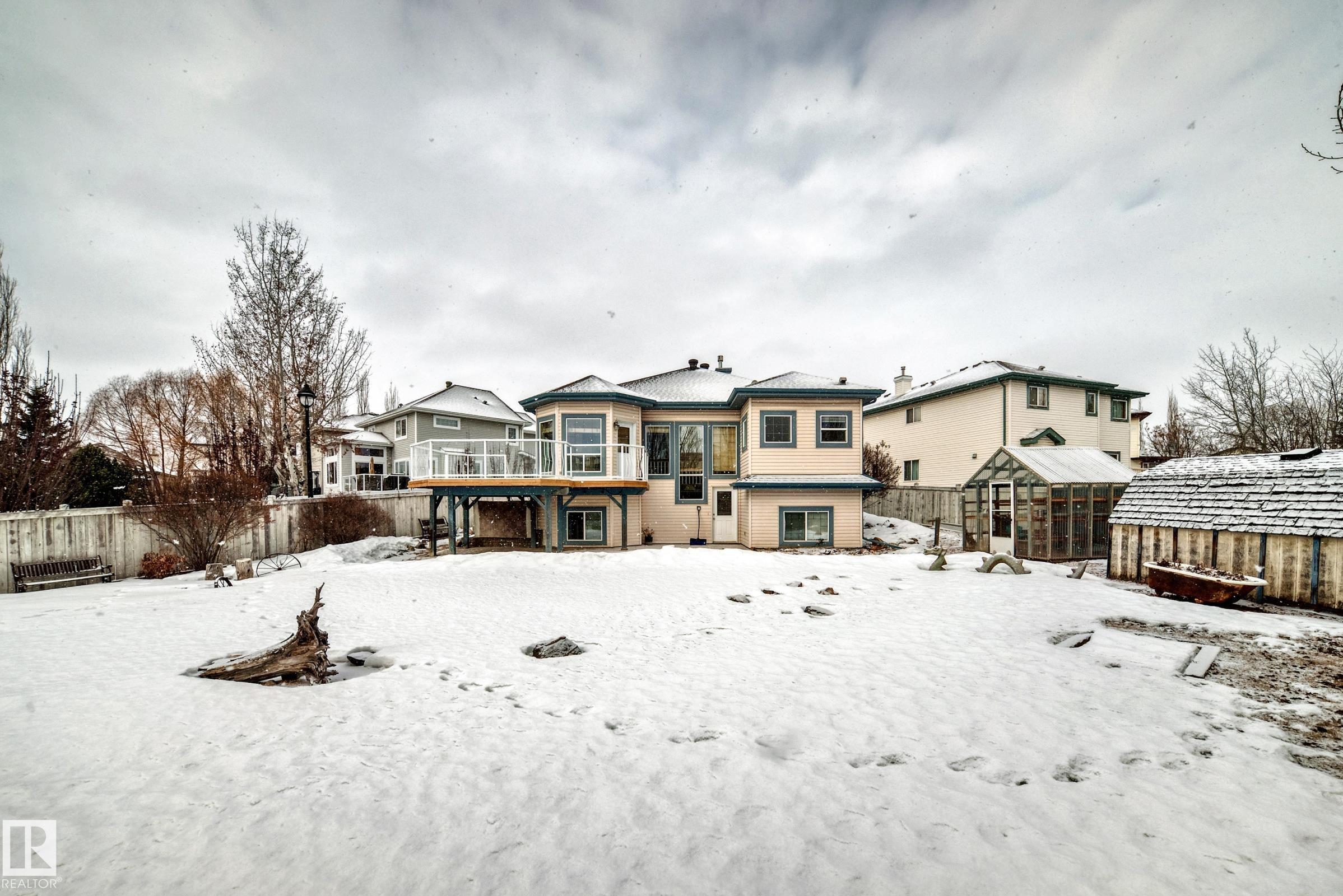 WALKOUT BUNGALOW !!! One of The Largest Fenced Lots over 10, 700 sq ft. Gorgeous Landscape, Fully Fin Walkout Bsmt offers best living in desired Glastonbury. Located next to lake w walking trails at hand. Total of 5 spacious bedrooms, 3 full 4 piece washrooms, this home provides exceptional flexibility for growing families or multi-generational living. The main floor showcases an open-concept layout with abundant of natural light, a well-appointed kitchen featuring stainless appliances has seamless flow into the dining & living areas. A cozy gas fireplace anchors the living room, creating the perfect atmosphere for relaxing evenings. Main floor den flex area & Laundry are super. The fully dev walkout level expands your living options w 3 bedrooms, a generous recreation area, etc. Direct access to the backyard features a covered deck area to enjoy all types of weather--ideal for entertaining, enjoying Edmonton's beautiful seasons. Cul de sac front w rec parking, Double Att truck size Garage, Must View !!