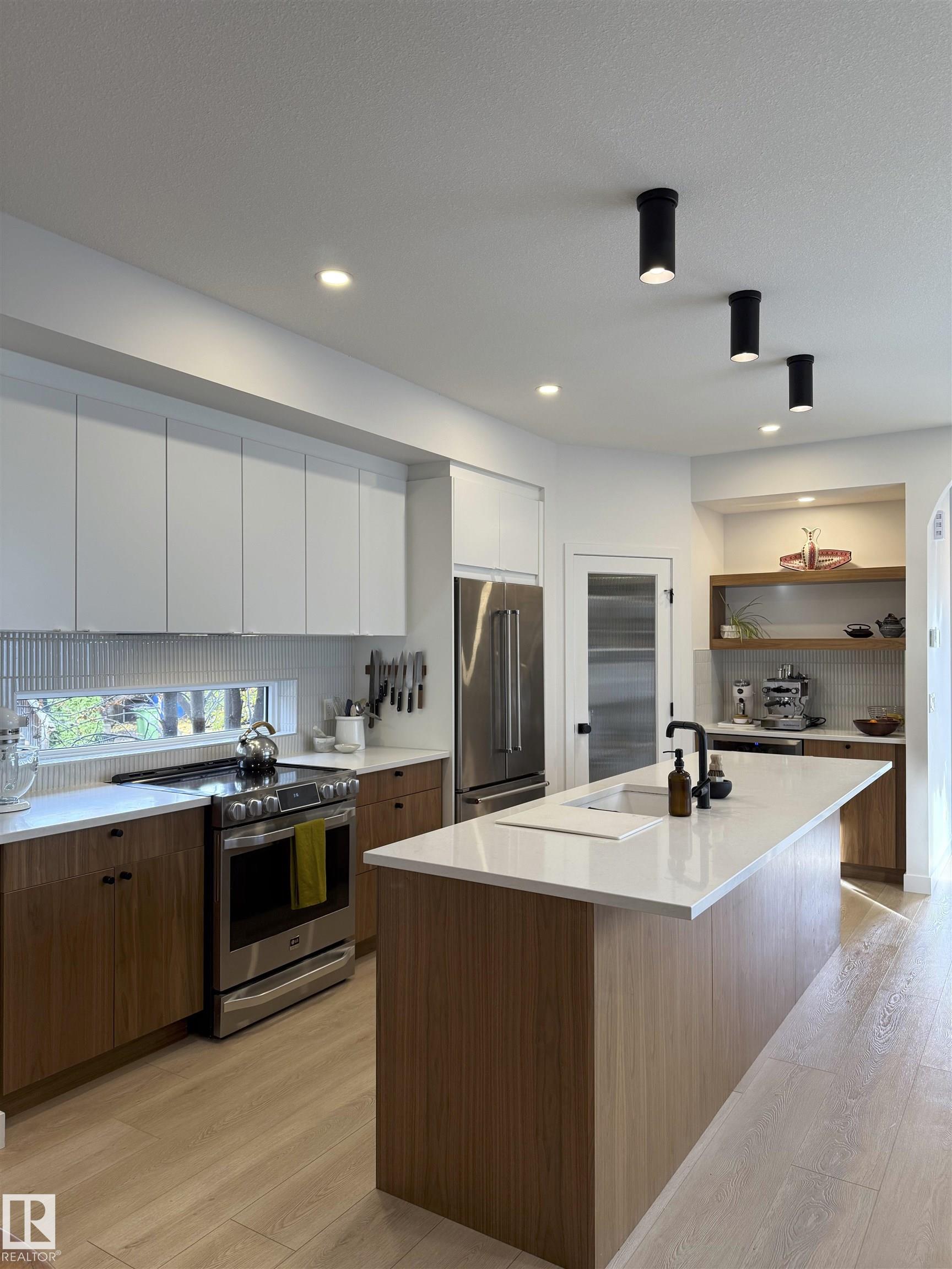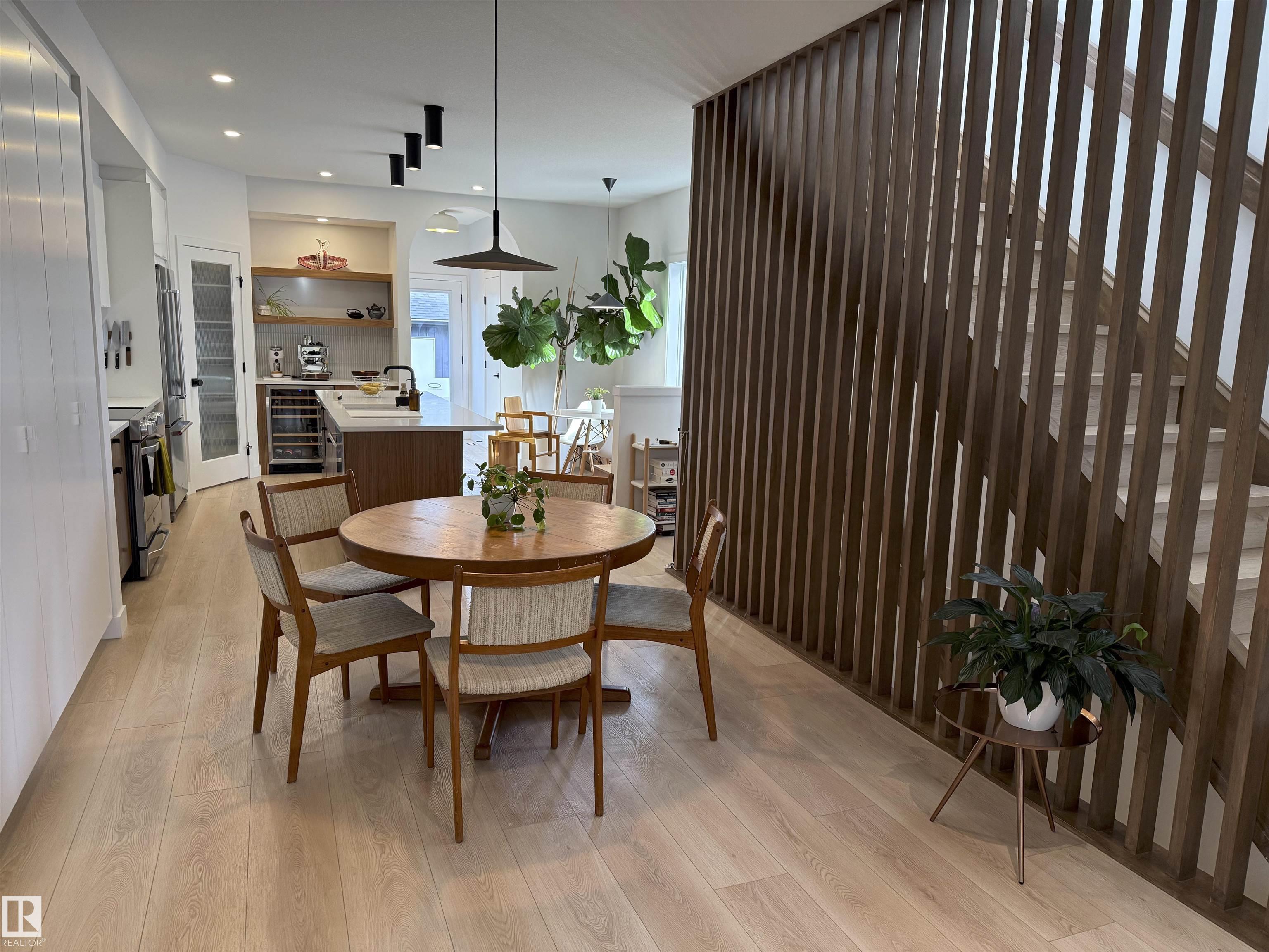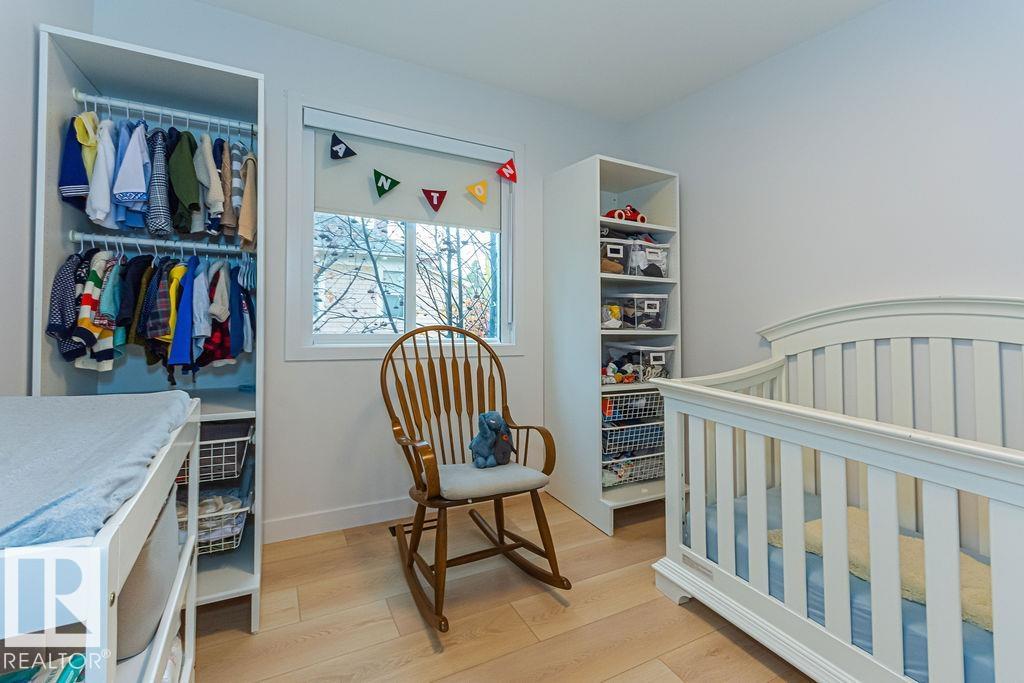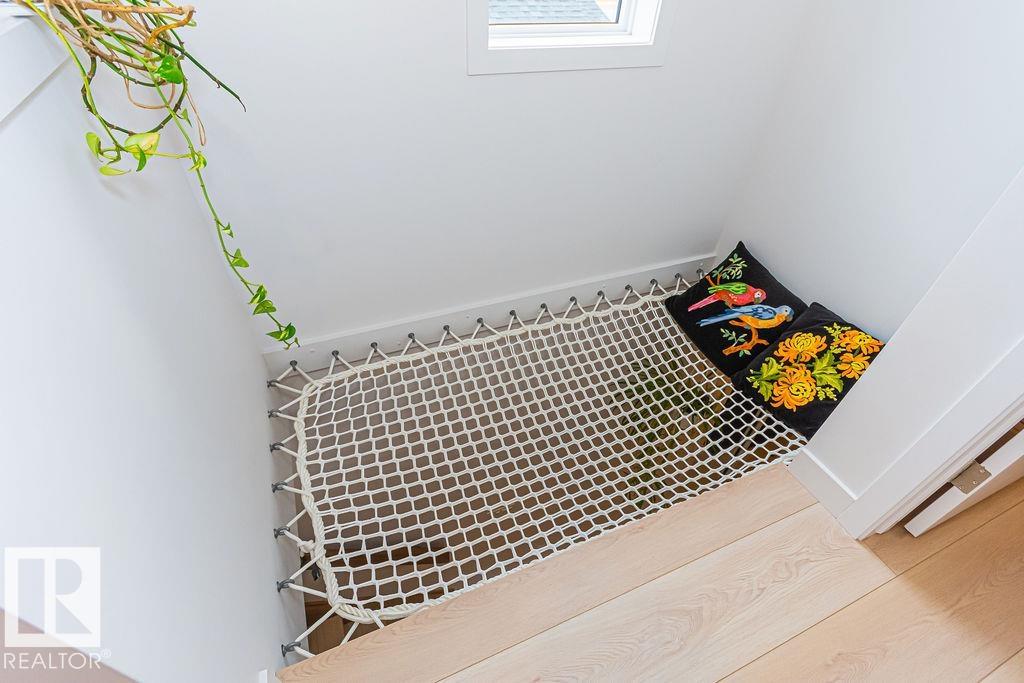 MODERN SCANDINAVIAN SANCTUARY steps from Ada Blvd in Highlands, Edmonton's most coveted riverside community! This custom-built Vida Nova Homes MASTERPIECE offers 4 bedrooms, 3.5 bathrooms & 1800+ sq ft of light-filled luxury. Walk to river valley trails, Highlands Golf Course, caf‚s, schools, and only 9 minutes downtown! Stunning open-concept design features white oak LPV flooring, floor-to-ceiling ladder bookcase, designer wood divider & extended walk-through pantry. Chef's kitchen has premium S/S appliances, wine fridge, QUARTZ countertops & seamless storage. Upstairs, there are 3 bedrooms including spa-like primary with a MASSIVE WIC & 5pc ensuite, PLAYFUL LOFT NET, UPSTAIRS LAUNDRY & 4pc bath. Basement: high-end epoxy flooring, 4th bed/office & abundant storage. Double detached garage with INNER BAY DOOR. Move-in ready with premium finishes, natural light & timeless Scandi elegance. Investment-grade infill in Edmonton's fastest-growing luxury market! TOO MANY UPGRADES TO LIST! COME SEE FOR YOURSELF!