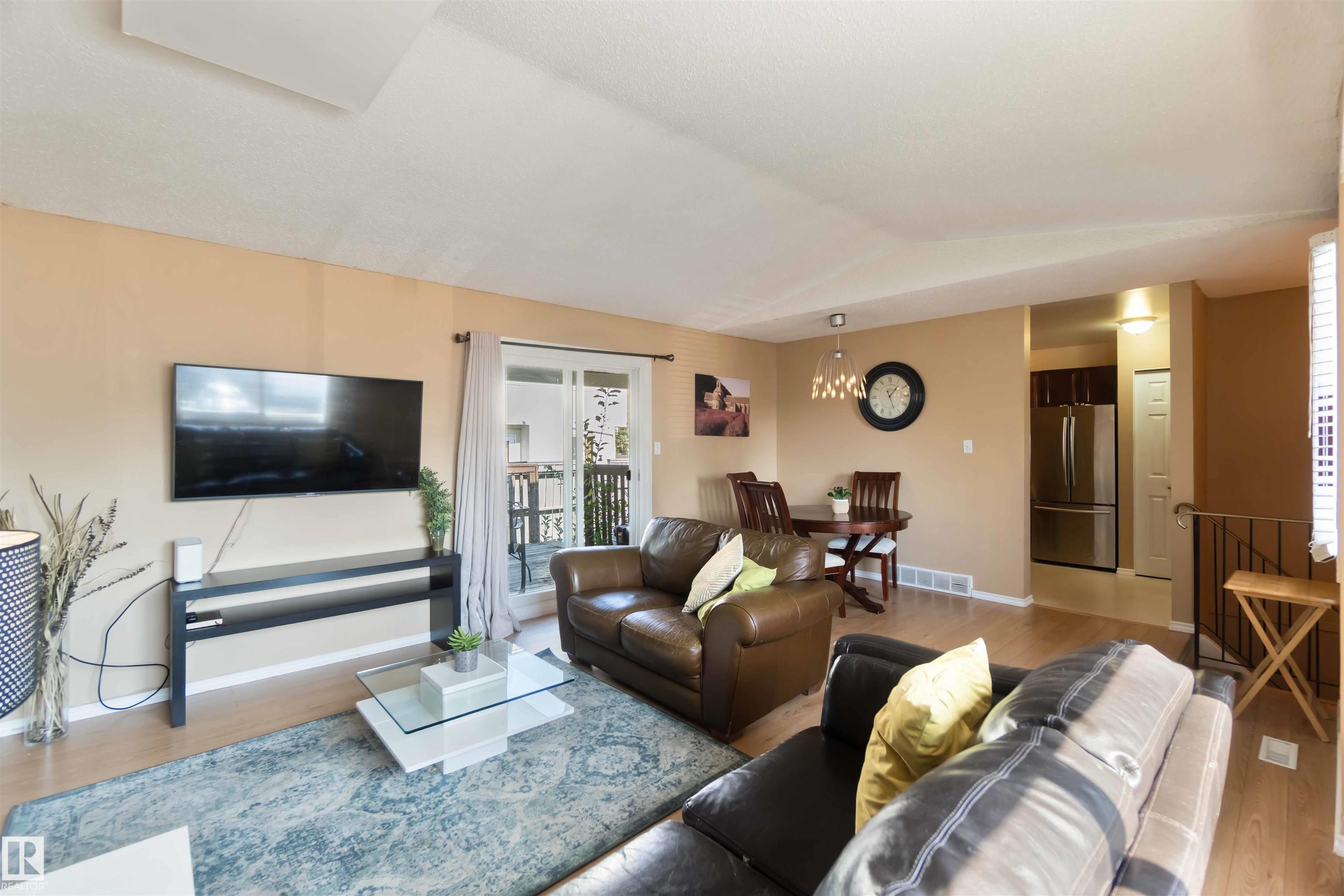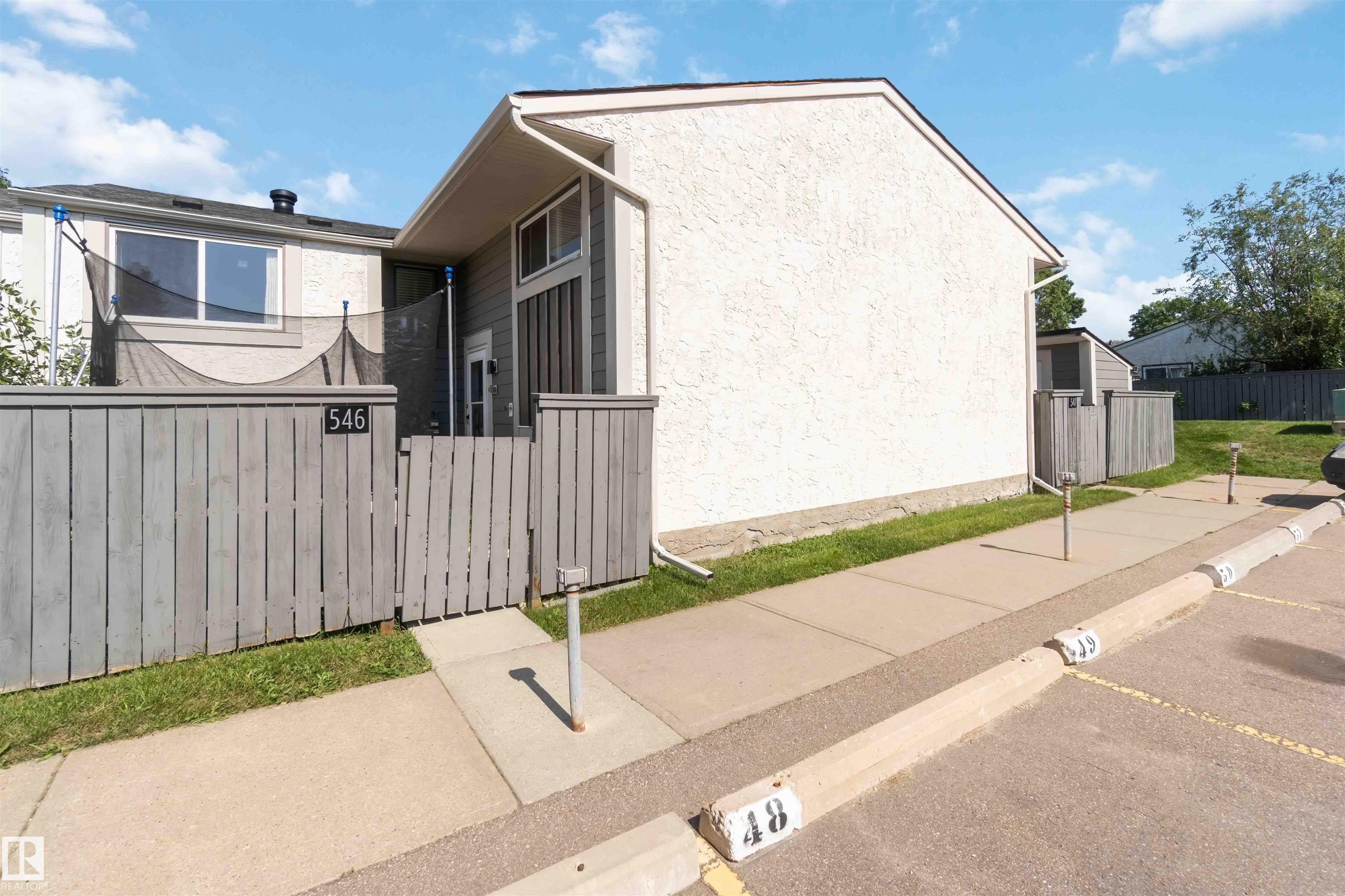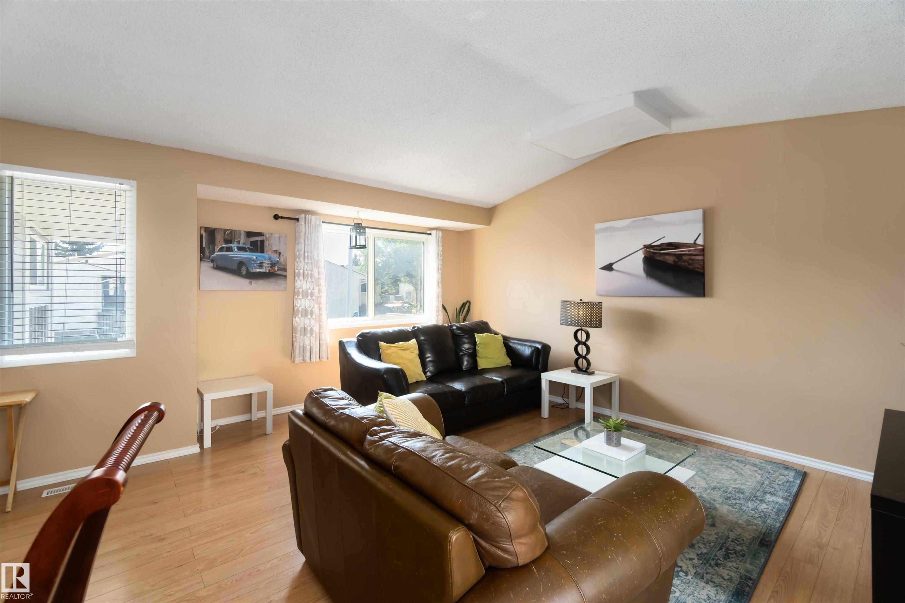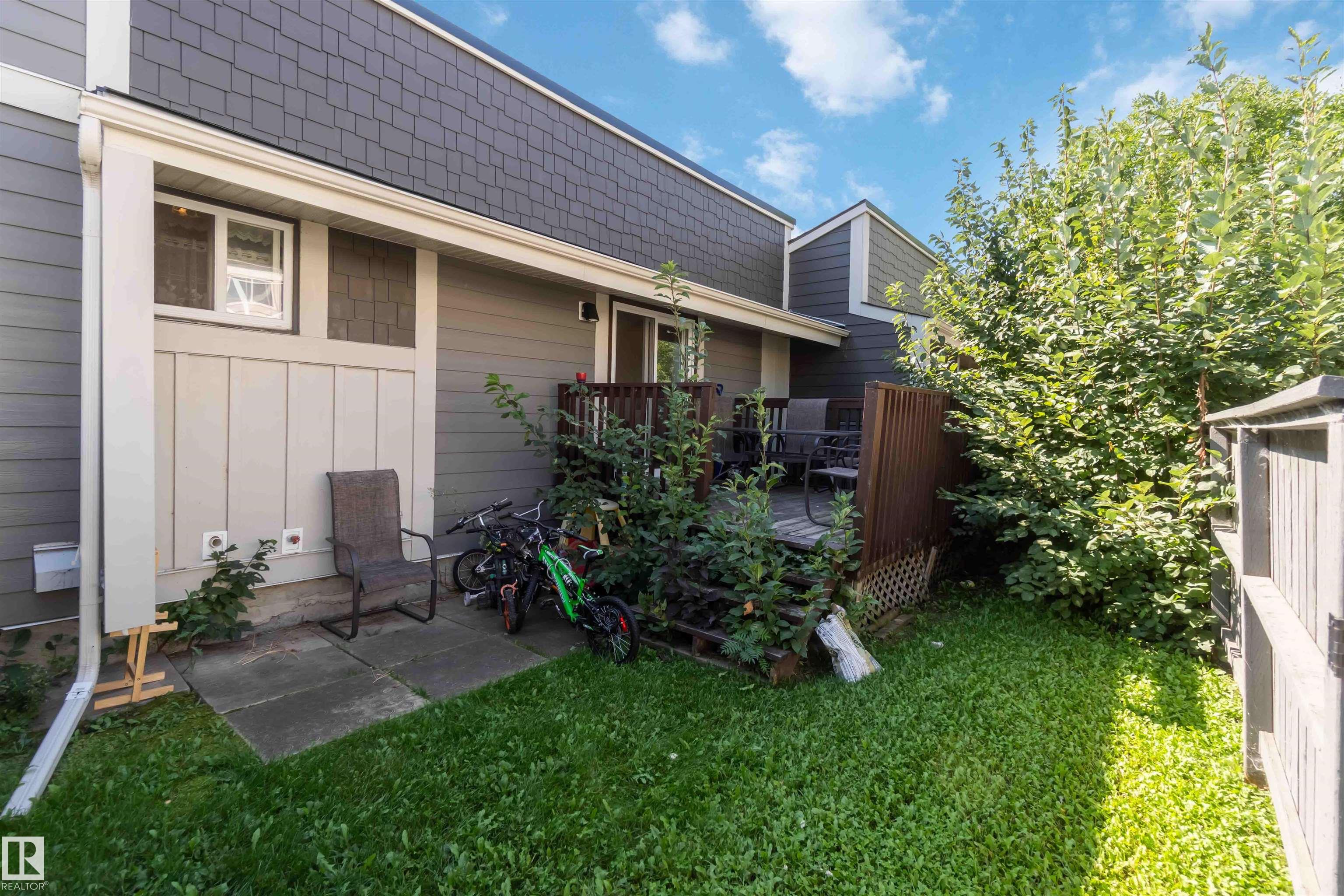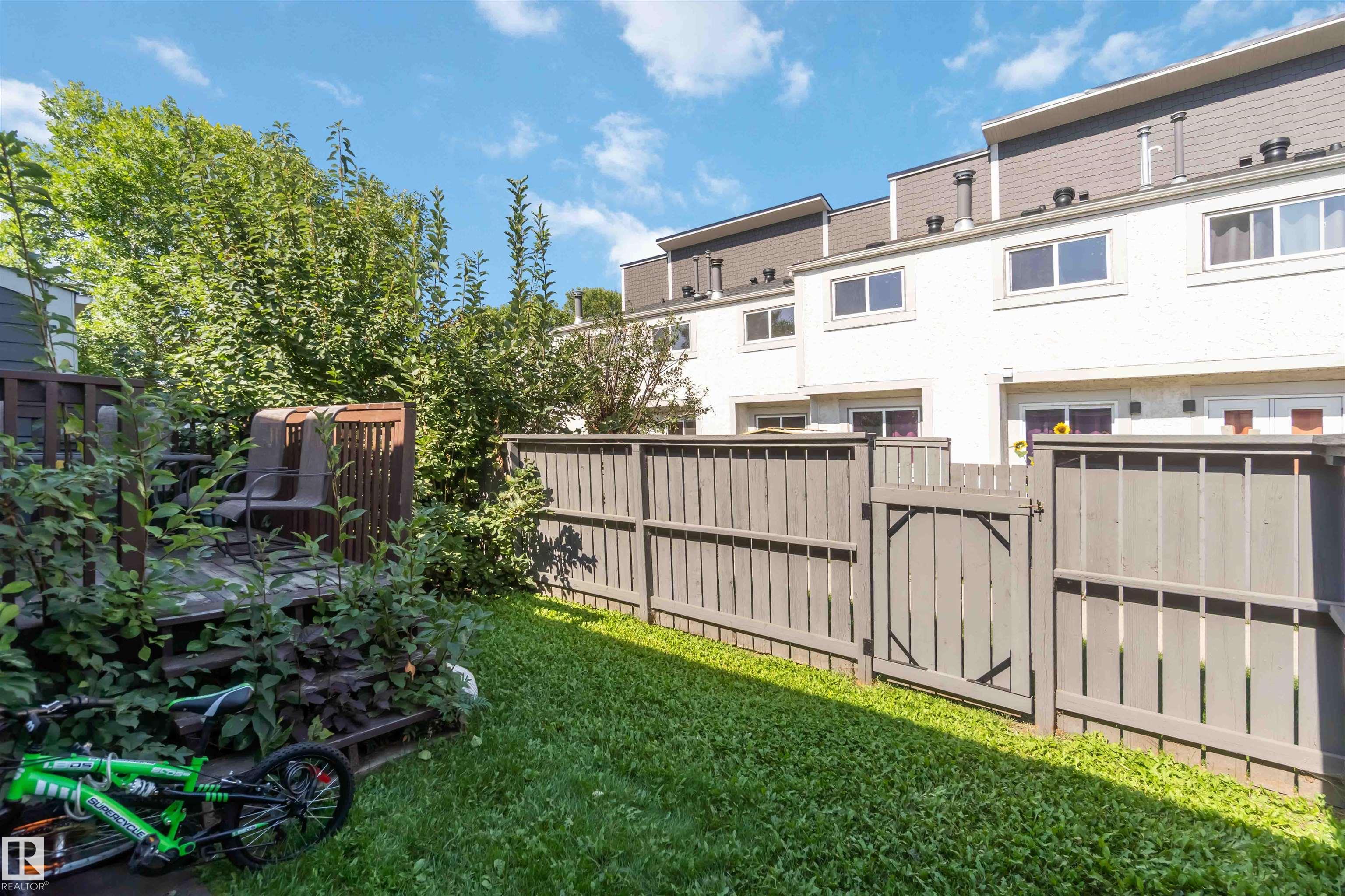 Rare find in Lymburn! This 3-bedroom, 1.5-bath bi-level townhouse offers 1,168 sq. ft. of bright living space and plenty of potential to make it your own. A vaulted living room with large windows fills the main floor with natural light, and patio doors open to one of two private yards -- a rare feature in this well-maintained complex. With some cosmetic updates, the sunny kitchen and spacious layout could truly shine. The home has a newer furnace (2017), plus newer windows and shingles, giving you a solid starting point for future improvements. Low condo fees of just $367/month make this an affordable choice for first-time buyers or investors. The seller is even open to staying on as a tenant, offering an instant income opportunity. Willow Court at 180 St. and 69 Ave. is a quiet, family-friendly community close to schools, shopping, transit, the Callingwood Farmer's Market, Jamie Platz YMCA, Lois Hole Library, and the off-leash park. Full of potential and in a fantastic location -- don't miss it!