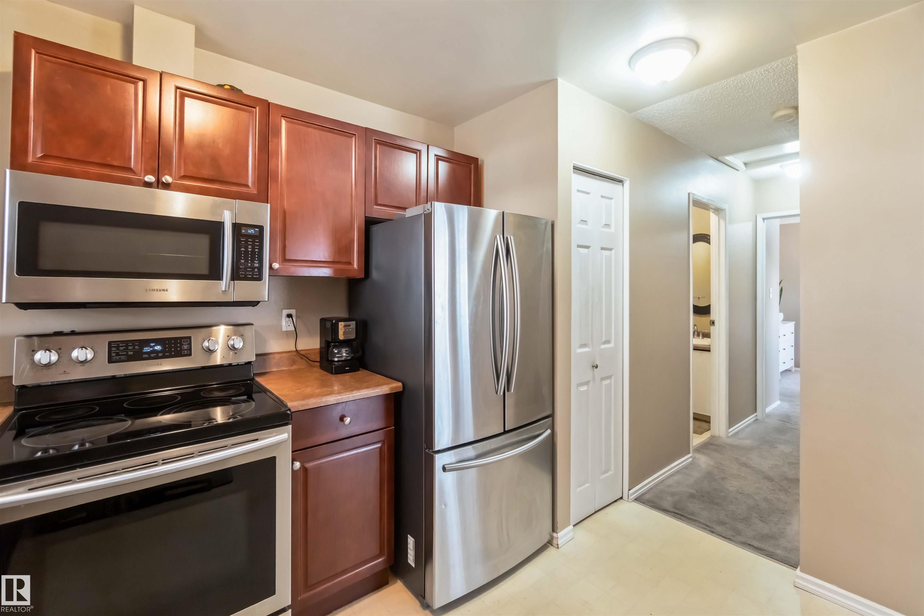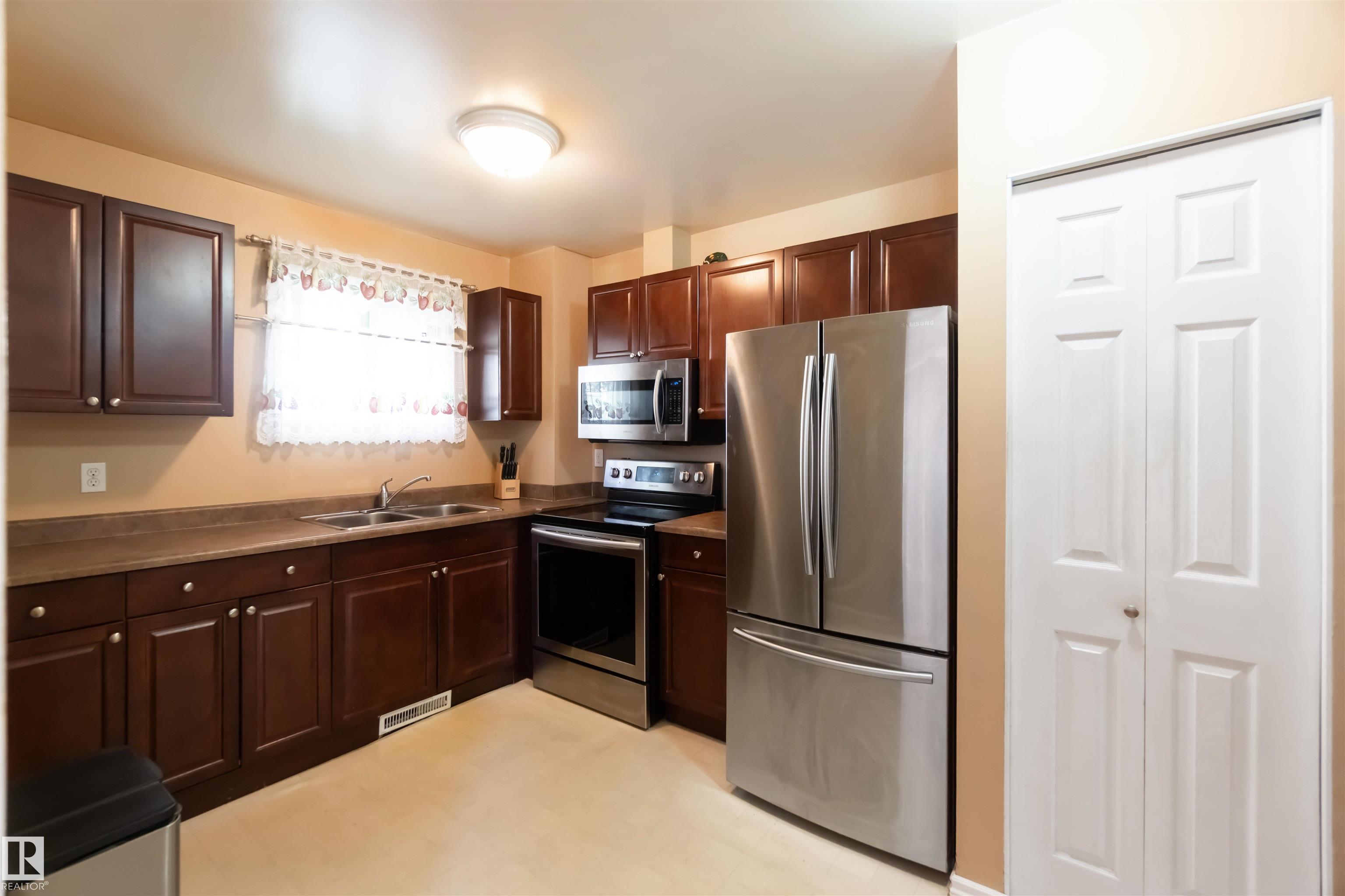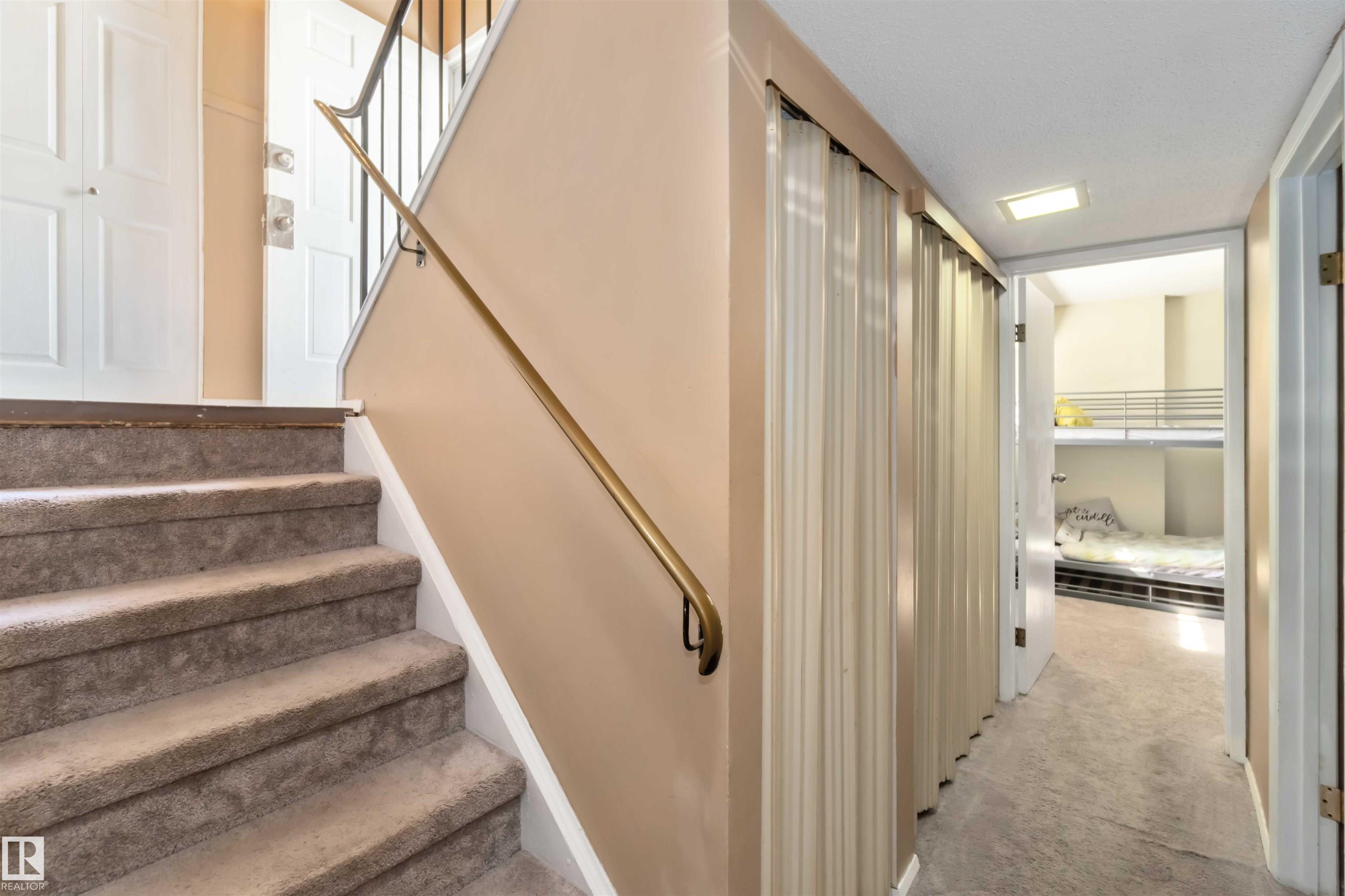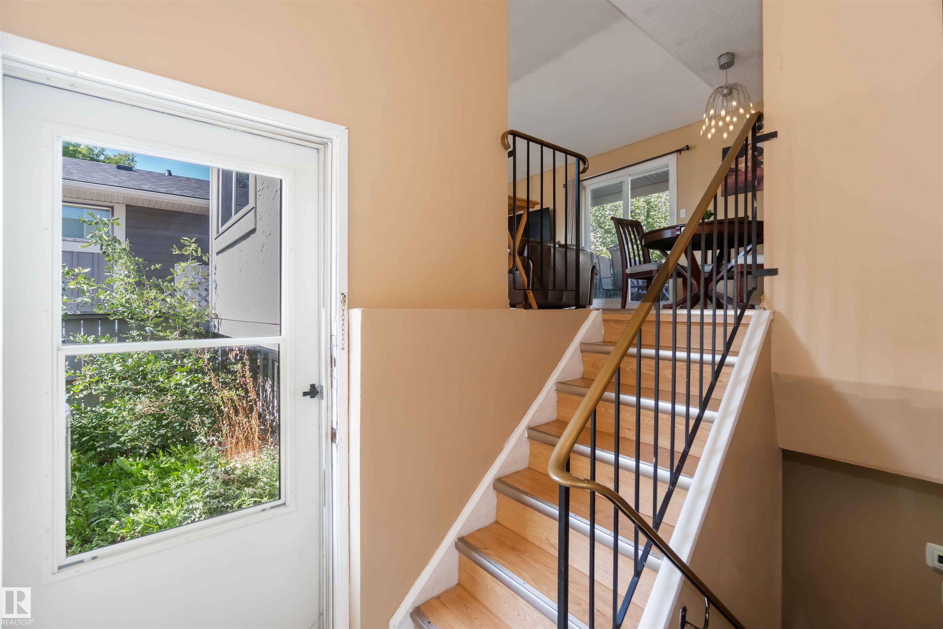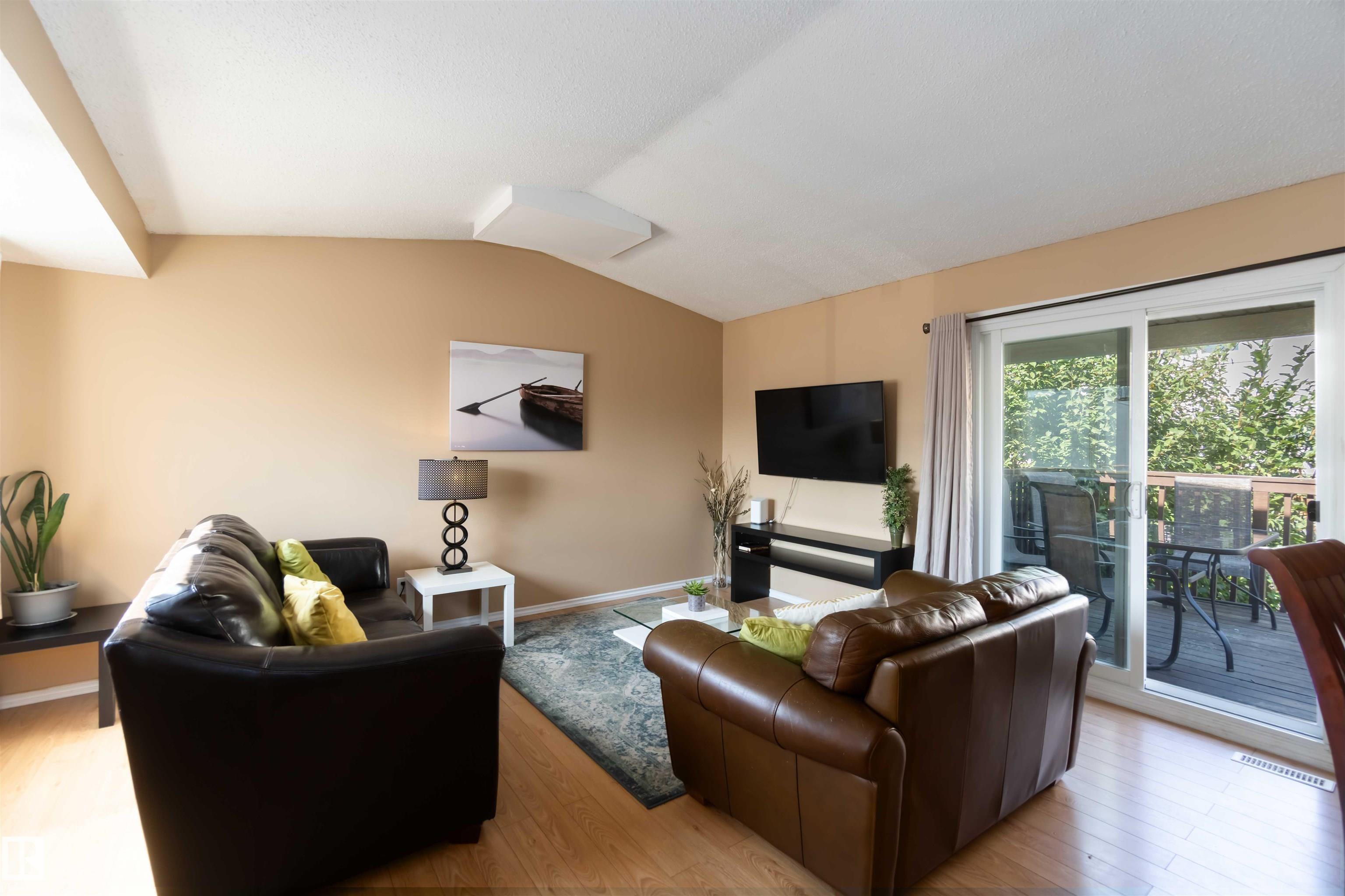 Rare find in Lymburn! This 3-bedroom, 1.5-bath bi-level townhouse offers 1,168 sq. ft. of bright living space and plenty of potential to make it your own. A vaulted living room with large windows fills the main floor with natural light, and patio doors open to one of two private yards -- a rare feature in this well-maintained complex. With some cosmetic updates, the sunny kitchen and spacious layout could truly shine. The home has a newer furnace (2017), plus newer windows and shingles, giving you a solid starting point for future improvements. Low condo fees of just $367/month make this an affordable choice for first-time buyers or investors. The seller is even open to staying on as a tenant, offering an instant income opportunity. Willow Court at 180 St. and 69 Ave. is a quiet, family-friendly community close to schools, shopping, transit, the Callingwood Farmer's Market, Jamie Platz YMCA, Lois Hole Library, and the off-leash park. Full of potential and in a fantastic location -- don't miss it!