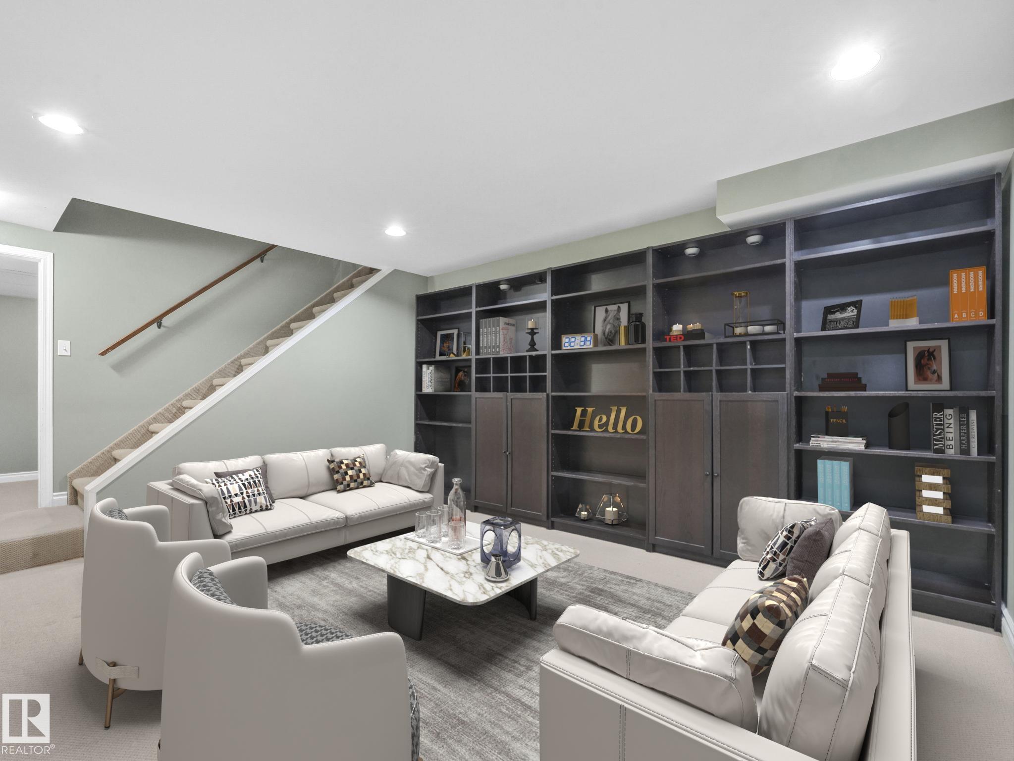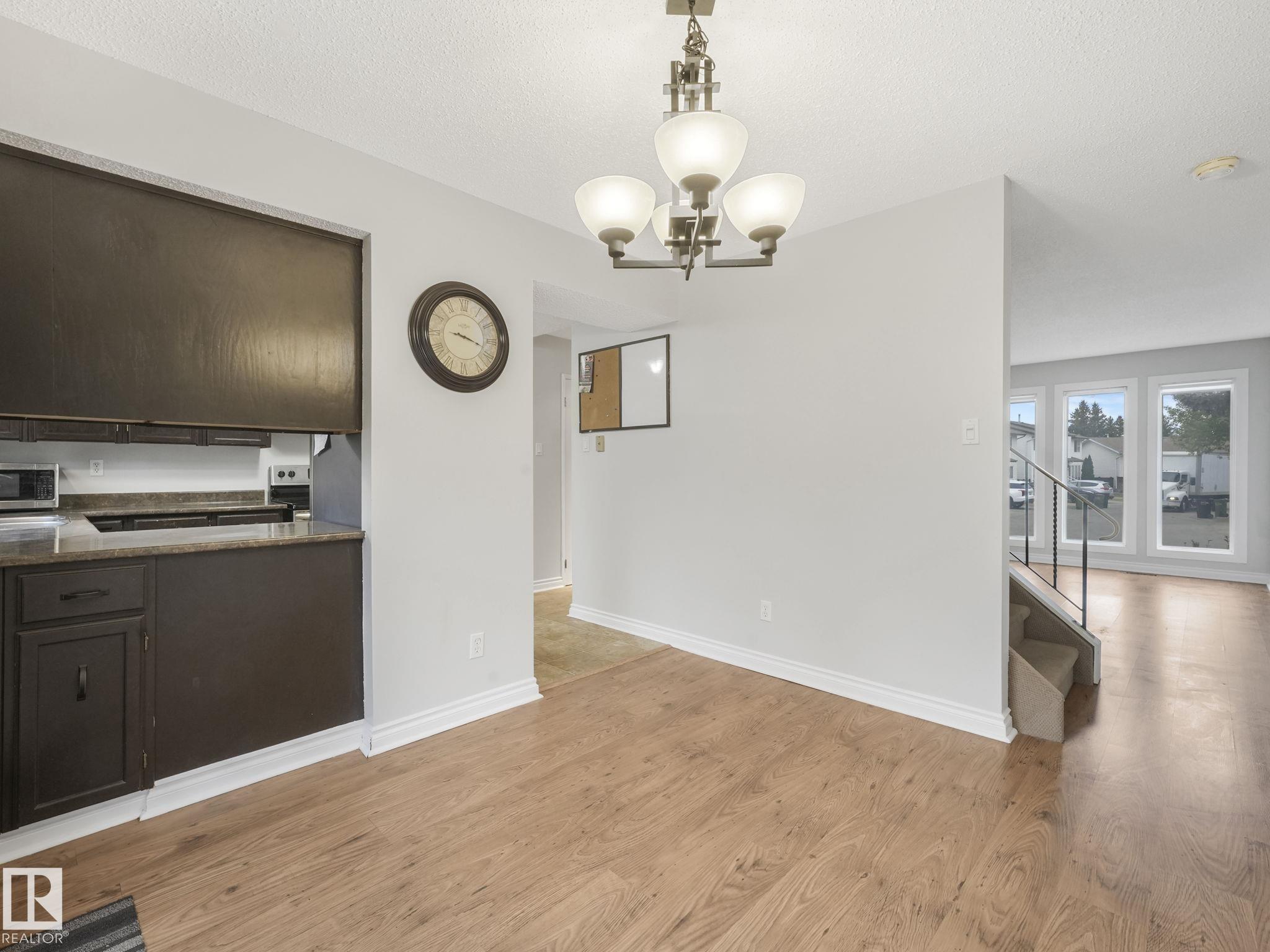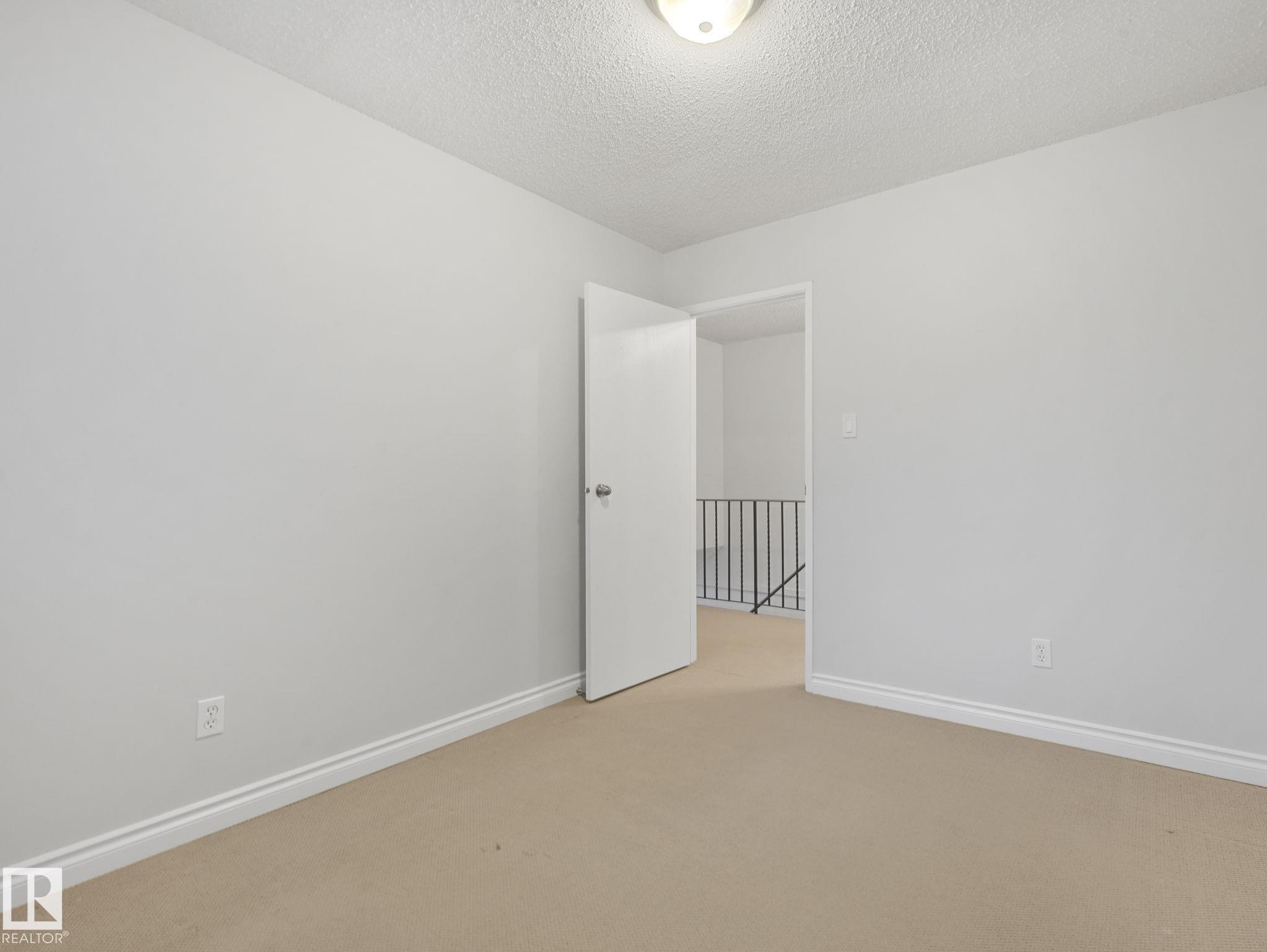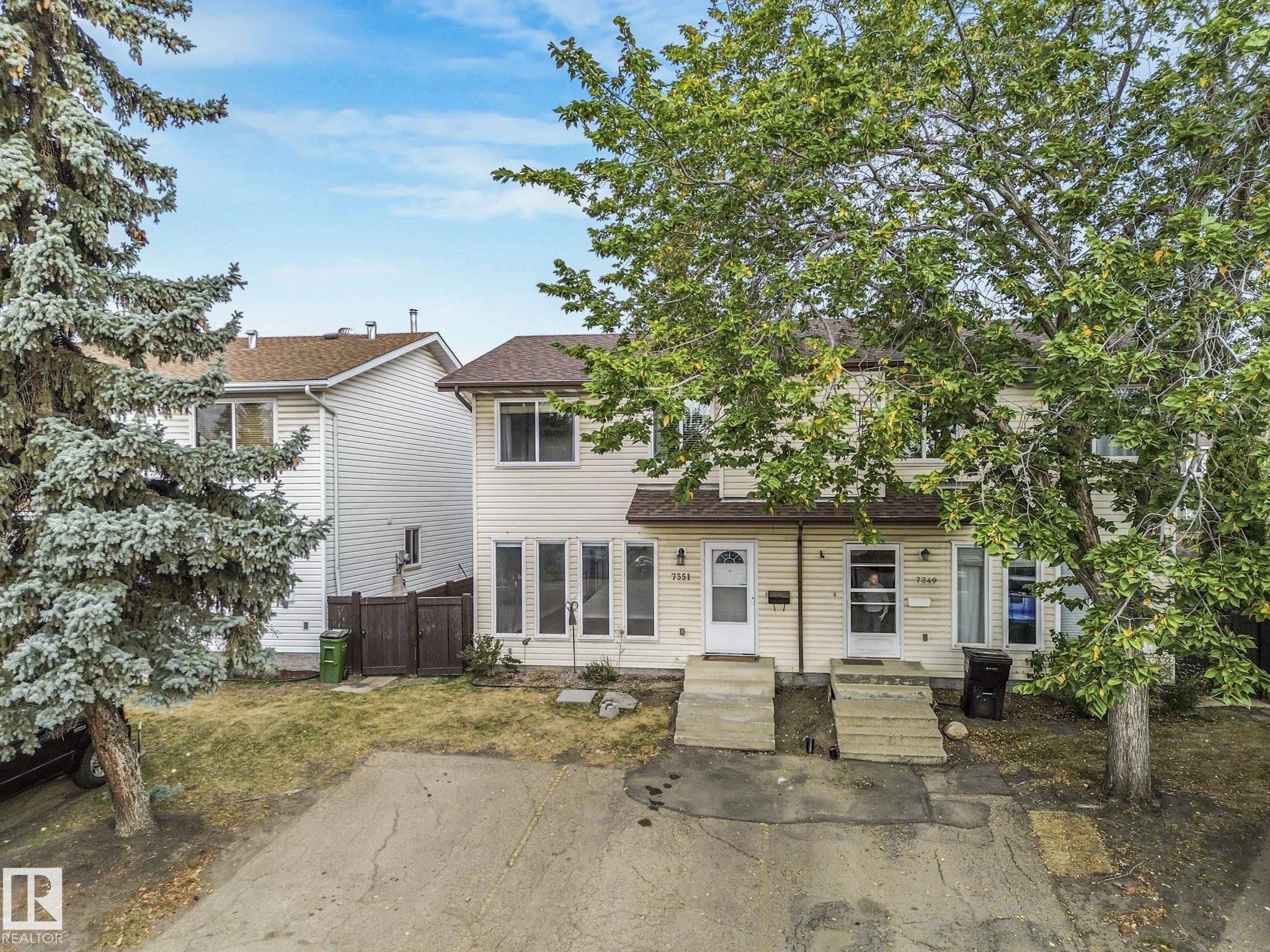 Pride of ownership shines in this well kept half-duplex, ideally located near schools, parks, shopping, transit, and the YMCA. The bright main floor features large windows, a spacious living area, and an functional kitchen with newer dishwasher, fridge and pantry. The dining area opens to a large deck in your private backyard, perfect for summer BBQs. Upstairs offers a generous primary bedroom with walk-in closet, two additional bedrooms, upper-level laundry, and fully renovated 4-piece bath. The finished basement adds a family room with built-in bookcases, a fourth flex room, and smart storage. Recent updates include HE furnace (2012), deck and shed (2013). With two parking stalls at the front door and visitor parking nearby, this home blends comfort, convenience, and value.