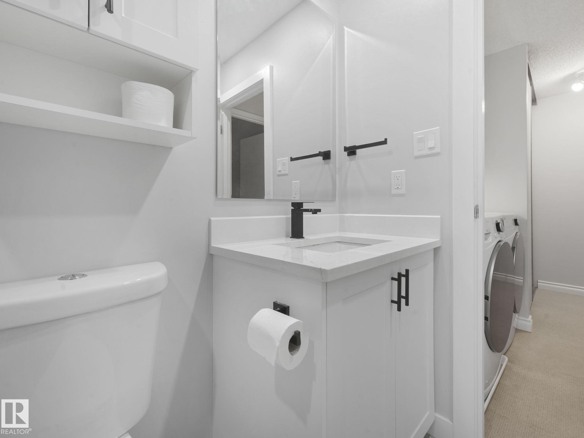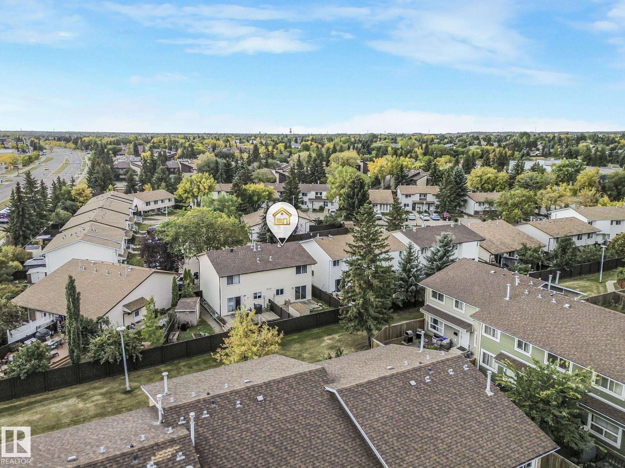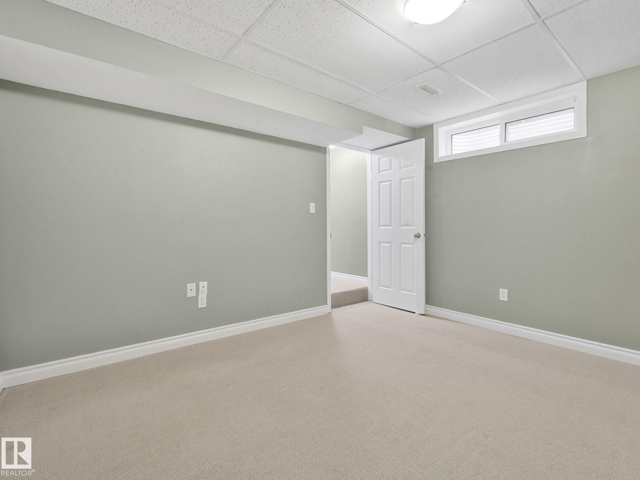 Pride of ownership shines in this well kept half-duplex, ideally located near schools, parks, shopping, transit, and the YMCA. The bright main floor features large windows, a spacious living area, and an functional kitchen with newer dishwasher, fridge and pantry. The dining area opens to a large deck in your private backyard, perfect for summer BBQs. Upstairs offers a generous primary bedroom with walk-in closet, two additional bedrooms, upper-level laundry, and fully renovated 4-piece bath. The finished basement adds a family room with built-in bookcases, a fourth flex room, and smart storage. Recent updates include HE furnace (2012), deck and shed (2013). With two parking stalls at the front door and visitor parking nearby, this home blends comfort, convenience, and value.