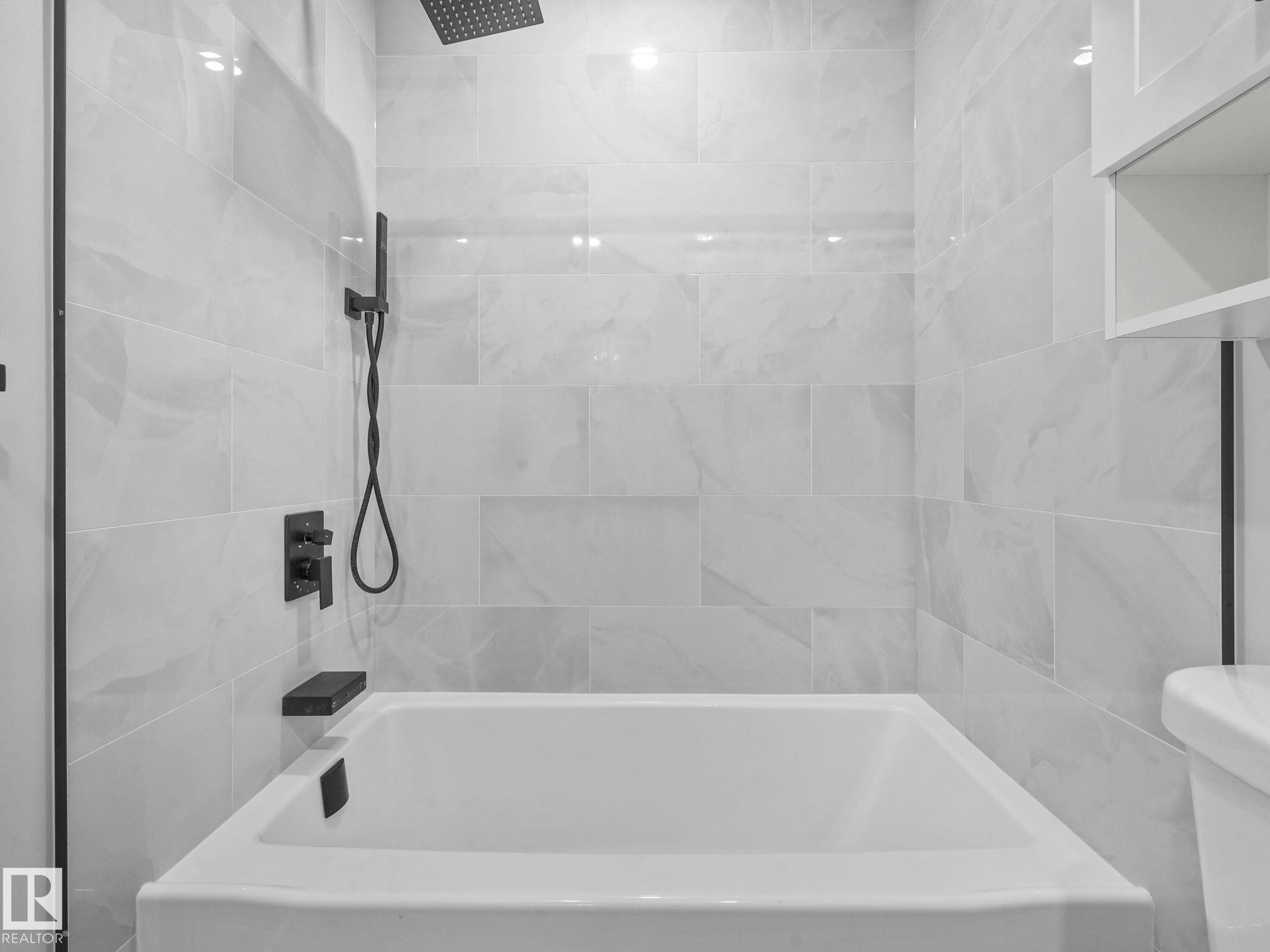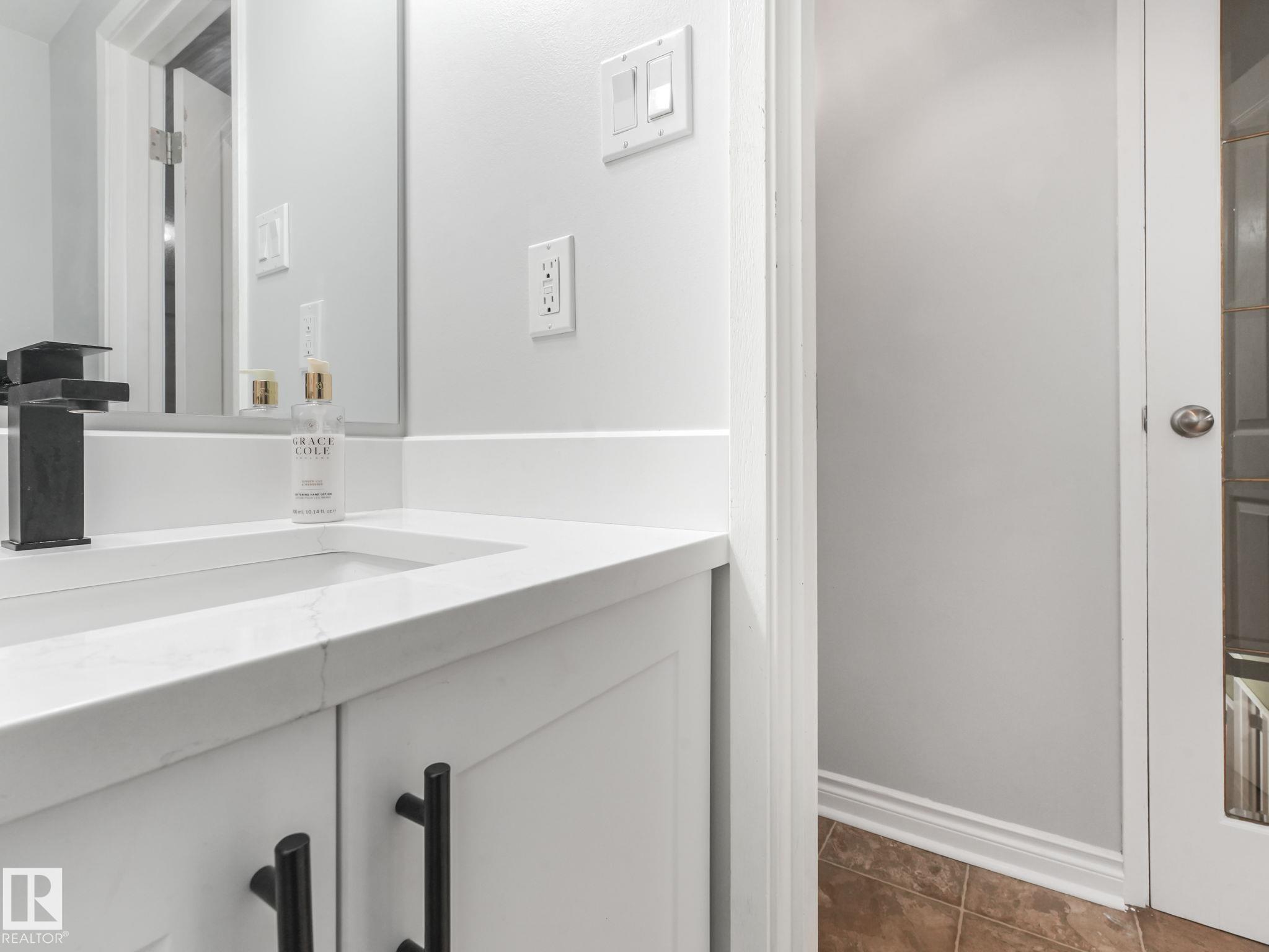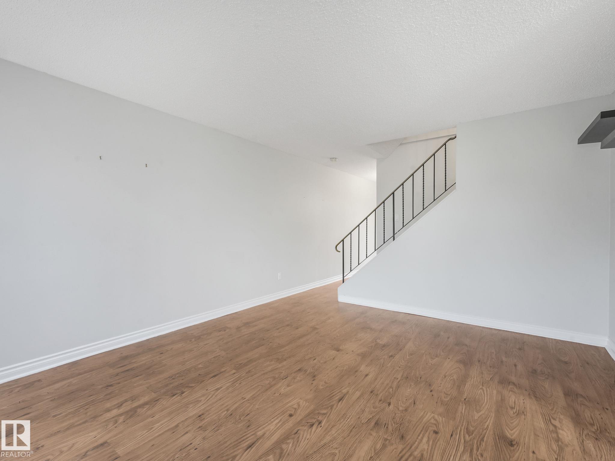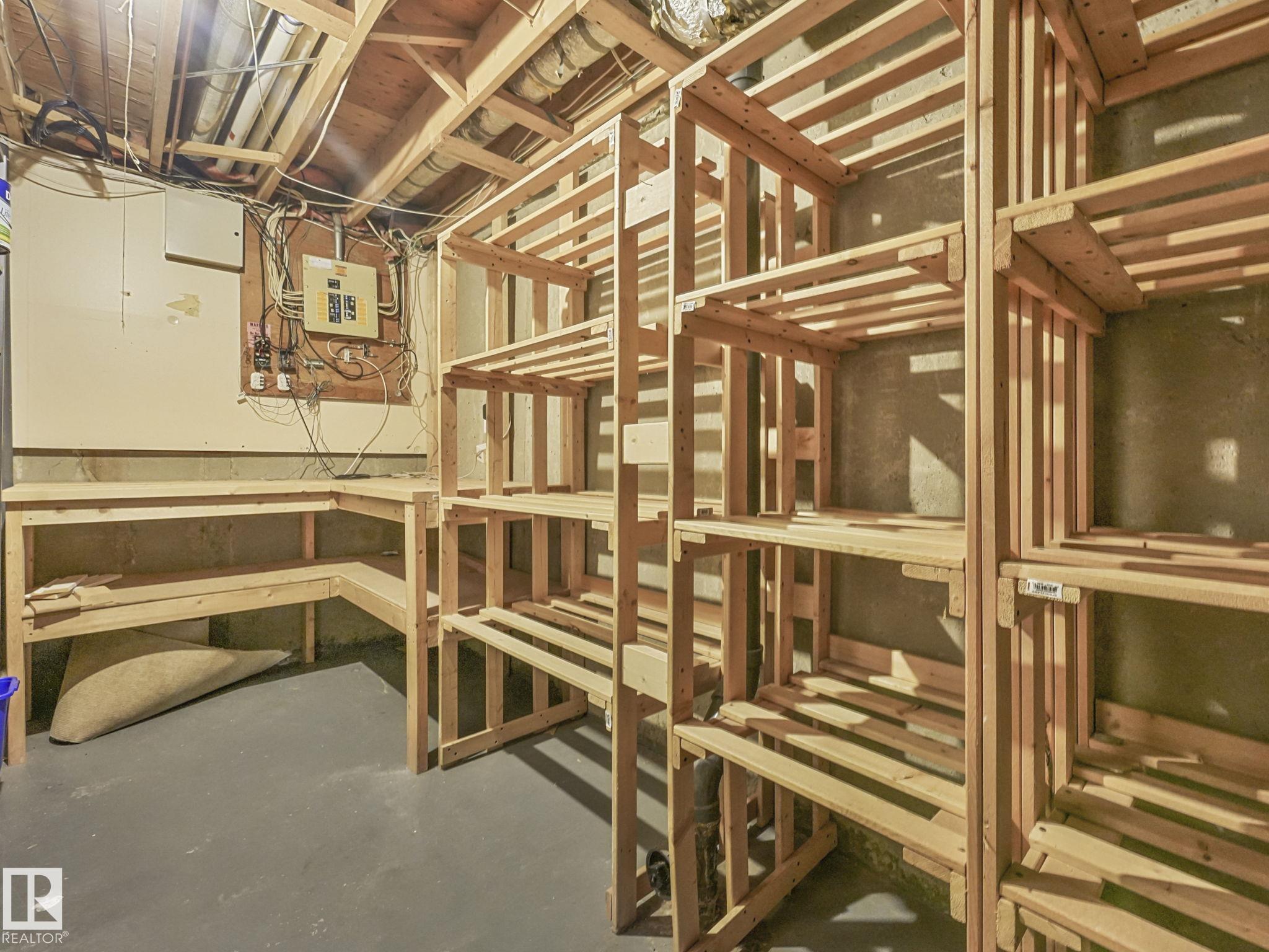 Pride of ownership shines in this well kept half-duplex, ideally located near schools, parks, shopping, transit, and the YMCA. The bright main floor features large windows, a spacious living area, and an functional kitchen with newer dishwasher, fridge and pantry. The dining area opens to a large deck in your private backyard, perfect for summer BBQs. Upstairs offers a generous primary bedroom with walk-in closet, two additional bedrooms, upper-level laundry, and fully renovated 4-piece bath. The finished basement adds a family room with built-in bookcases, a fourth flex room, and smart storage. Recent updates include HE furnace (2012), deck and shed (2013). With two parking stalls at the front door and visitor parking nearby, this home blends comfort, convenience, and value.