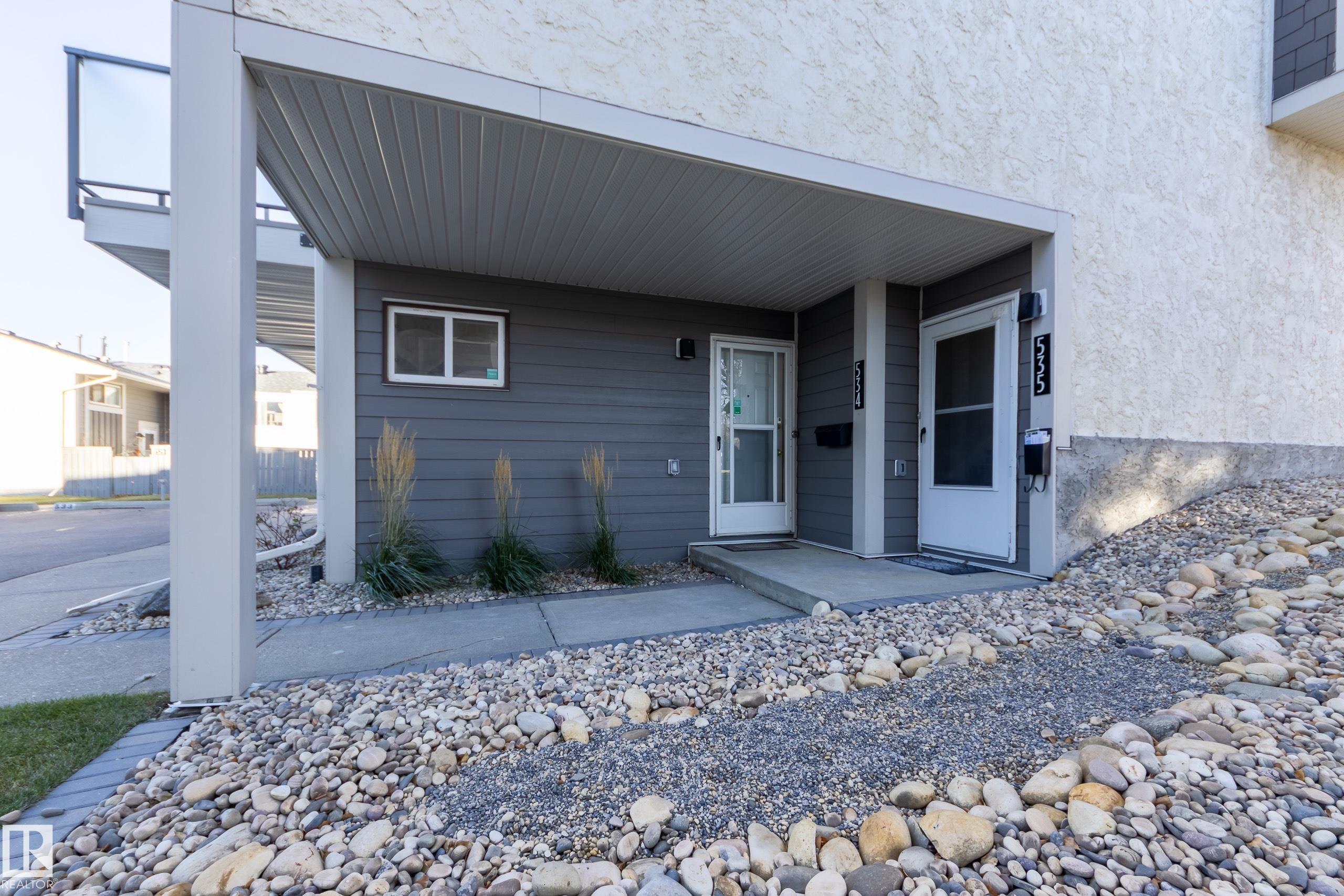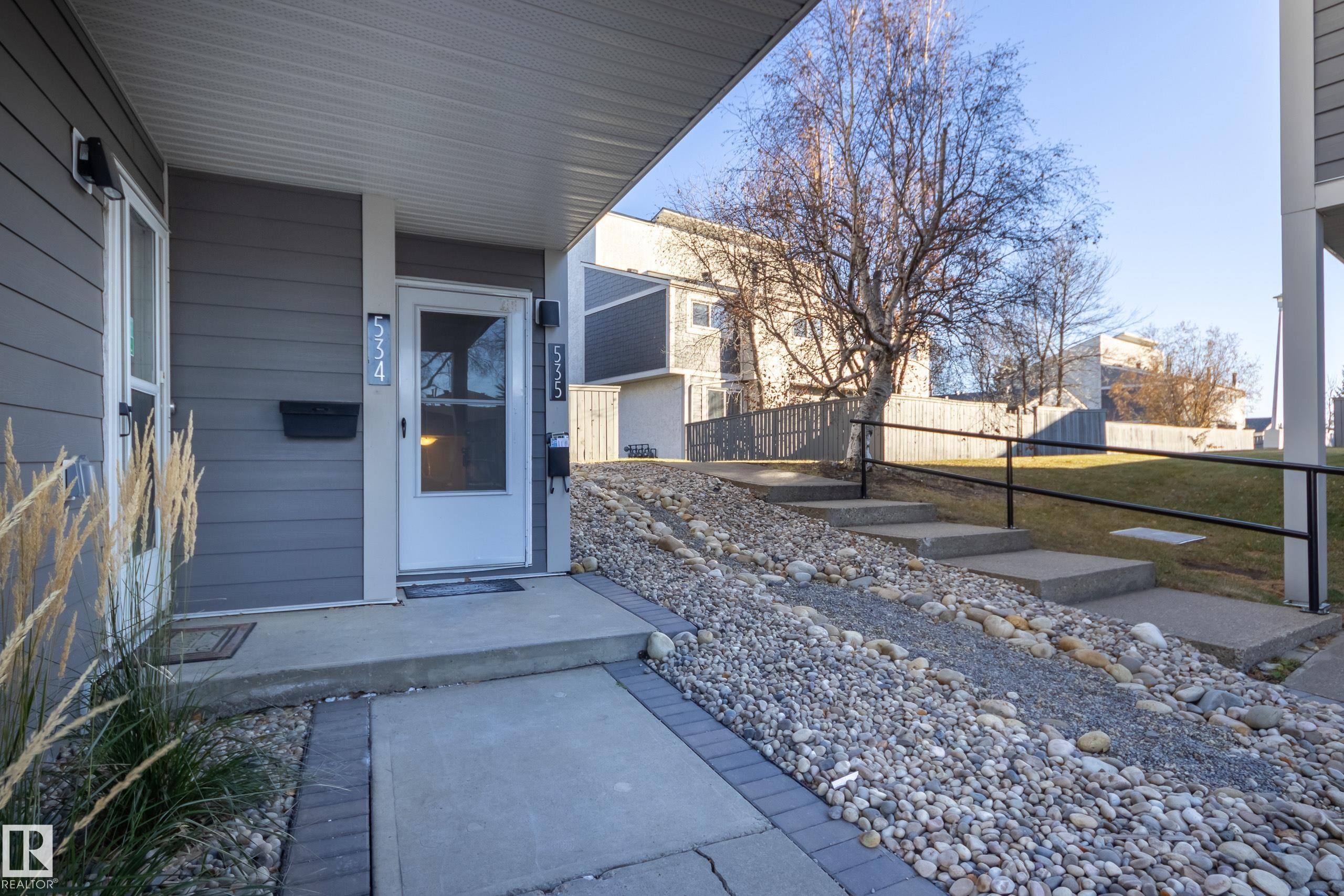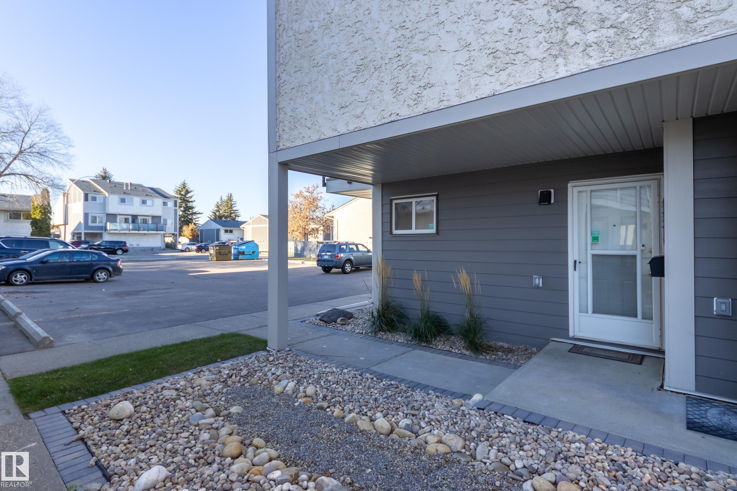 Affordable convenience in desirable Lymburn! This unique 1,257 sq ft townhouse requires NO exterior maintenance in a pet-friendly & well-managed complex just a stone's throw to the river valley, Callingwood Farmer's Market, off-leash dog park, YMCA, Lois Hole Library & schools. Steps from the community garden, the front door welcomes you to an above-grade lower level with laundry, storage & a den for an ideal home office or guest space with its own 2pc bath (a rare feature not typical in these units). Moving upwards, the main offers a bright, cozy living/dining & kitchen space featuring new appliances & spectacular sunsets on the West facing balcony. The 3rd level keeps your private space separate with two generous bedrooms & a 4pc bath. With the big stuff done (Hardie siding, new shingles, windows, repaved parking & sidewalks, fresh landscaping + more), this unit presents a fabulous opportunity for a first-time buyer or investor. Make it your own with some interior TLC & start building equity right away!