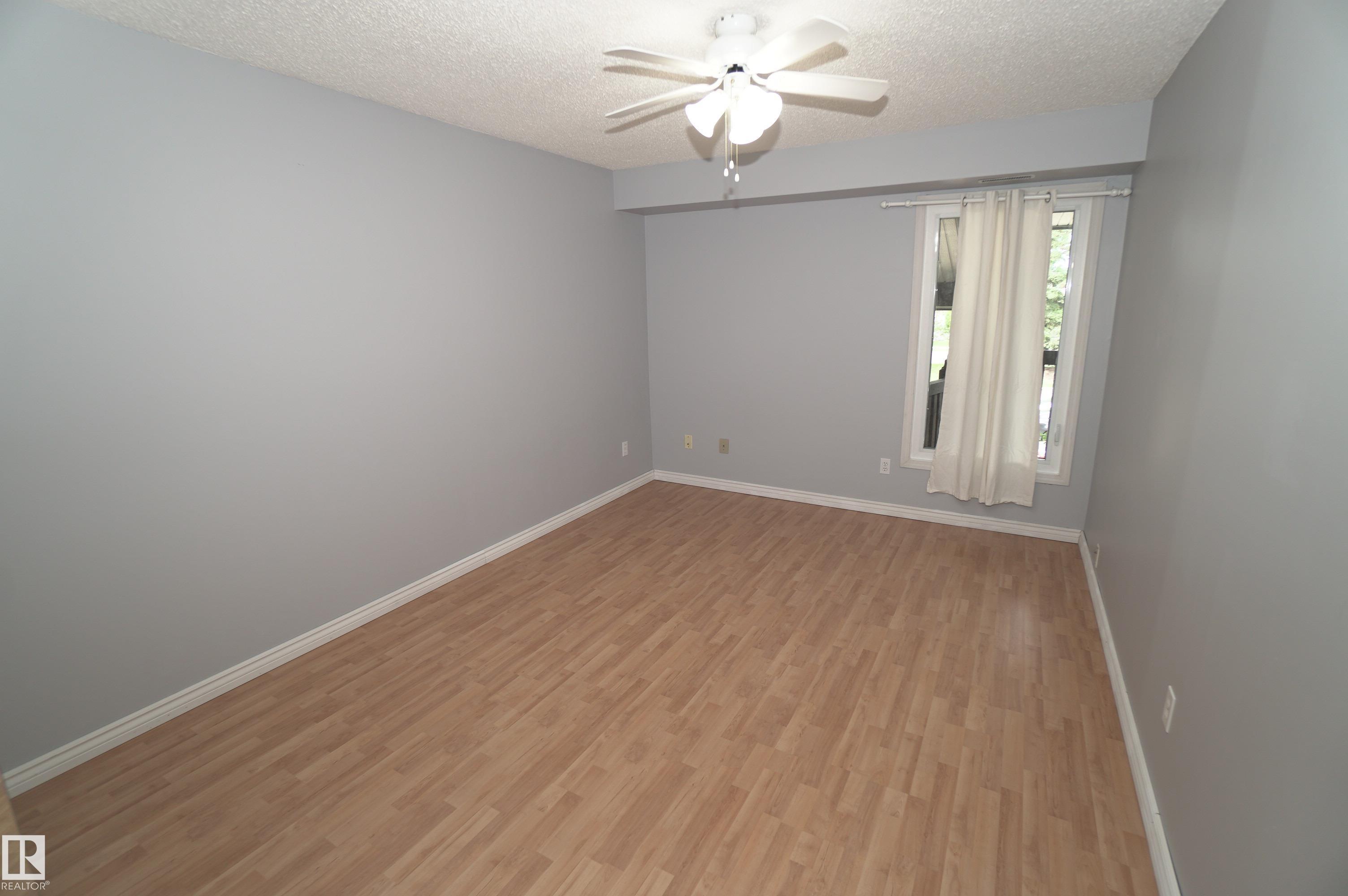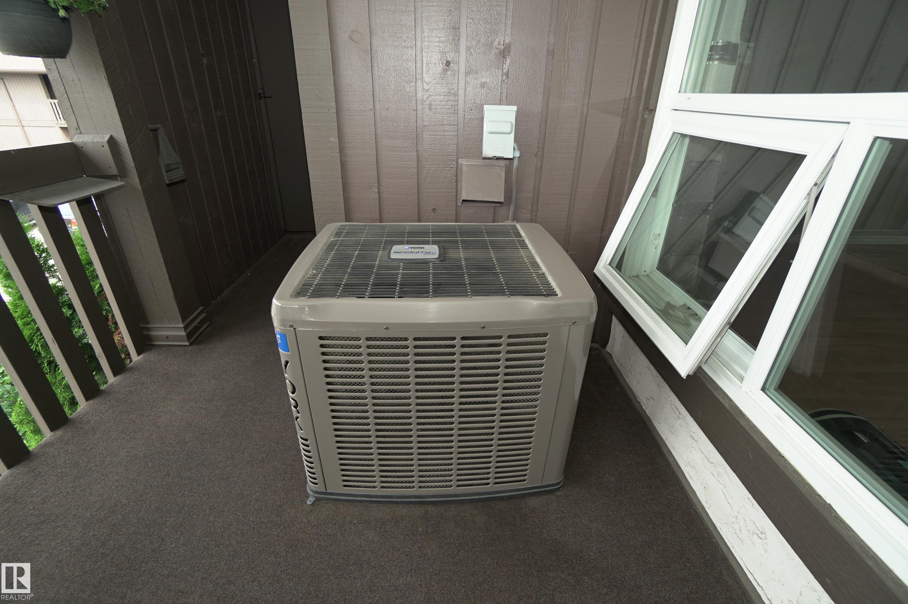 Welcome to this well-maintained carriage-style condo in Edmonton's desirable west end. Offering over 900 sq ft of comfortable living space, this bright and updated unit features 2 bedrooms, 1 full bath, a newer kitchen, and in-suite laundry with newer washer & dryer. Enjoy the comfort of CENTRAL A/C, a covered balcony, and an energized parking stall. Located in a quiet, well-managed complex with low condo fees, this home is perfect for first-time buyers, downsizers, or investors. Close to shopping, public transit, and major routes for easy commuting. A fantastic opportunity in a convenient, community-focused location!