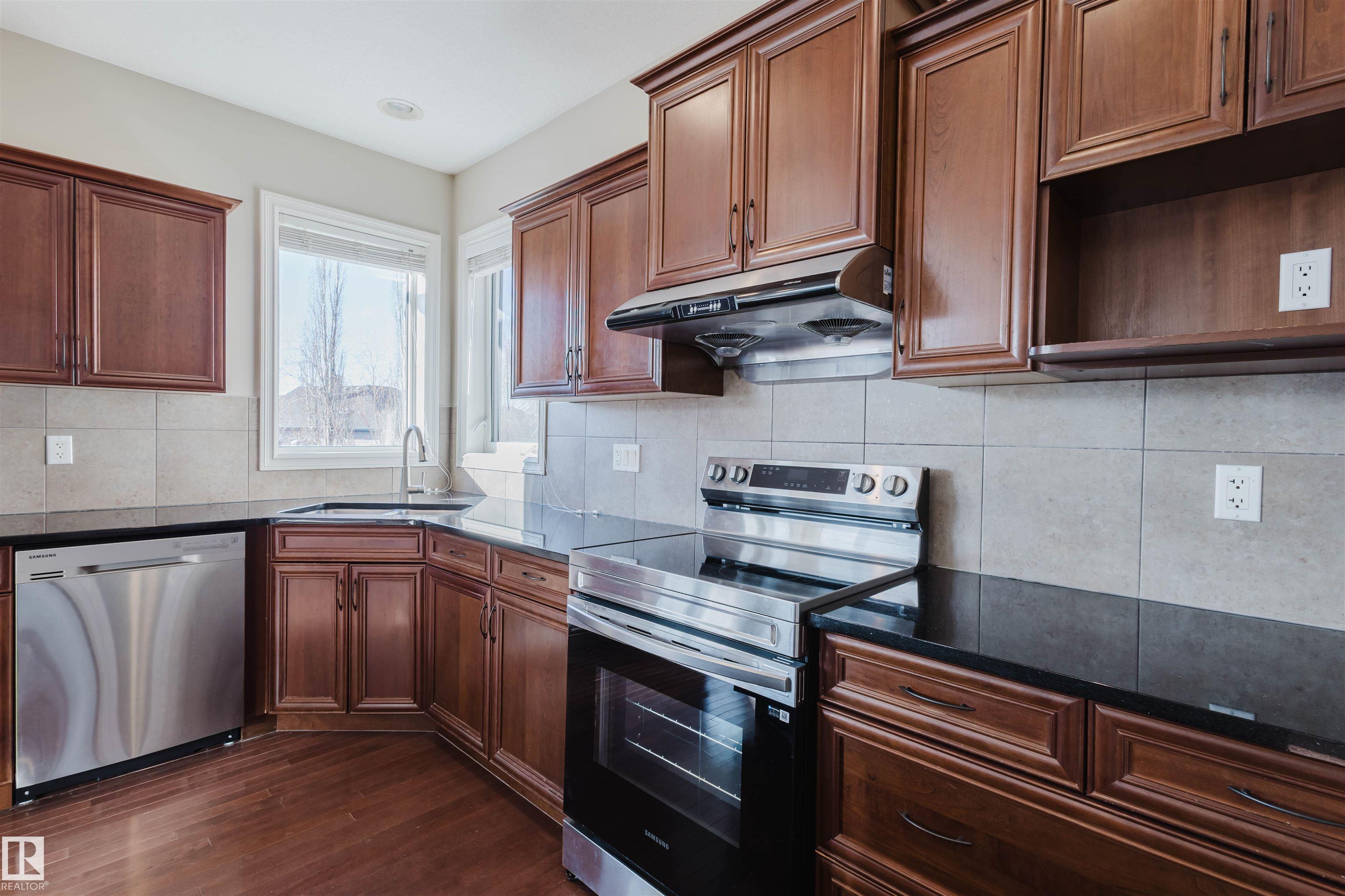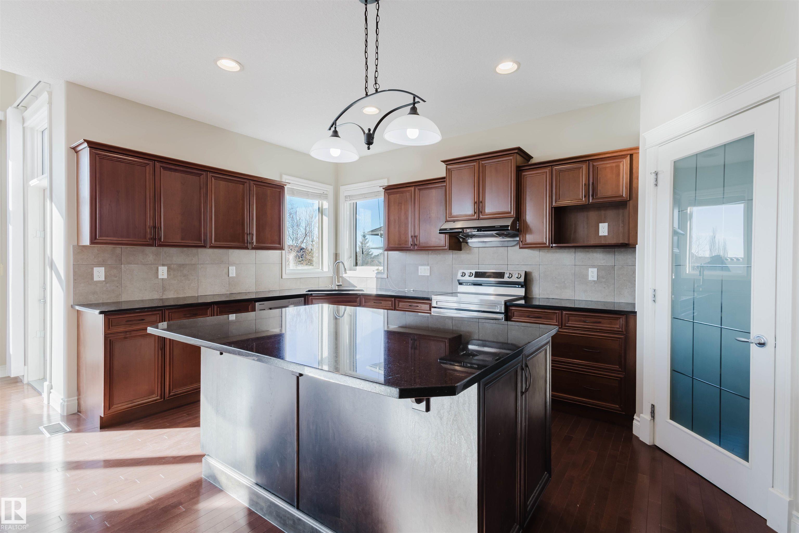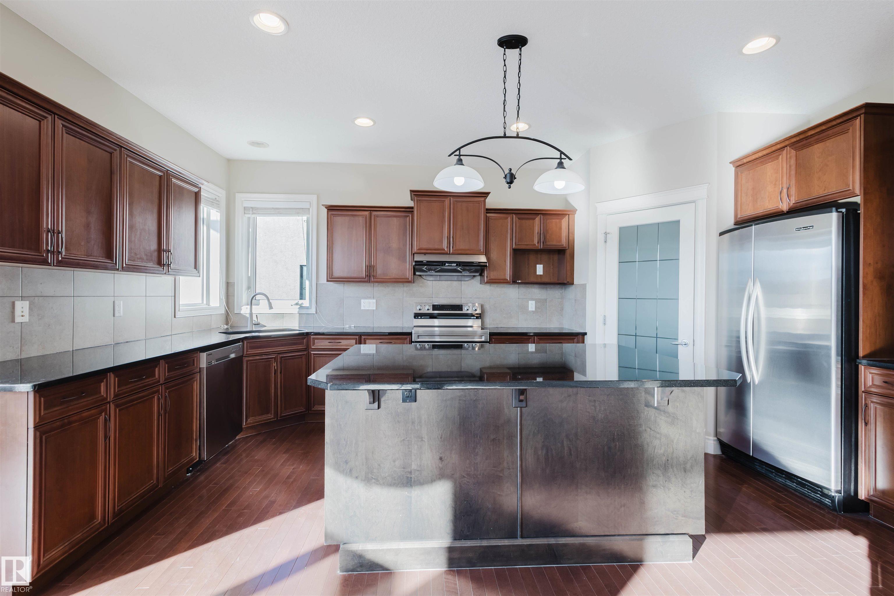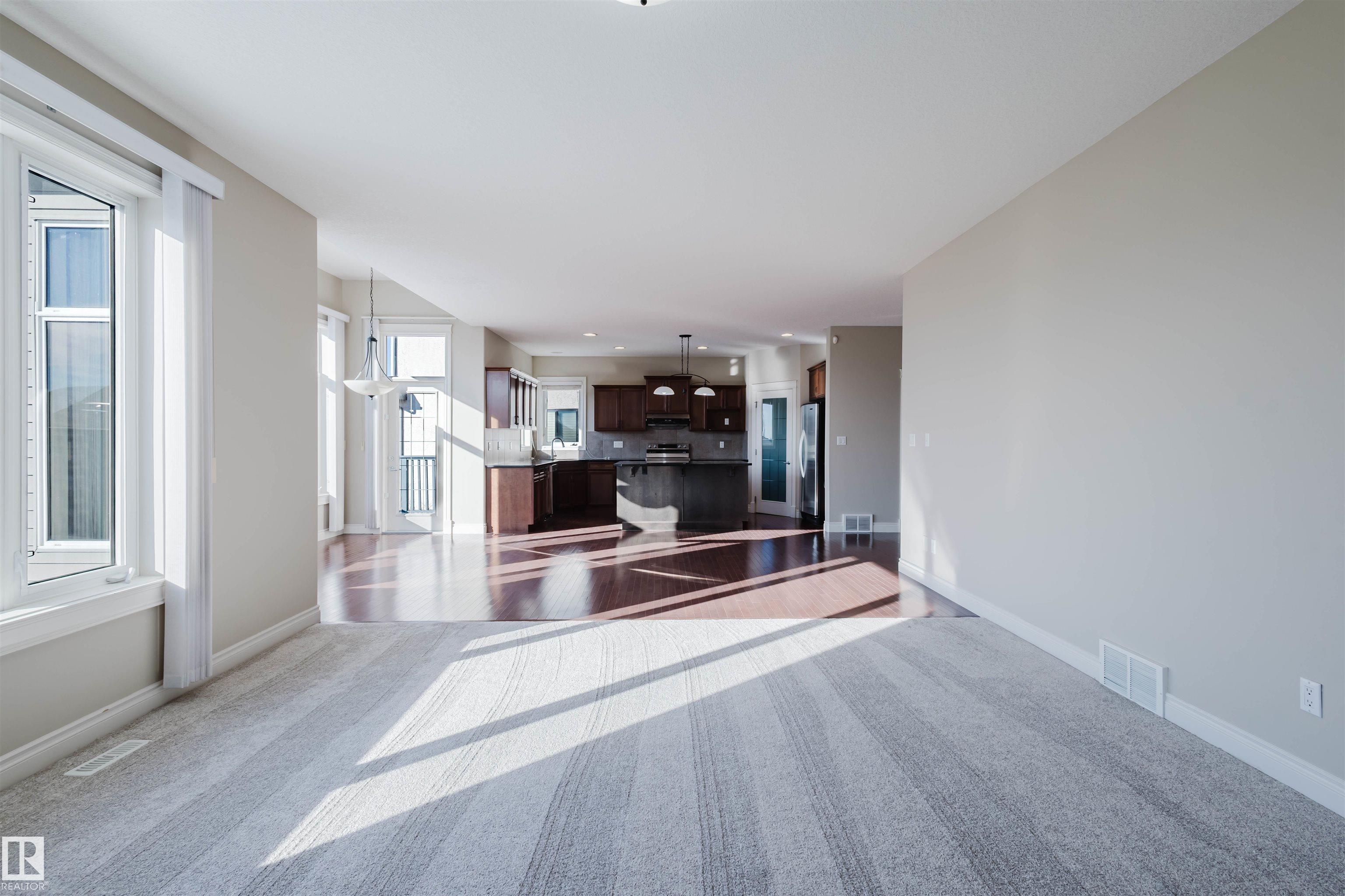 Walkout basement & Triple garage! Stunning 2-storey home located in a quiet cul-de-sac in prestigious MacTaggart! Offering 2,827 sqft of well-designed living space on a 7,025 sq ft south-facing pie lot with a walkout basement, this home welcomes you with a grand foyer & 18' ceiling. Open concept Main floor offers a den/office, spacious living room w/ gas F/P , flooded w/ natural light. A chef-inspired kitchen has abundant cabinetry, granite countertops & corner pantry. Upstairs features 4 generous bedrooms, 2.5 baths, and a large bonus room with French doors--perfect for family living or entertaining. Primary bedroom comes with a 5pc luxurious ensuite. Recent updates include brand new carpet and fresh paint throughout. Triple attached garage. Walking distance to top ranked K-9 Nellie Carlson School! Bright, functional, and beautifully maintained--an exceptional family home in a premium location & don't miss it!