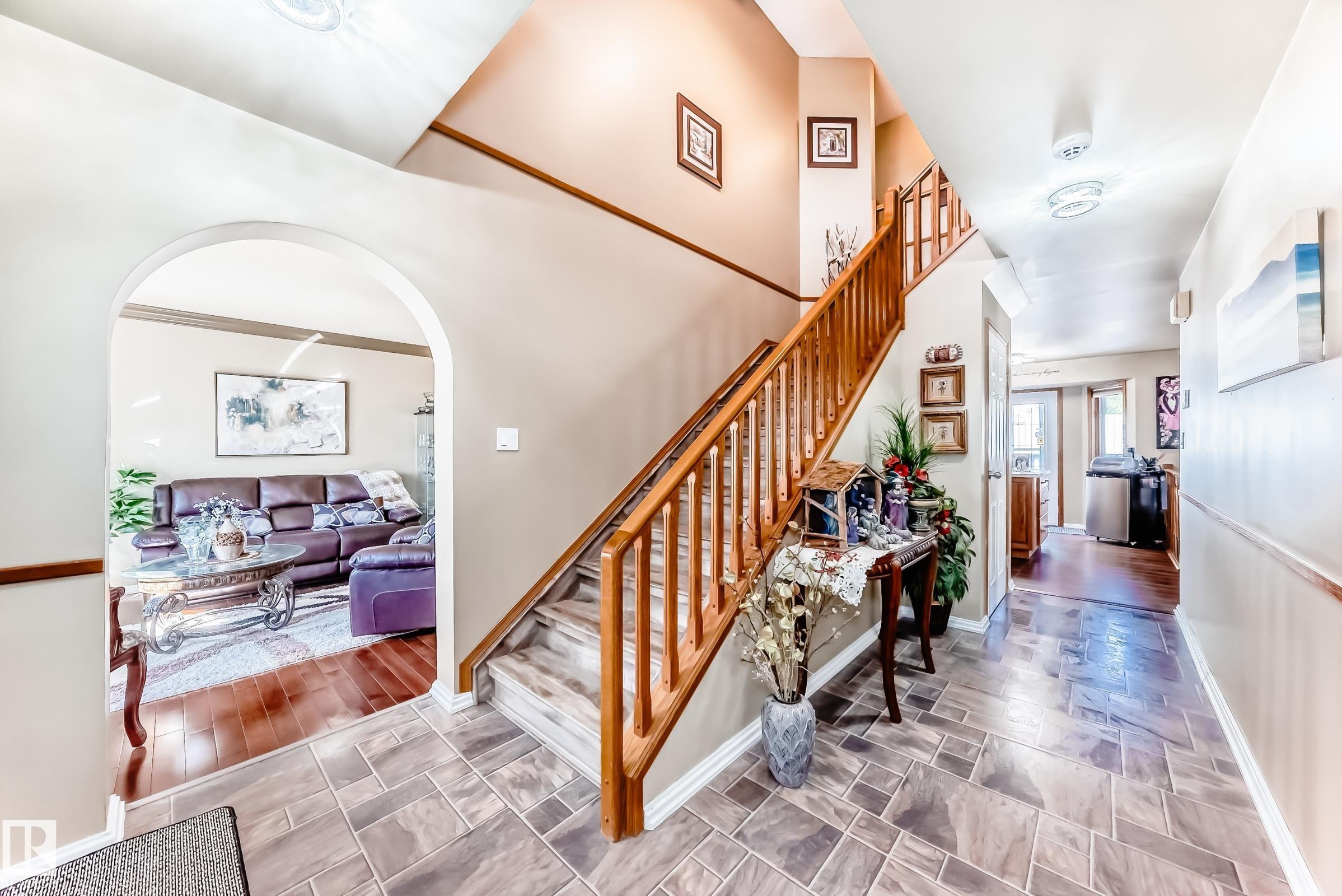 This Perfect Family Home is Exceptional in Size approx 3400 sq ft of Development, Total Living, Many Upgrades !! Immaculate condition this Brick Exterior Beauty sits on a huge pie shaped 8380 sq ft lot in a prime private cul de sac located very close to Londonderry Mall Shopping, many schools for all ages & denonminations. At hand major public transportation, rec facilities, Londonderry indoor swimmimg pool, hockey rinks, playground park facilities, much more for a Great Lifestyle !!! 4 Large Bedrooms on the 2nd storey allow the family to be together, enjoy life in luxury. Super primary bedroom w spa ensuite & lots of clothes closet to fill. The very spacious main floor is excellent in design, elegance, finish, and features flow thru Family Sized Kitchen open to a big family room, fireplace, with formal dining room conversation or privacy area next to the Chef kitchen which opens onto a large private deck, massive yard w Gazebo etc. Also Oversized Dbl Garage, 4 Washrooms, 5 + bedrooms, Move In Ready !!!