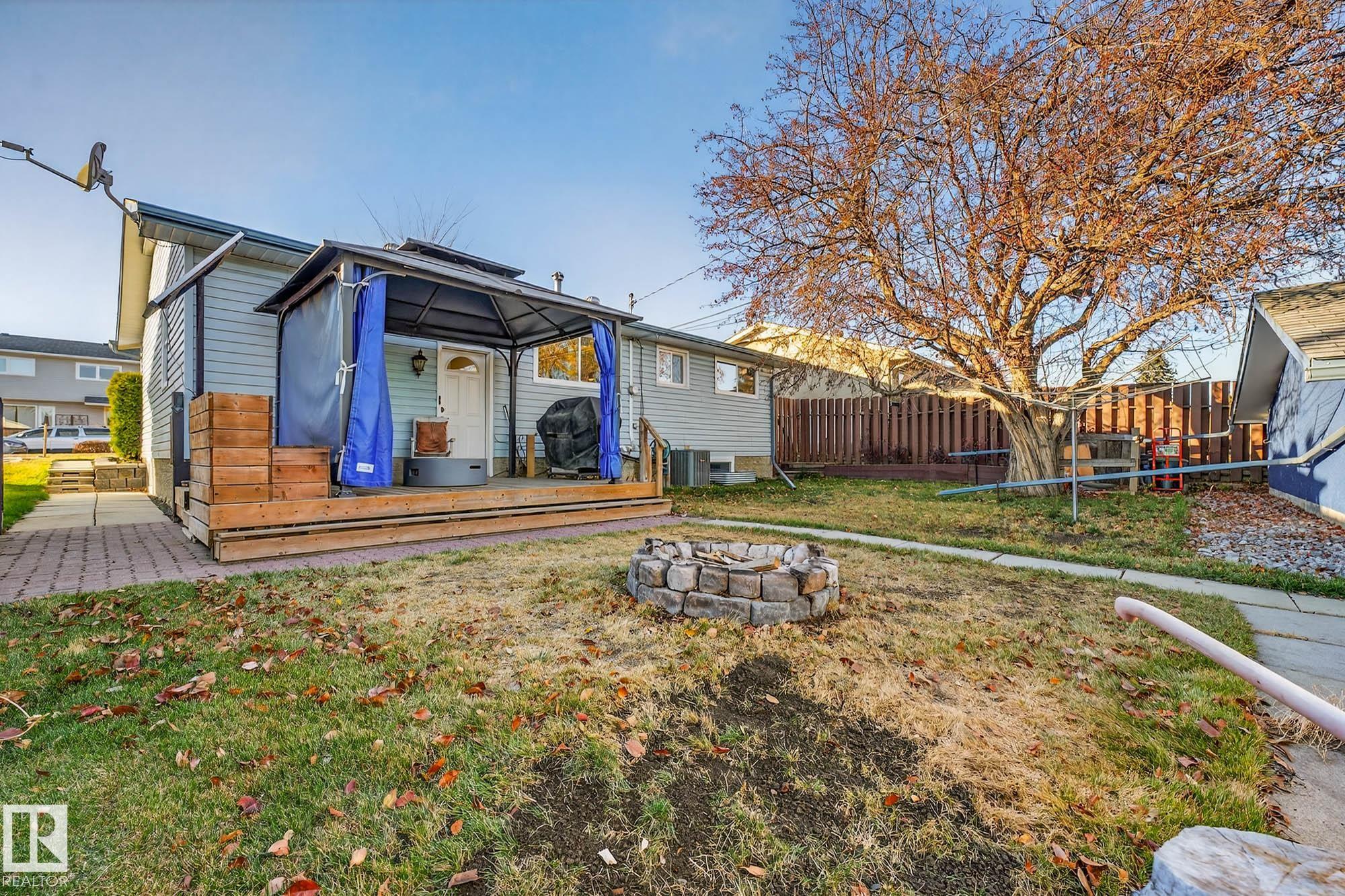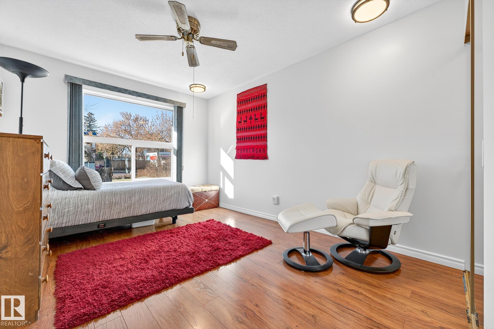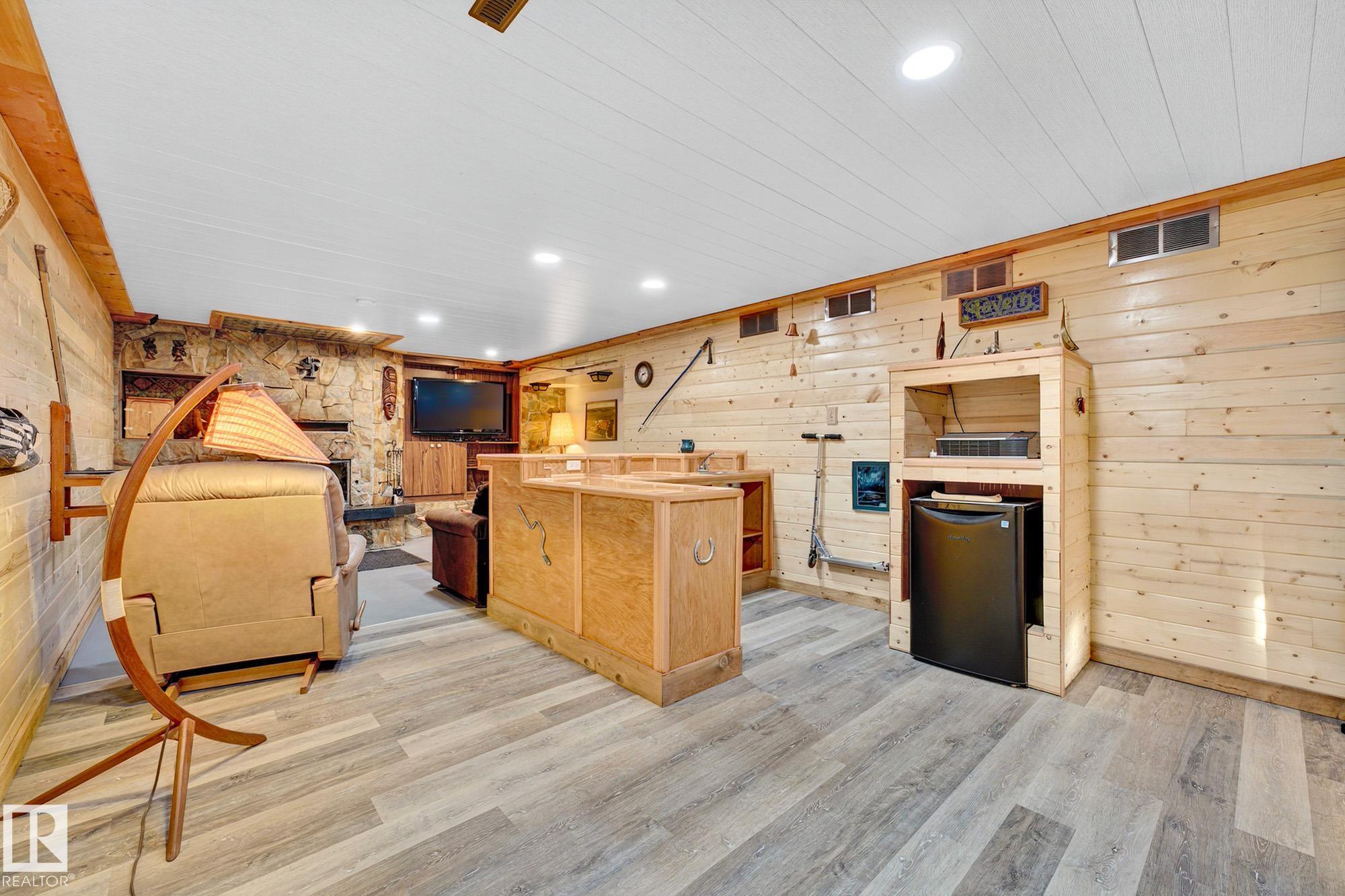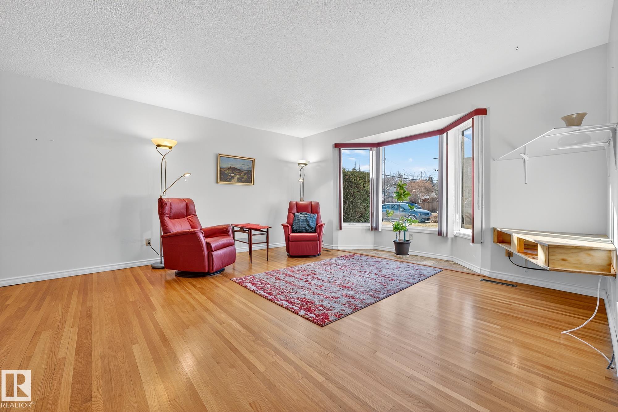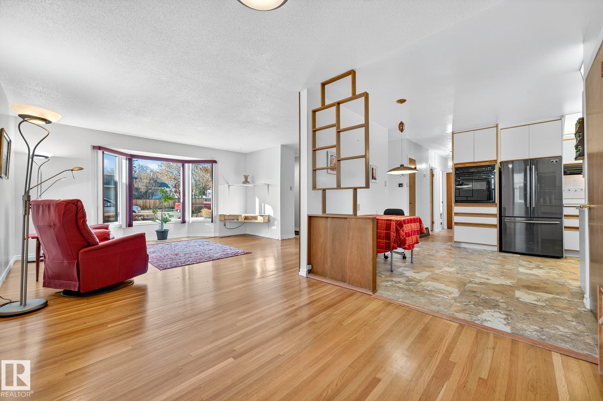 Nestled just off Ada Boulevard and steps from Rundle Park, this bungalow tells a story of warmth and belonging. Morning light filters through triple-pane Pella windows, catching the texture of hardwood floors and mid-century details that speak to another era of craftsmanship. The living and dining spaces flow effortlessly, creating room for conversation and quiet moments alike, while the bright kitchen overlooks the backyard, a view of changing seasons framed by trees and sky. Three main-floor bedrooms offer comfort and calm, and downstairs, a pine-paneled rec room with a wood-burning fireplace and wet bar sets the stage for gatherings that linger into the night. Two additional bedrooms, a full bath, and generous storage complete the home's thoughtful layout. Outside, a pergola-topped deck and oversized heated double garage extend both function and charm. In a community defined by river trails, parks, and connection, this is a haven where every season feels like home.