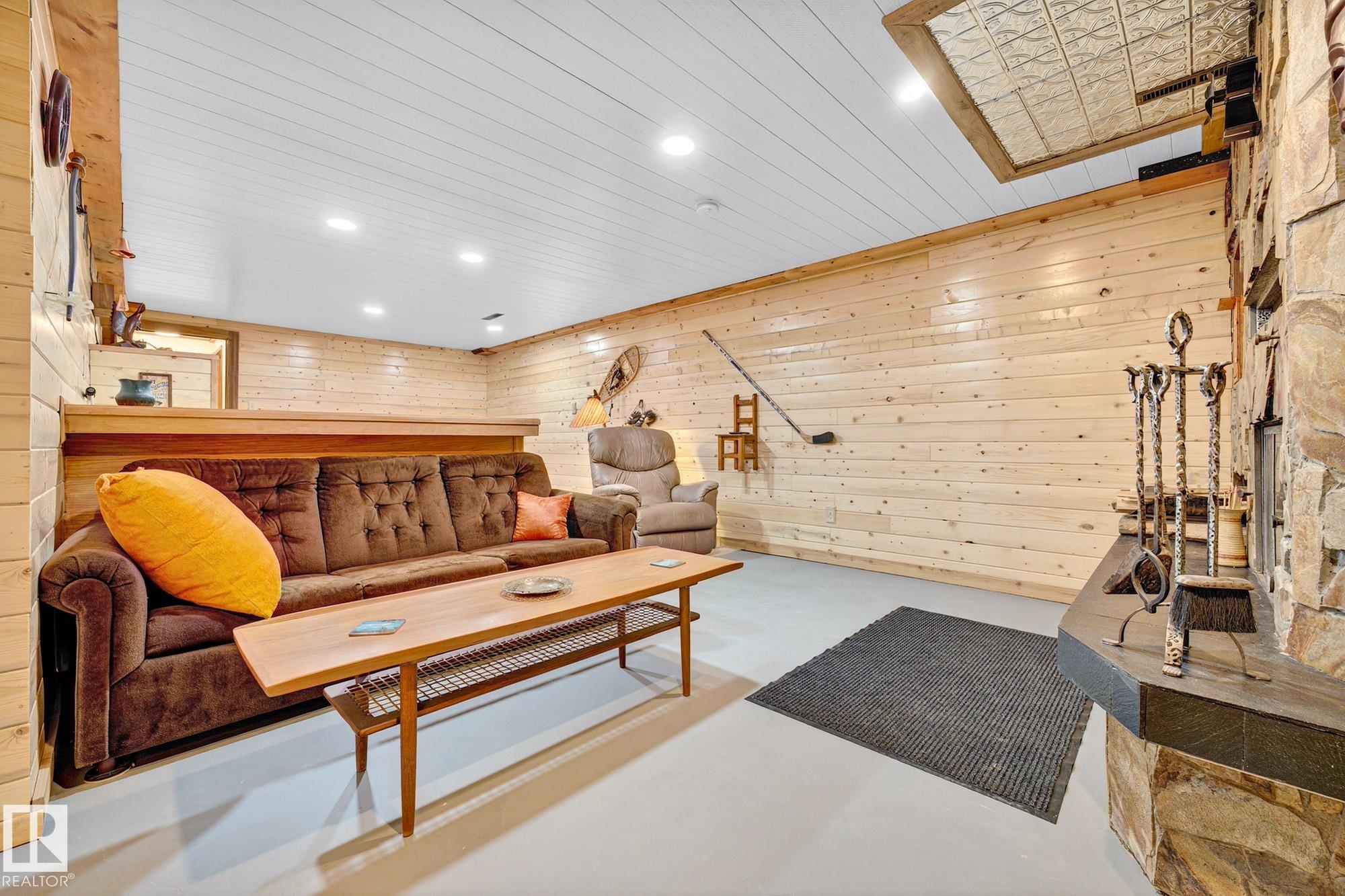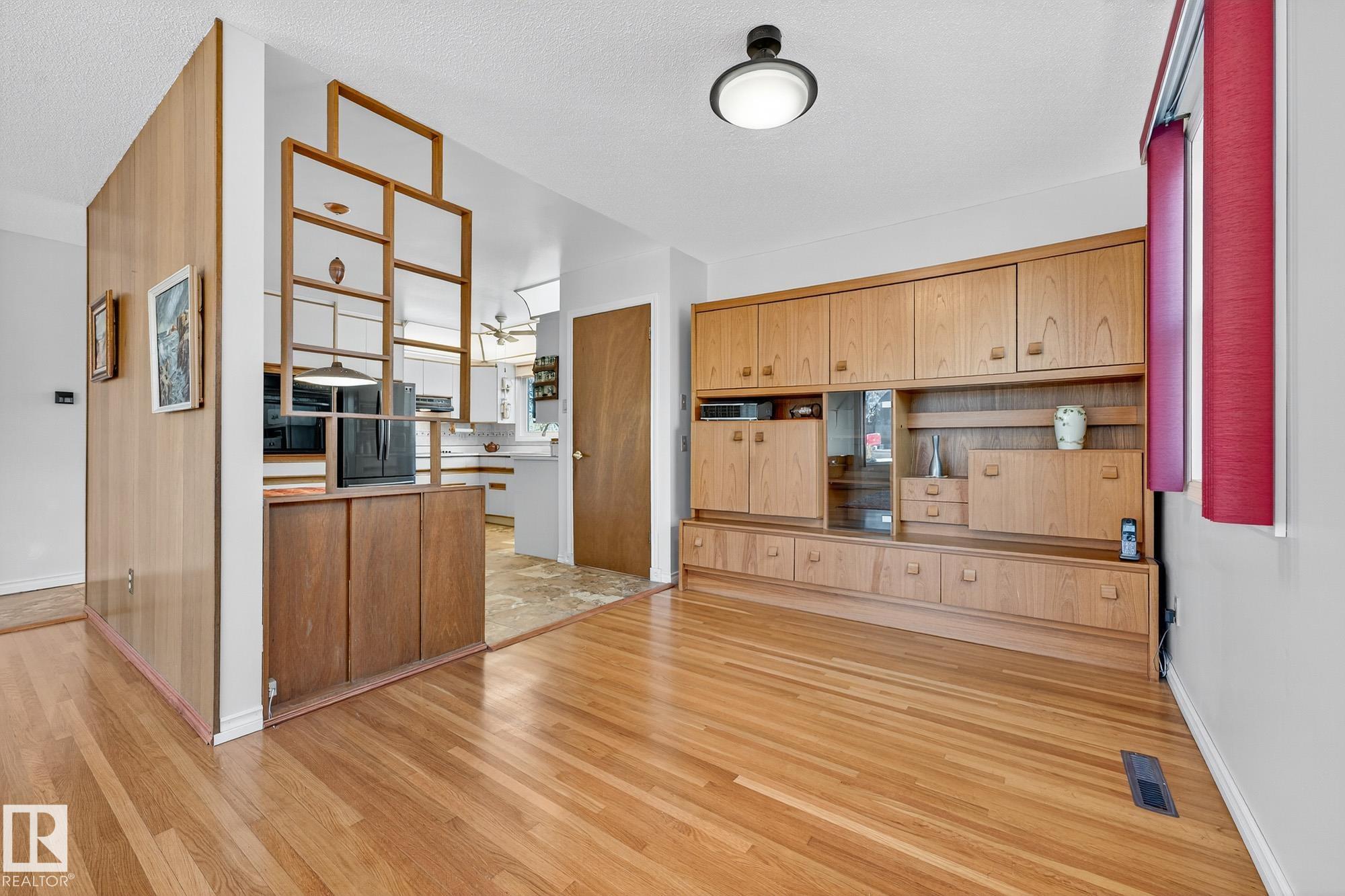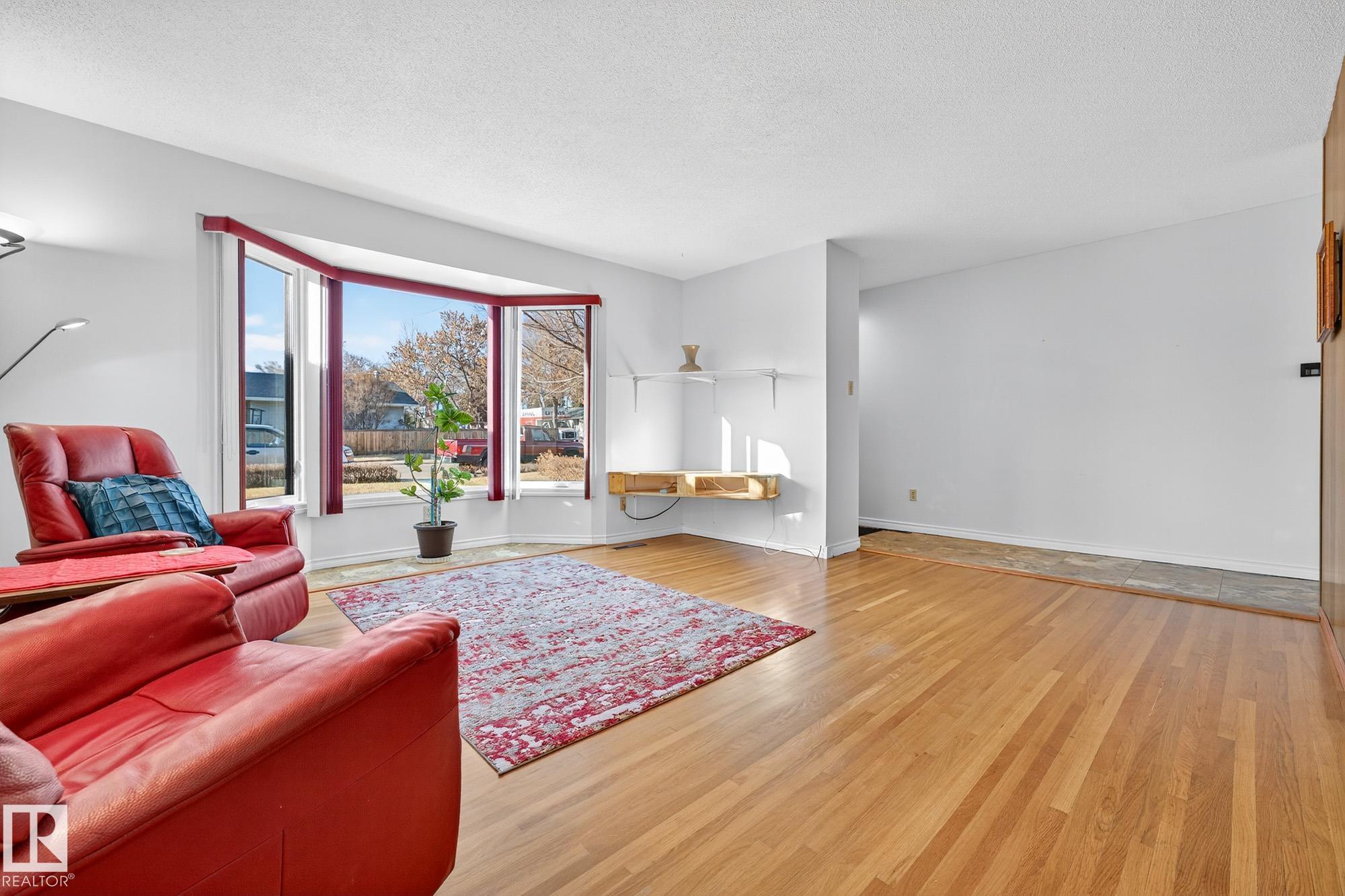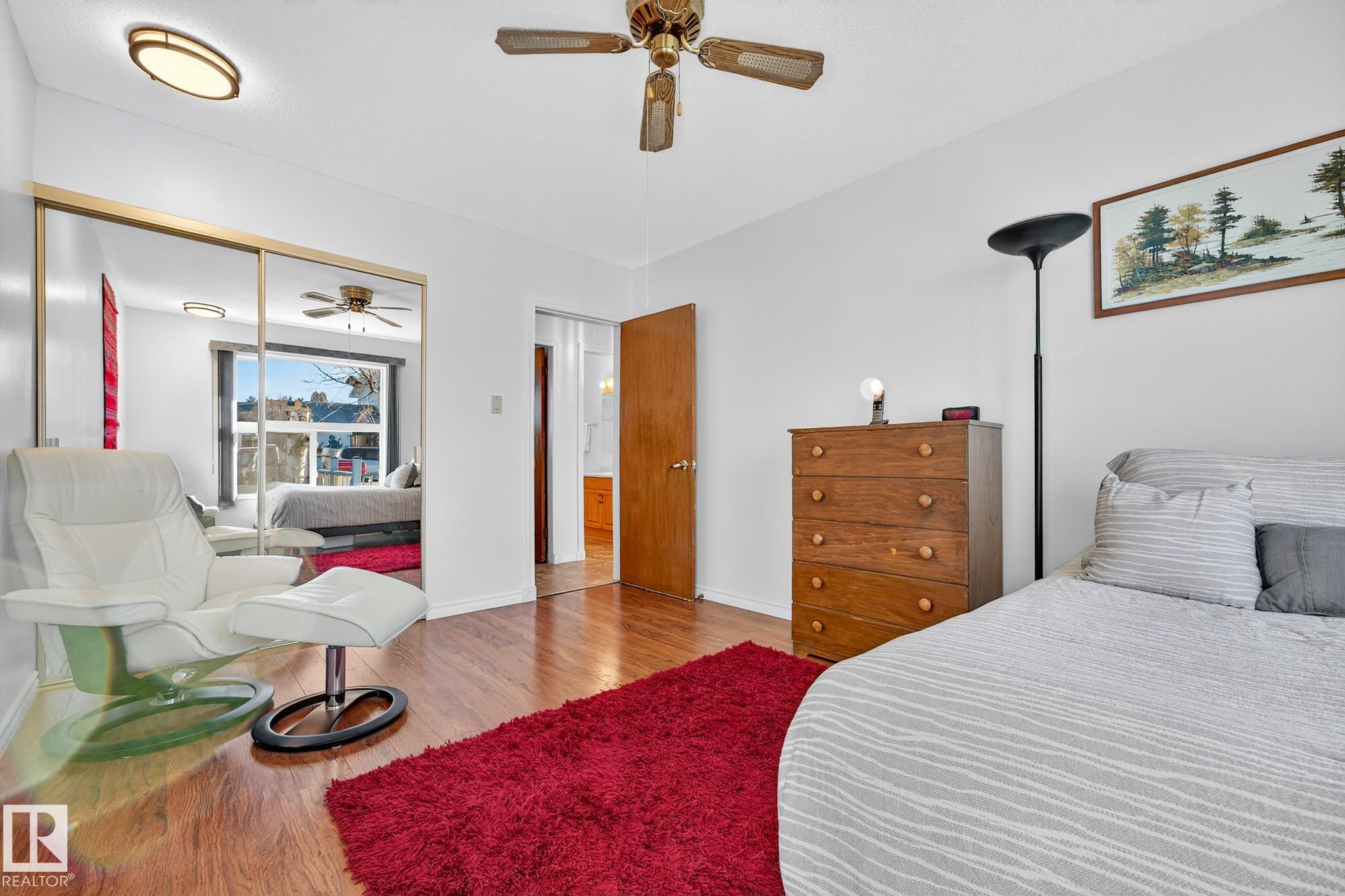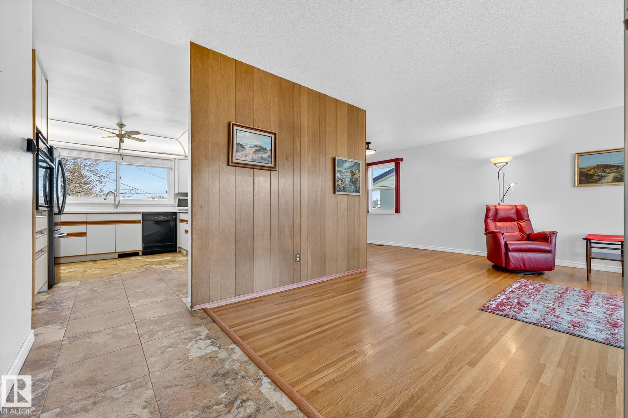 Nestled just off Ada Boulevard and steps from Rundle Park, this bungalow tells a story of warmth and belonging. Morning light filters through triple-pane Pella windows, catching the texture of hardwood floors and mid-century details that speak to another era of craftsmanship. The living and dining spaces flow effortlessly, creating room for conversation and quiet moments alike, while the bright kitchen overlooks the backyard, a view of changing seasons framed by trees and sky. Three main-floor bedrooms offer comfort and calm, and downstairs, a pine-paneled rec room with a wood-burning fireplace and wet bar sets the stage for gatherings that linger into the night. Two additional bedrooms, a full bath, and generous storage complete the home's thoughtful layout. Outside, a pergola-topped deck and oversized heated double garage extend both function and charm. In a community defined by river trails, parks, and connection, this is a haven where every season feels like home.