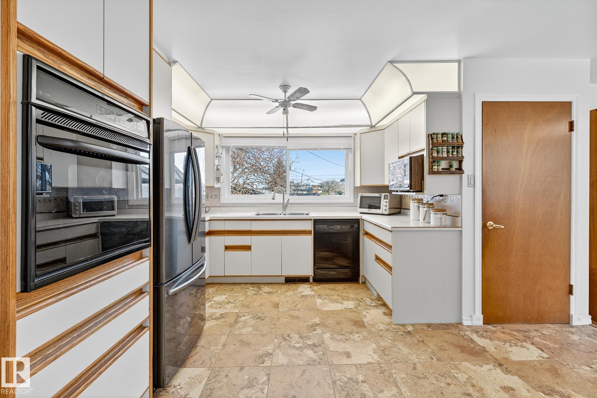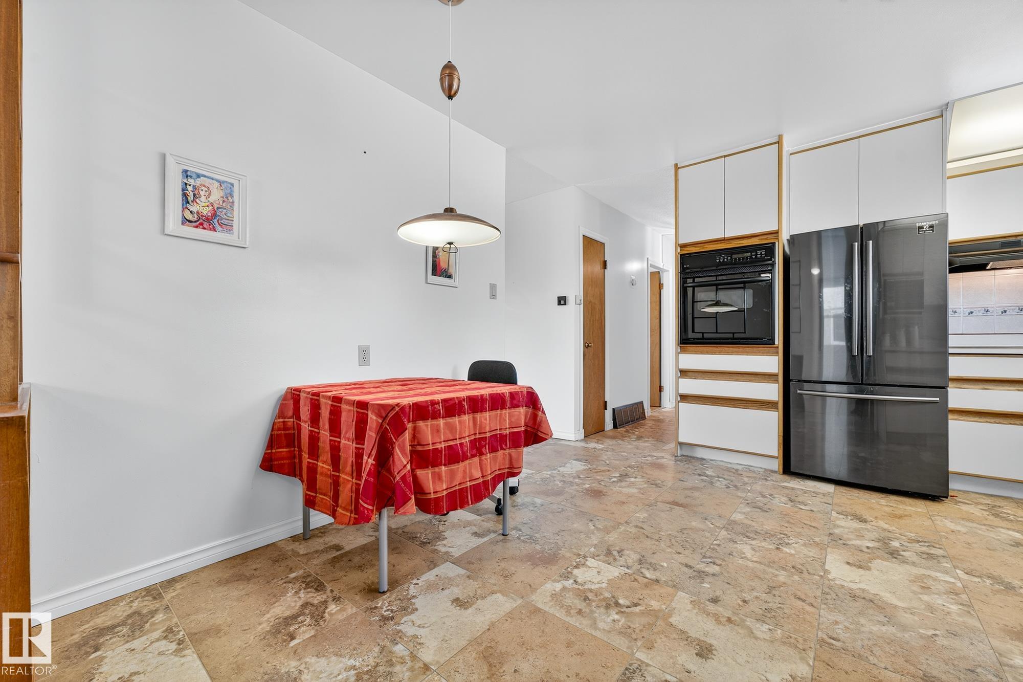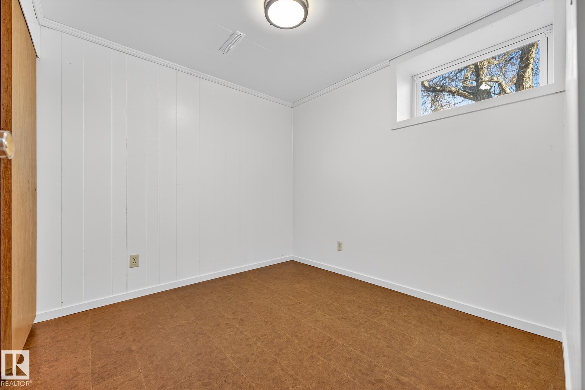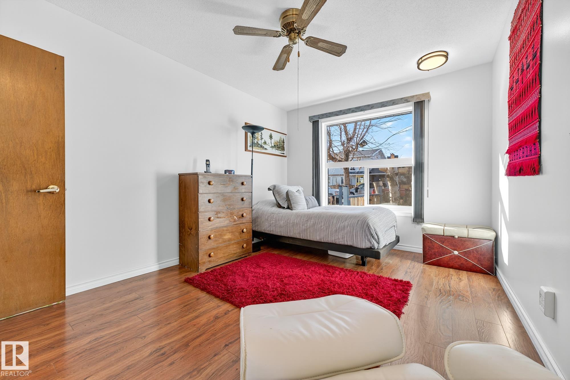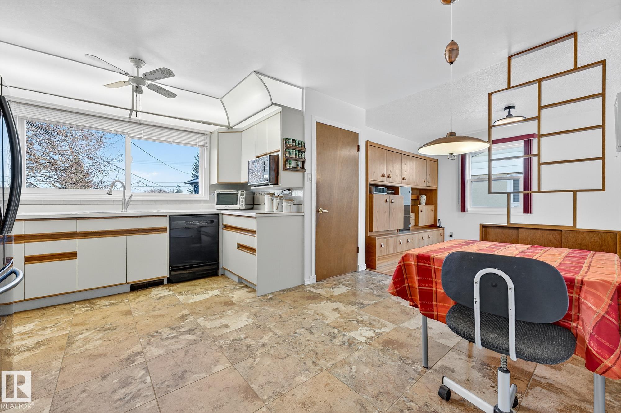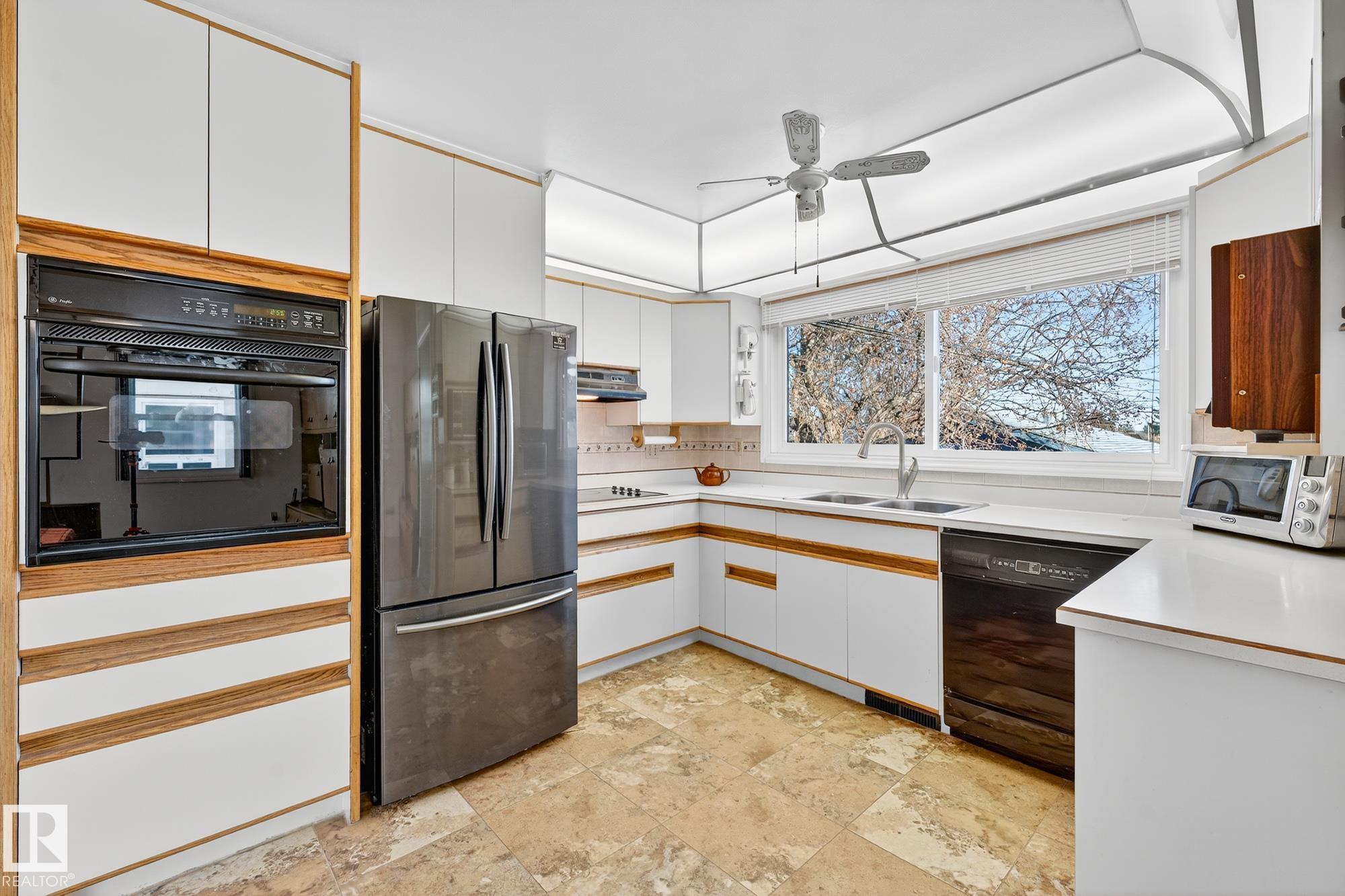 Nestled just off Ada Boulevard and steps from Rundle Park, this bungalow tells a story of warmth and belonging. Morning light filters through triple-pane Pella windows, catching the texture of hardwood floors and mid-century details that speak to another era of craftsmanship. The living and dining spaces flow effortlessly, creating room for conversation and quiet moments alike, while the bright kitchen overlooks the backyard, a view of changing seasons framed by trees and sky. Three main-floor bedrooms offer comfort and calm, and downstairs, a pine-paneled rec room with a wood-burning fireplace and wet bar sets the stage for gatherings that linger into the night. Two additional bedrooms, a full bath, and generous storage complete the home's thoughtful layout. Outside, a pergola-topped deck and oversized heated double garage extend both function and charm. In a community defined by river trails, parks, and connection, this is a haven where every season feels like home.