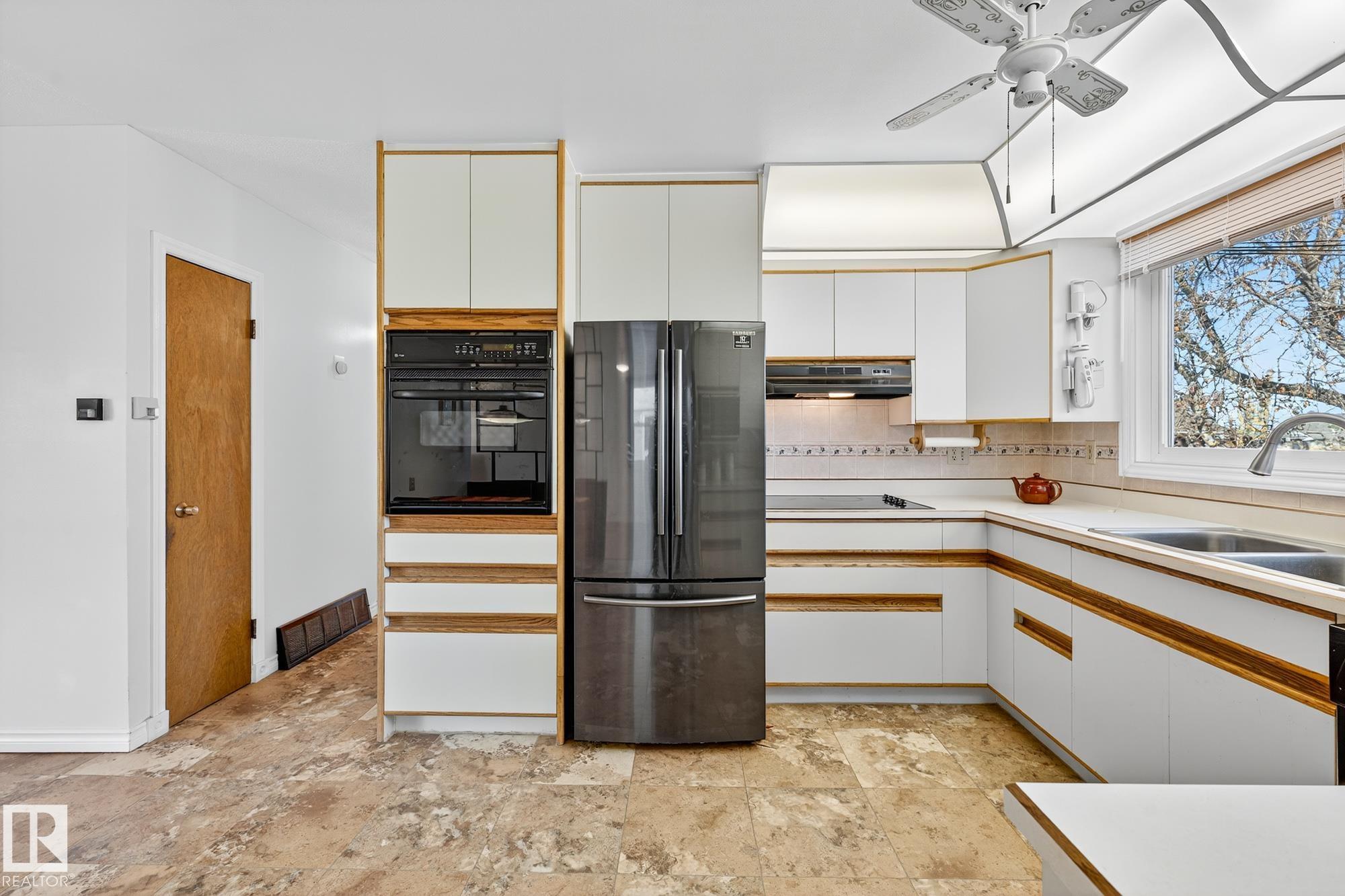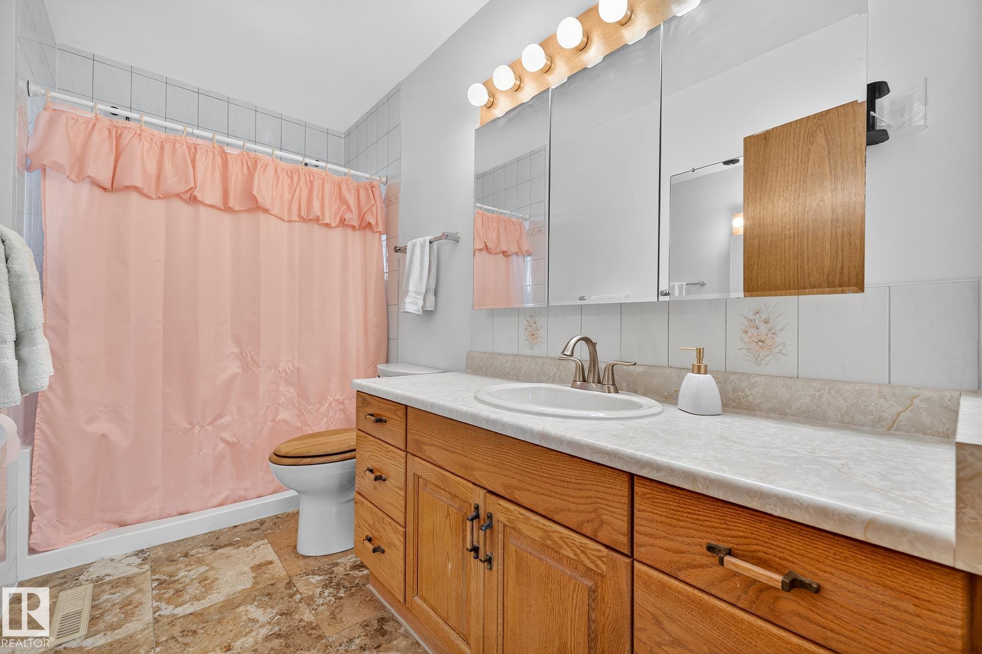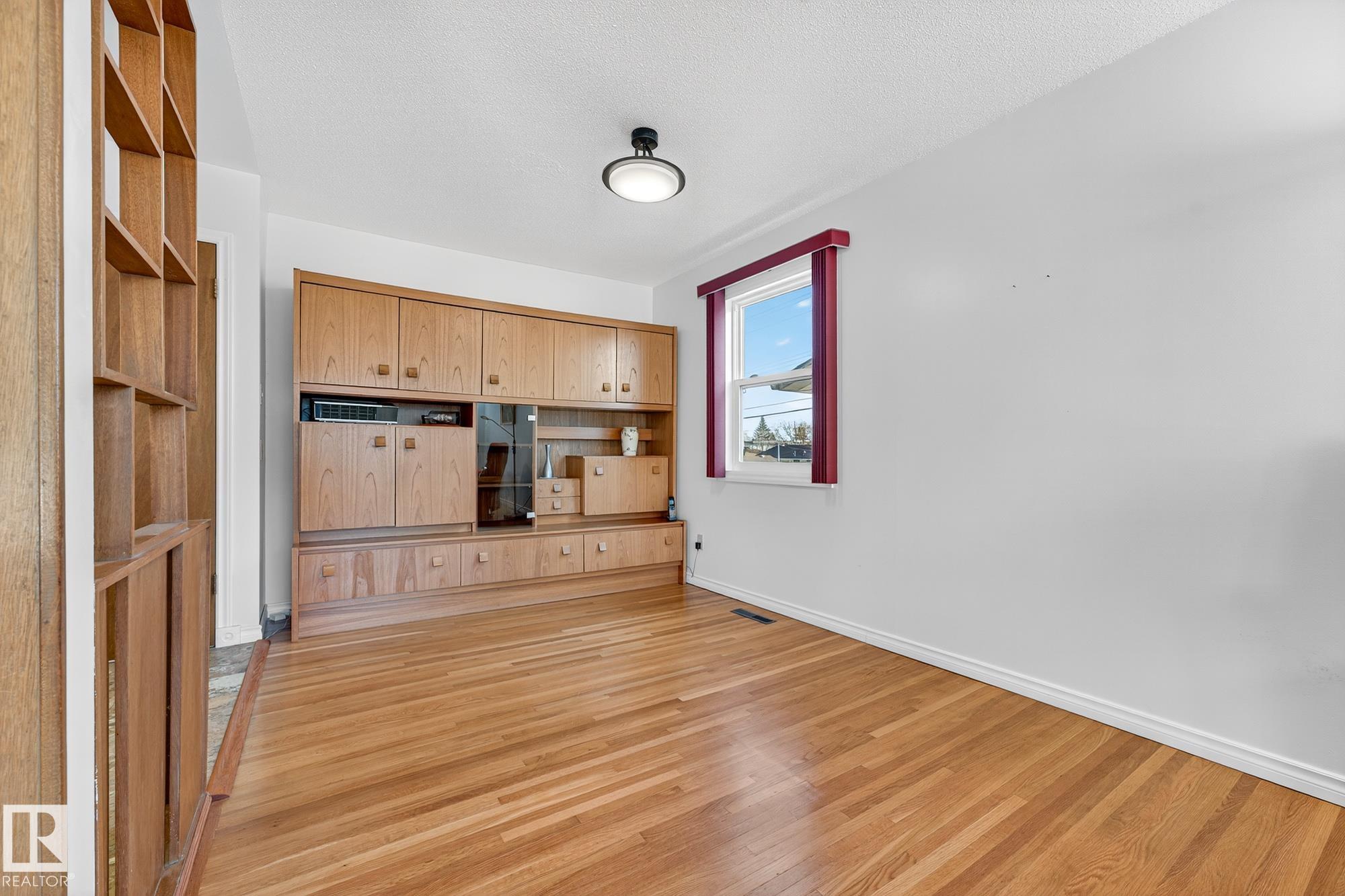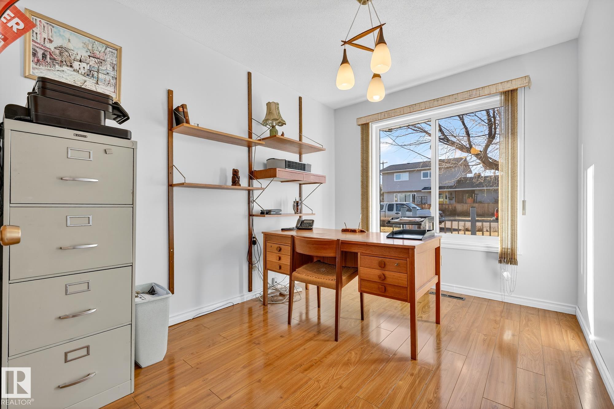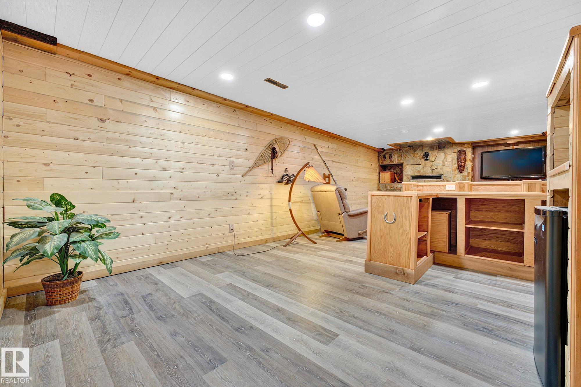 Nestled just off Ada Boulevard and steps from Rundle Park, this bungalow tells a story of warmth and belonging. Morning light filters through triple-pane Pella windows, catching the texture of hardwood floors and mid-century details that speak to another era of craftsmanship. The living and dining spaces flow effortlessly, creating room for conversation and quiet moments alike, while the bright kitchen overlooks the backyard, a view of changing seasons framed by trees and sky. Three main-floor bedrooms offer comfort and calm, and downstairs, a pine-paneled rec room with a wood-burning fireplace and wet bar sets the stage for gatherings that linger into the night. Two additional bedrooms, a full bath, and generous storage complete the home's thoughtful layout. Outside, a pergola-topped deck and oversized heated double garage extend both function and charm. In a community defined by river trails, parks, and connection, this is a haven where every season feels like home.