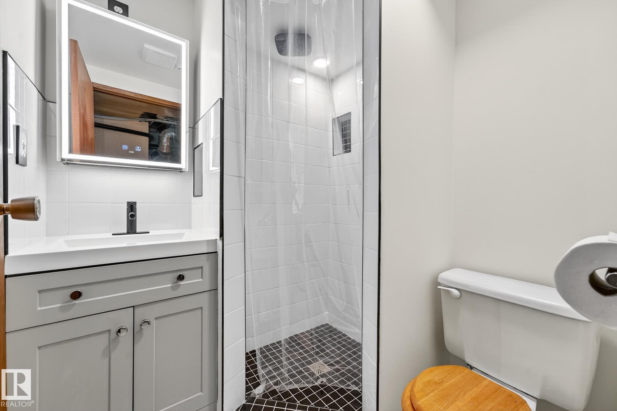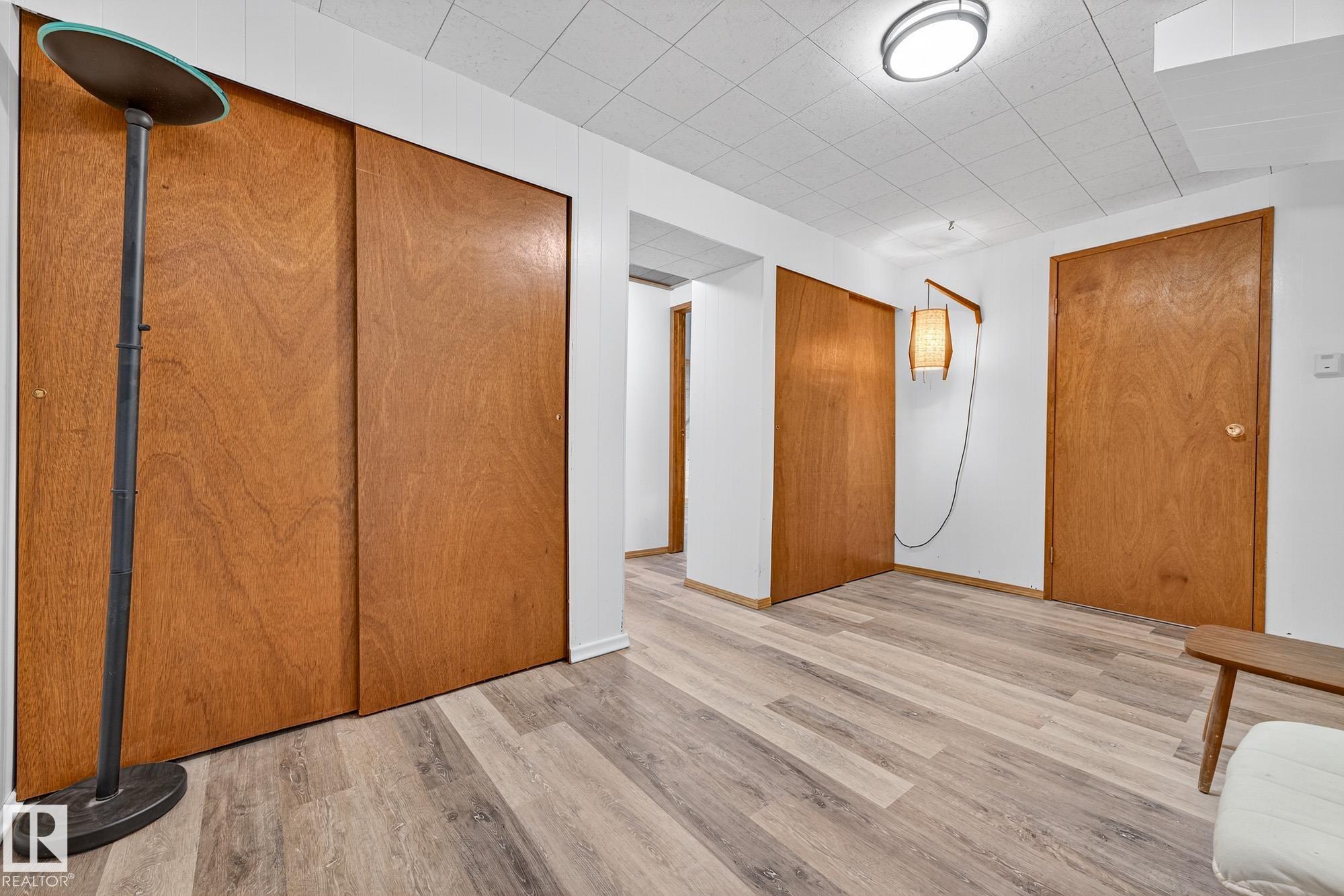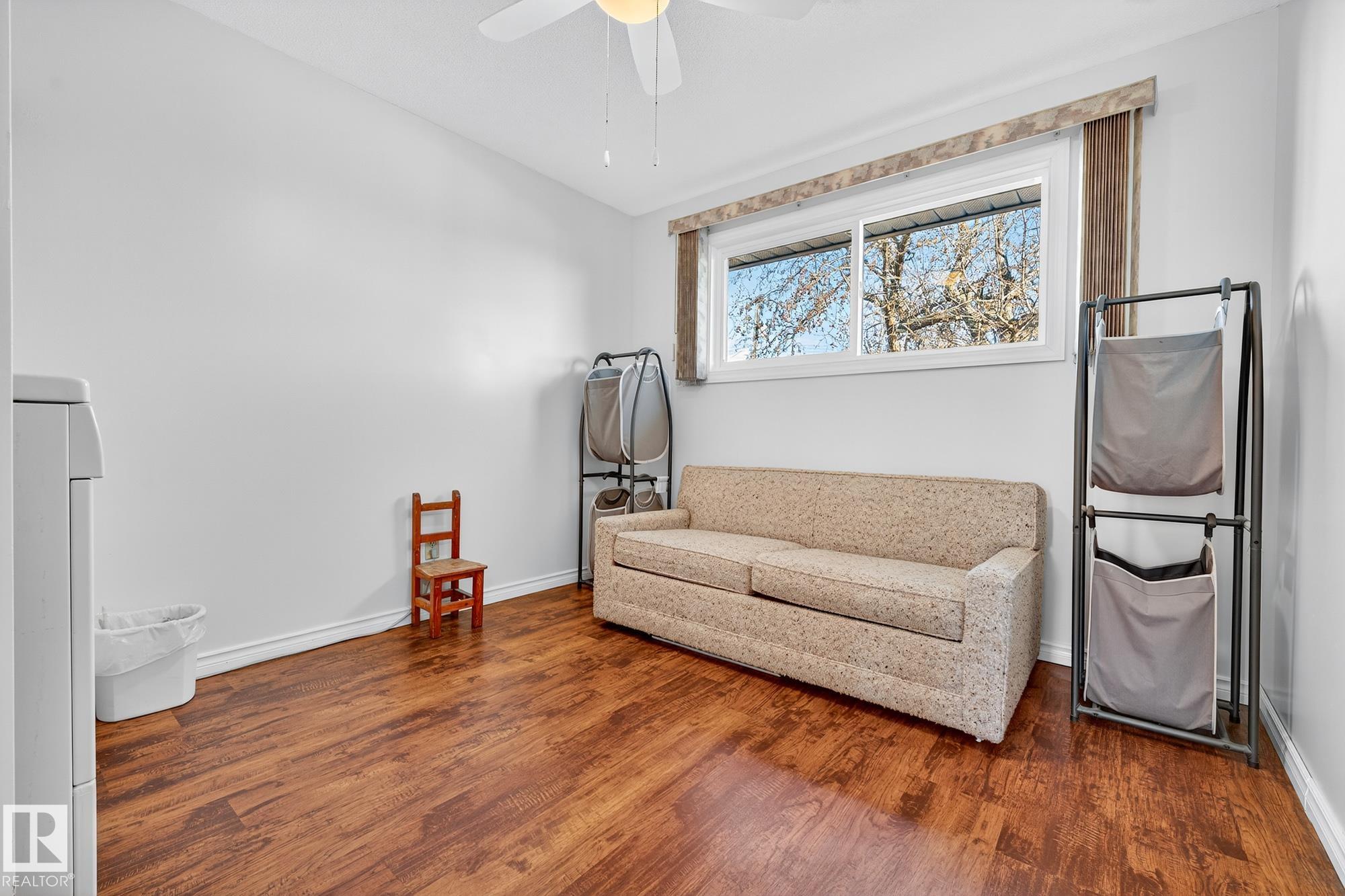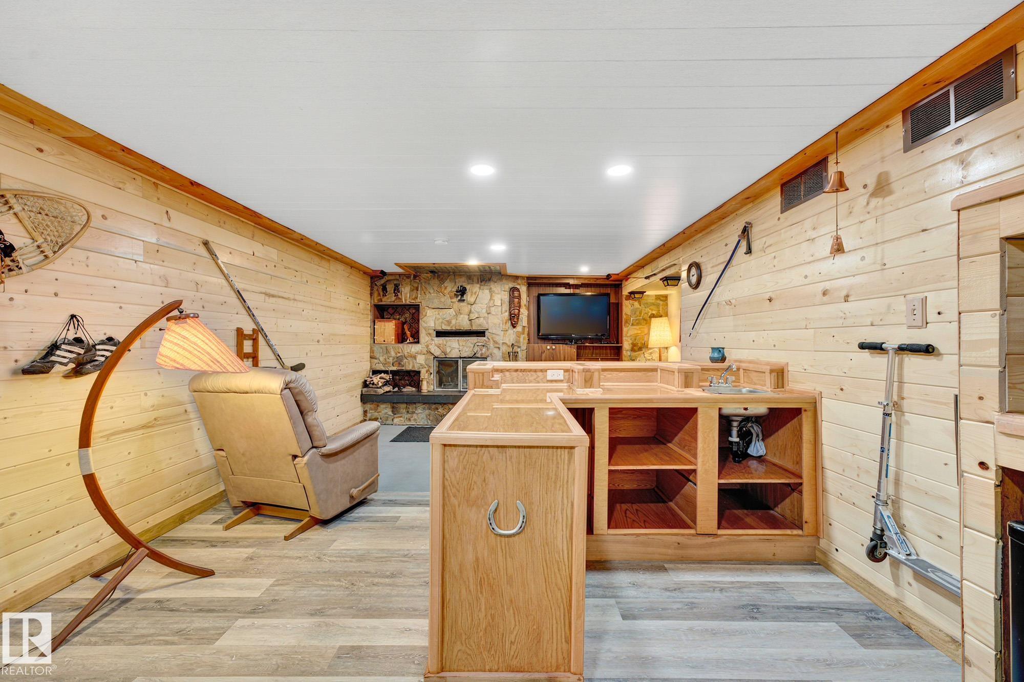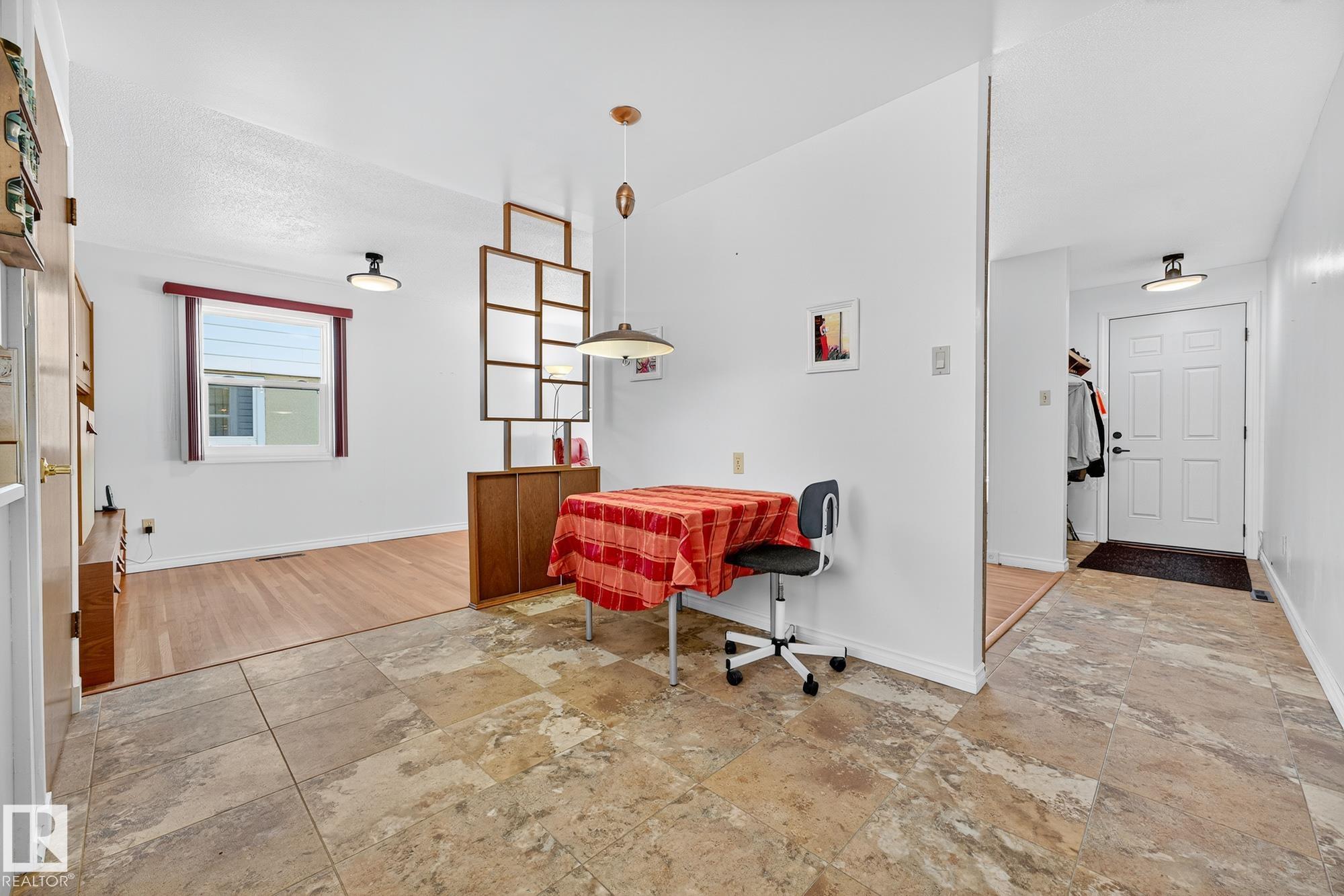 Nestled just off Ada Boulevard and steps from Rundle Park, this bungalow tells a story of warmth and belonging. Morning light filters through triple-pane Pella windows, catching the texture of hardwood floors and mid-century details that speak to another era of craftsmanship. The living and dining spaces flow effortlessly, creating room for conversation and quiet moments alike, while the bright kitchen overlooks the backyard, a view of changing seasons framed by trees and sky. Three main-floor bedrooms offer comfort and calm, and downstairs, a pine-paneled rec room with a wood-burning fireplace and wet bar sets the stage for gatherings that linger into the night. Two additional bedrooms, a full bath, and generous storage complete the home's thoughtful layout. Outside, a pergola-topped deck and oversized heated double garage extend both function and charm. In a community defined by river trails, parks, and connection, this is a haven where every season feels like home.