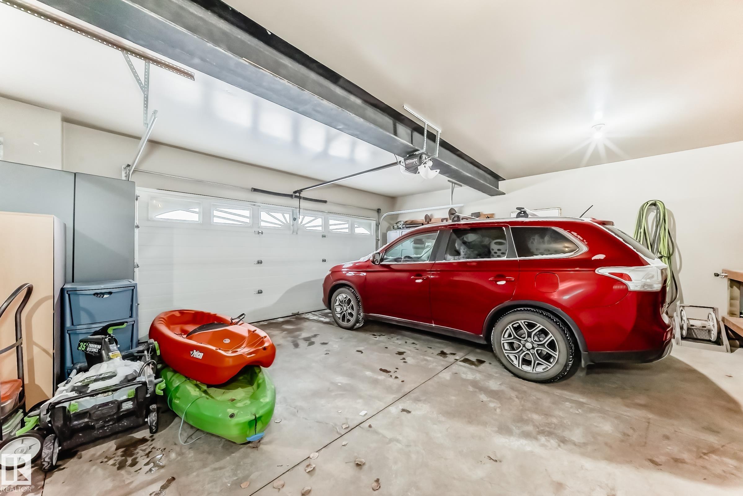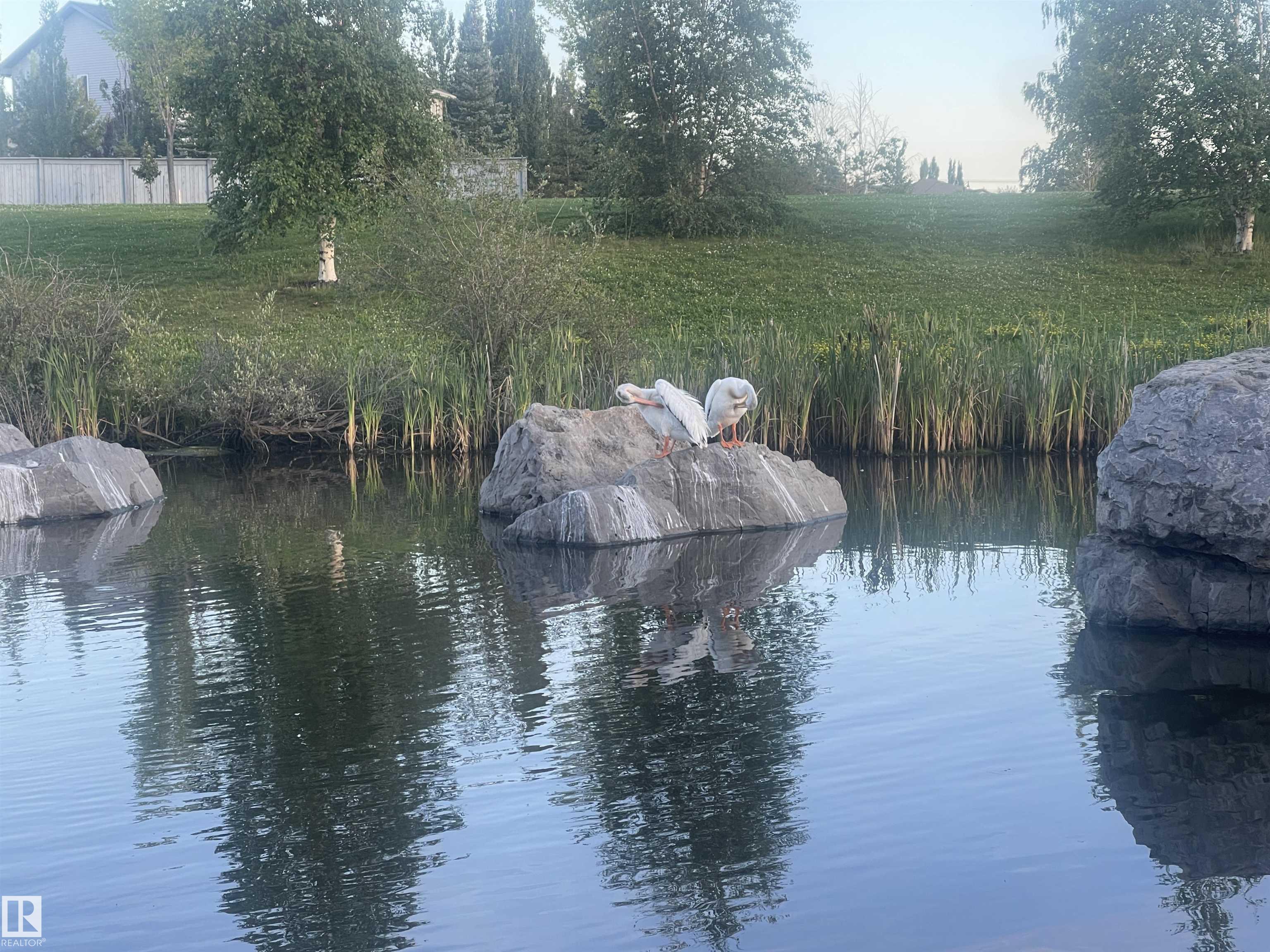 Triple attached heated garage with drive through access to a beautifully landscaped backyard. Located across from a lake, pond, and park, this property offers exceptional lifestyle and views. The private yard features a mature elm tree, rare double grafted purple and pink lilac, and a stunning mature pink hydrangea in the front. Rear access allows parking for a boat or tent trailer while still offering space to entertain, garden, or relax in a peaceful setting. Inside, enjoy an inviting open concept main floor with high ceilings, gas fireplace, and spacious island kitchen with stainless appliances, granite countertops, soft close cabinetry, and walk through pantry. Upstairs offers lake views from the vaulted bonus room, three bedrooms, second floor laundry, and a generous primary suite with walk in closet and four piece ensuite. The fully developed basement adds a large recreation room and fourth bedroom. An outstanding home in a premier lake location. Shows beautifully.