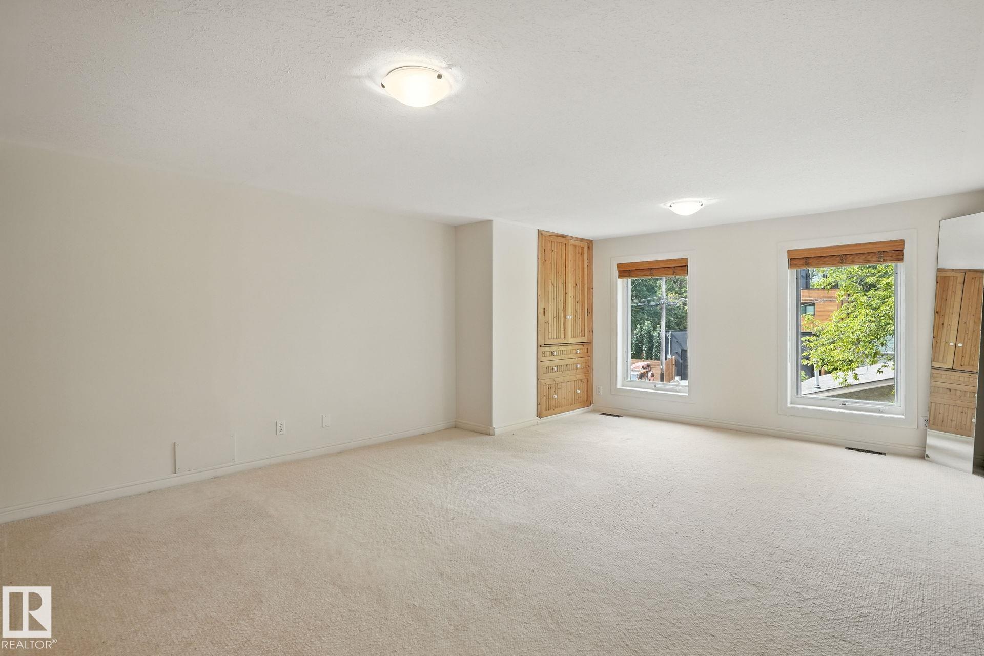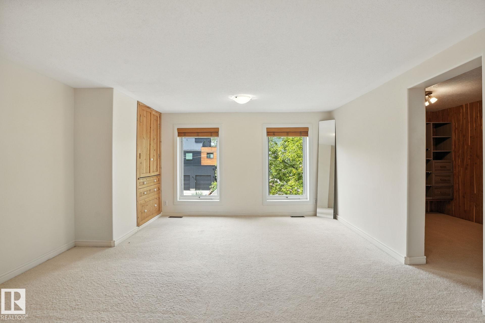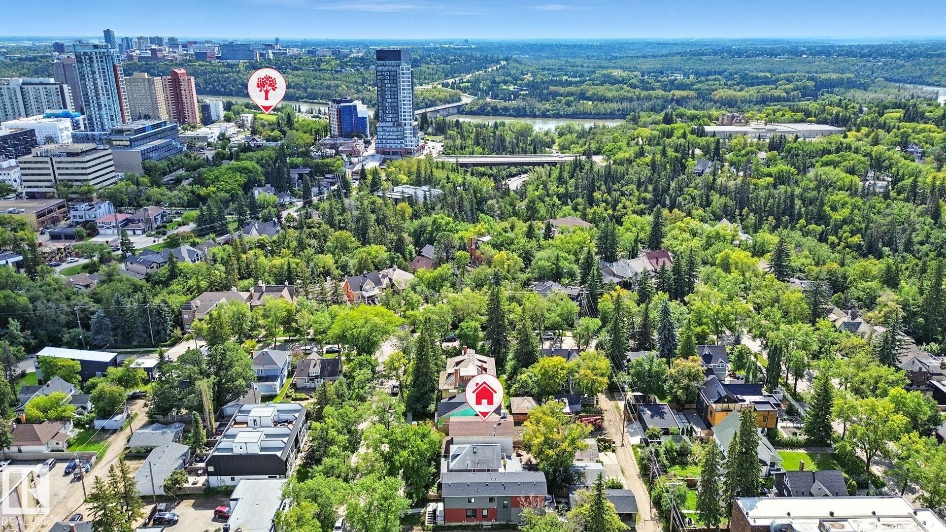 Originally built in 1912 and beautifully modernized, this 3-storey home blends classic vintage character with contemporary sophistication--designed with today's professional couple in mind. Warm wood details flow throughout the open-concept main floor, where natural light highlights a chef's kitchen with gas range and breakfast nook, an elegant dining space, and a stylish family room with a striking stone fireplace and expansive windows overlooking the private, low-maintenance backyard--perfect for intimate dinners or weekend entertaining. The second level is devoted to a luxurious primary suite with a grand walk-in dressing room and spa-inspired ensuite, plus a second bedroom ideal as a home office or guest retreat. The third floor impresses with a versatile bonus room, sunroom, wet bar, and additional bedroom. With 3 bedrooms, 3.5 baths, and a heated double garage, this residence is steps from the river valley, trendy 124 St, downtown dining, and cultural amenities--urban living at its finest.
