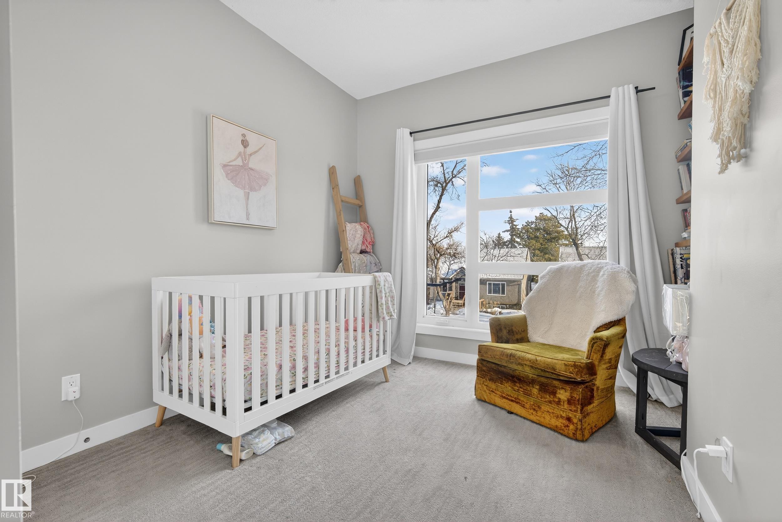 Turn-key, custom-built luxury infill (2014) with 1,822 sq ft above grade and 2,655 sq ft total living space, thoughtfully designed and not narrow like a typical skinny home. 9-ft ceilings throughout, stunning living room with custom coffered ceiling, feature-tile wall, gas fireplace, and integrated smartphone-controlled surround sound. Modern kitchen with granite (throughout house), 10-ft island, custom cabinetry, MDF shelving, and upgraded counter-depth fridge. Smoke-free, pet-free home with Roxul party wall insulation for superior soundproofing. Upstairs has a massive primary master, with office nook and ensuite featuring steam shower, double vanities, and oversized 6-ft tub. Finished basement with family/play area and home gym, fire and sound insulated ceilings, side entrance, separate laundry, and rough-ins. Future development potential subject to municipal approval. Exterior wrapped in acrylic stucco, massive windows, west-facing yard. Oversized 10ft ceiling heated garage, full driveway.
