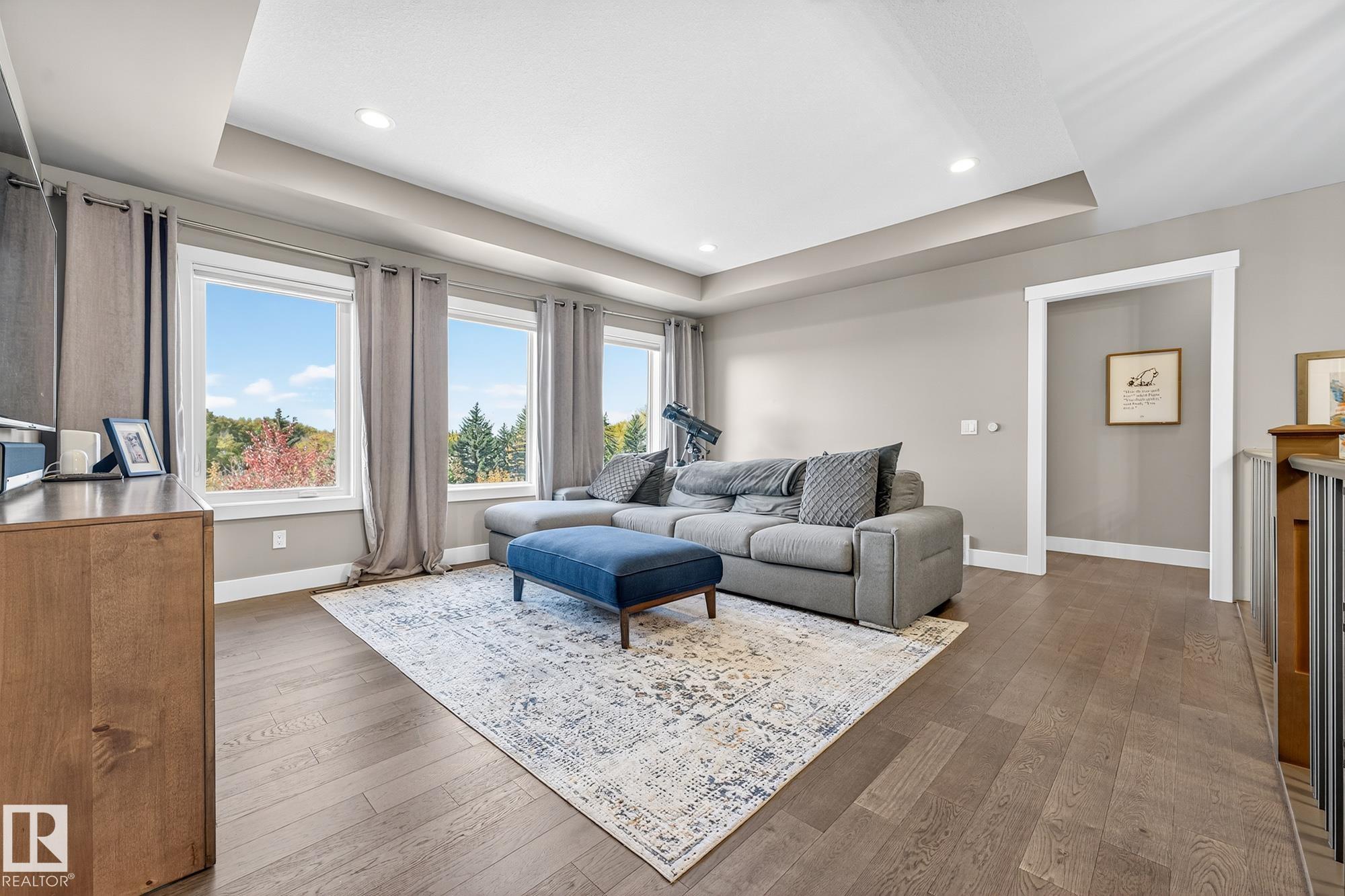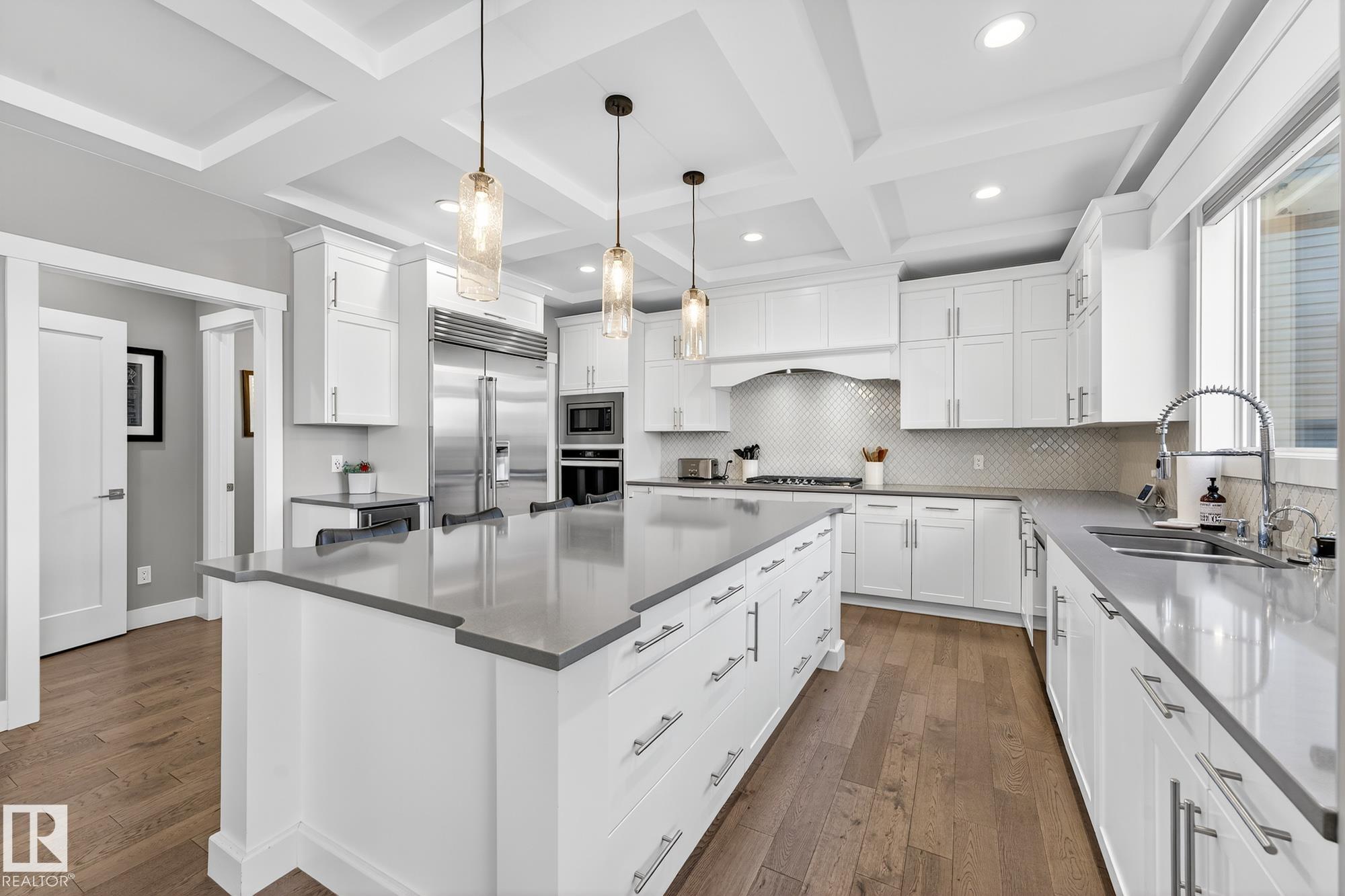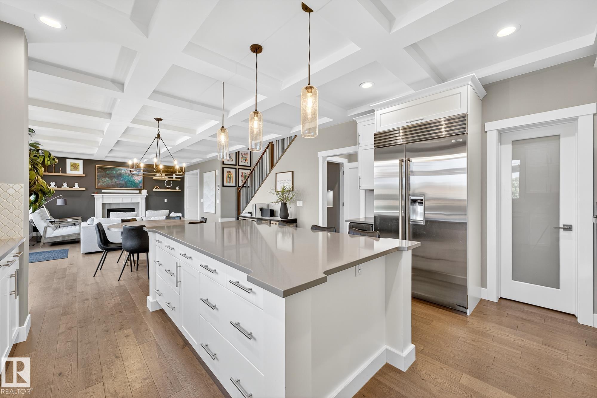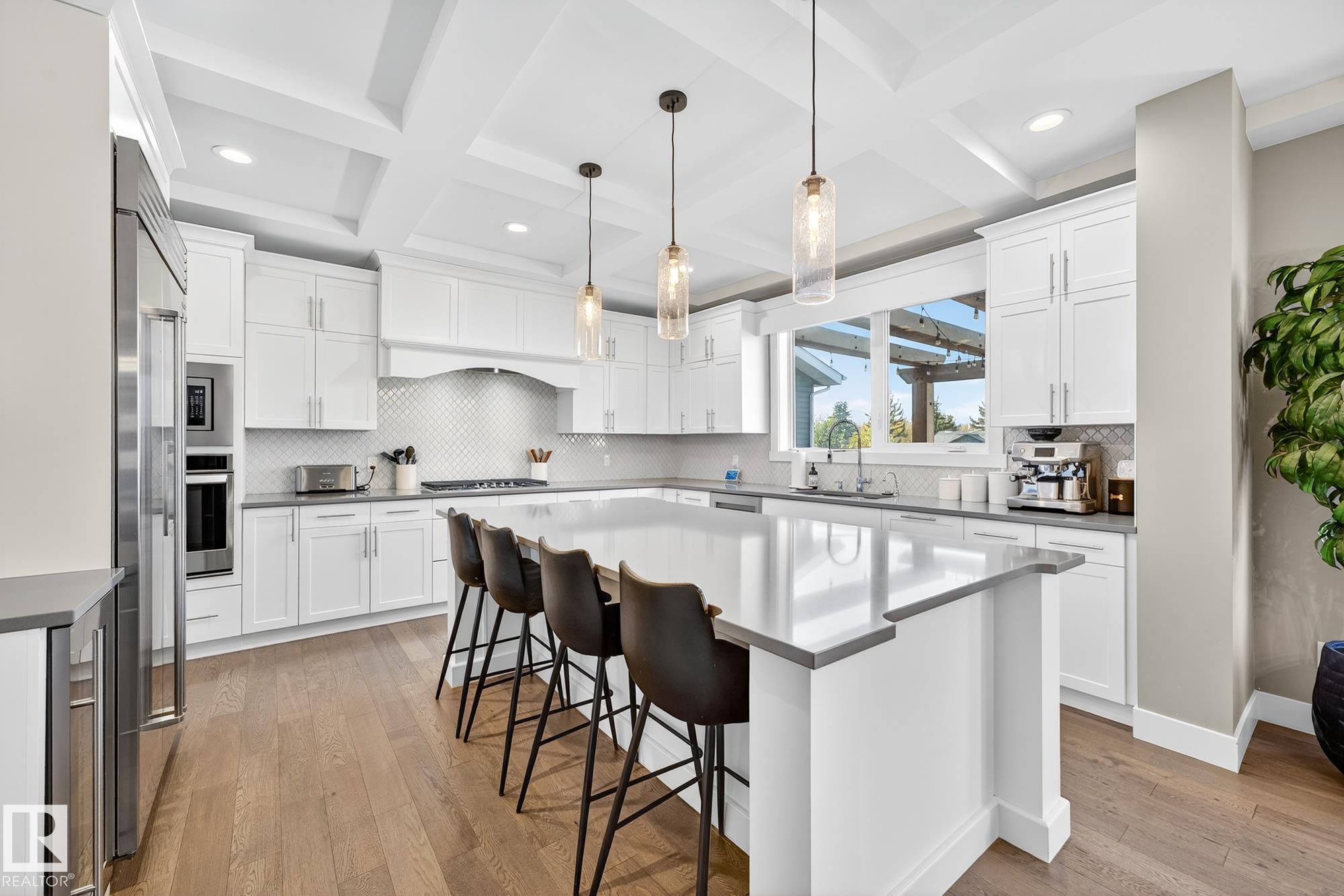No expenses spared in this EXCEPTIONAL property!!! The open-concept main floor offers a spacious living room with gas fireplace, dining nook, incredible HIGH-END KITCHEN, mud room and half bath. The kitchen offers a new Sub-Zero fridge, walk-in pantry, ample custom cabinetry and views of the STUNNING BACKYARD. The backyard is an OASIS complete with massive composite deck with pergola, built-in bar & bbq, hot tub, stone fire pit and artificial turf! Total entertainers dream, backing on to green space! Upstairs you will find the stylish primary retreat equipped with work station, 5-piece spa ensuite and large walk-in closet. Upstairs also offers family room, 2 more bedrooms, 5-piece main bathroom and laundry room. Basement is professionally developed with sound-proofing and offers additional family room, 3-piece bath and 4th bedroom/flex room with Murphy bed! Don't miss the heated triple garage with epoxy floors. Shows 10/10!!!