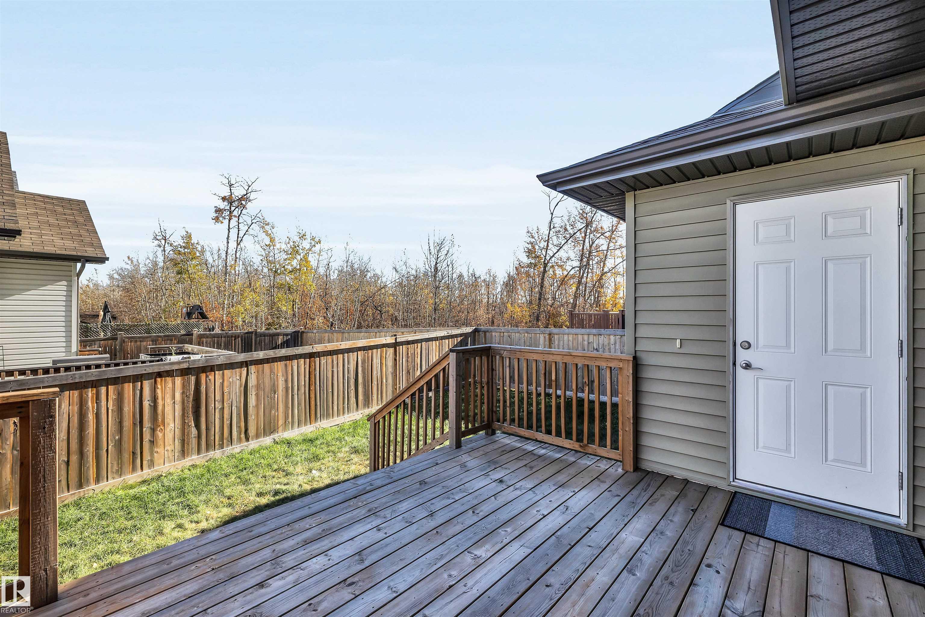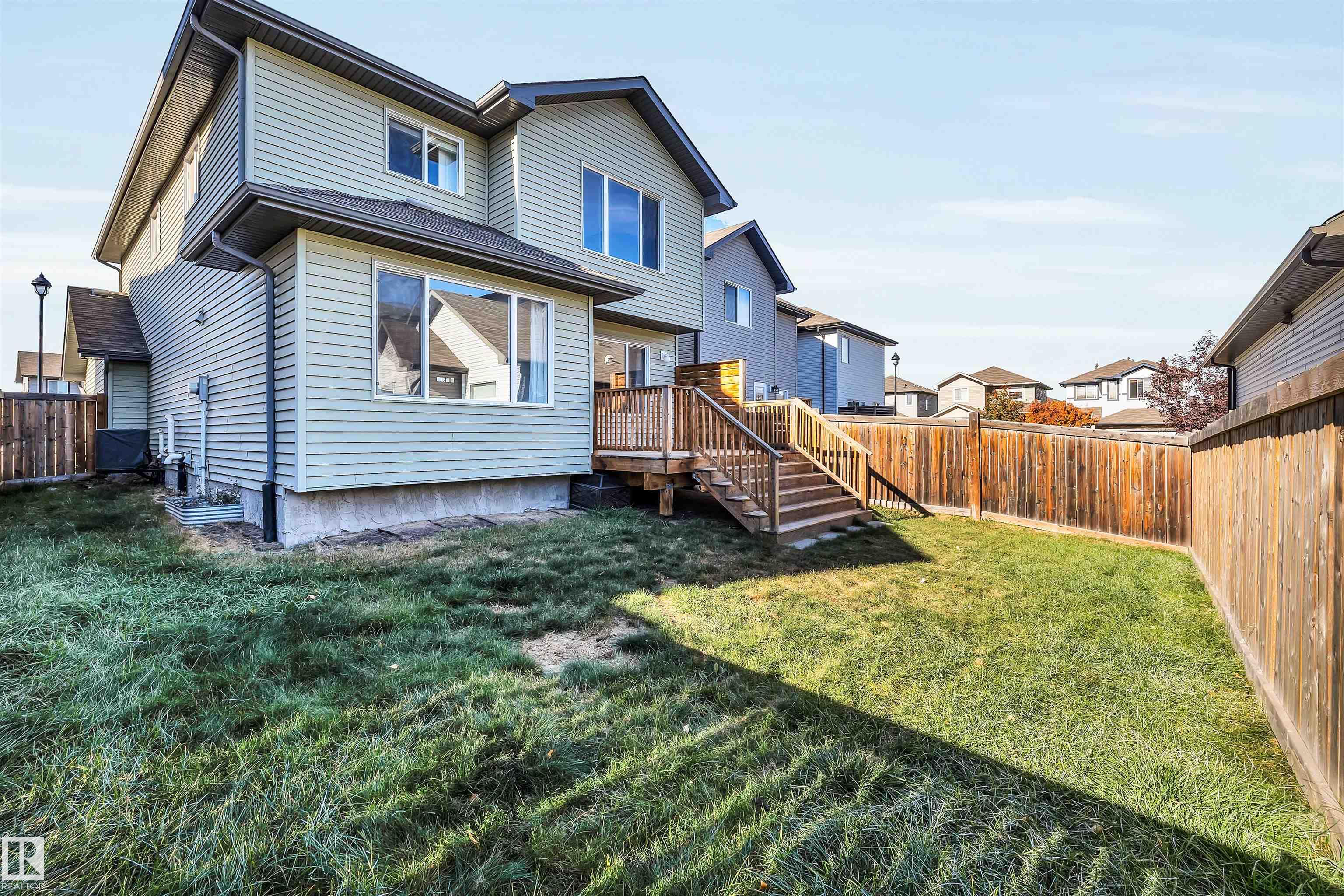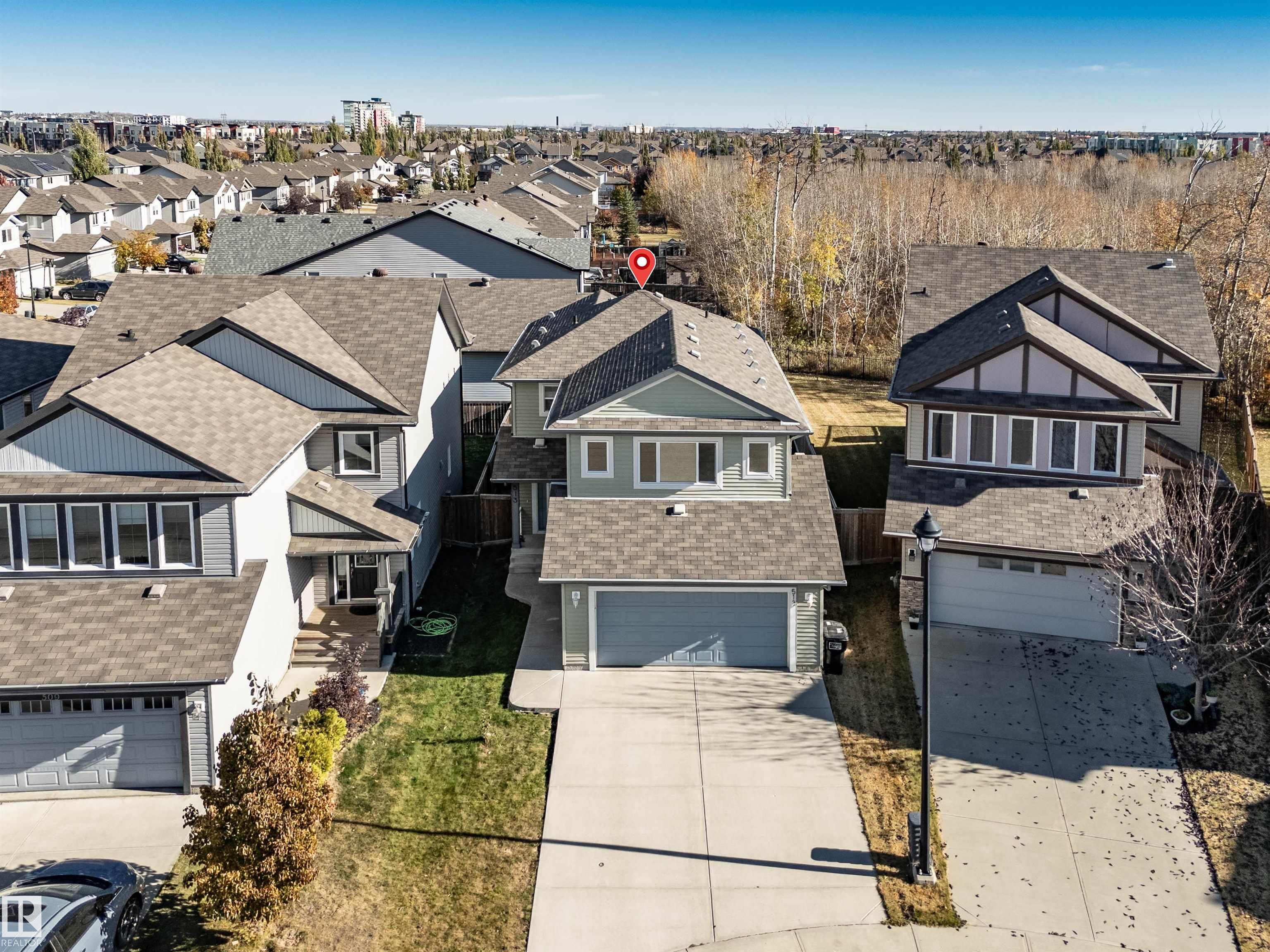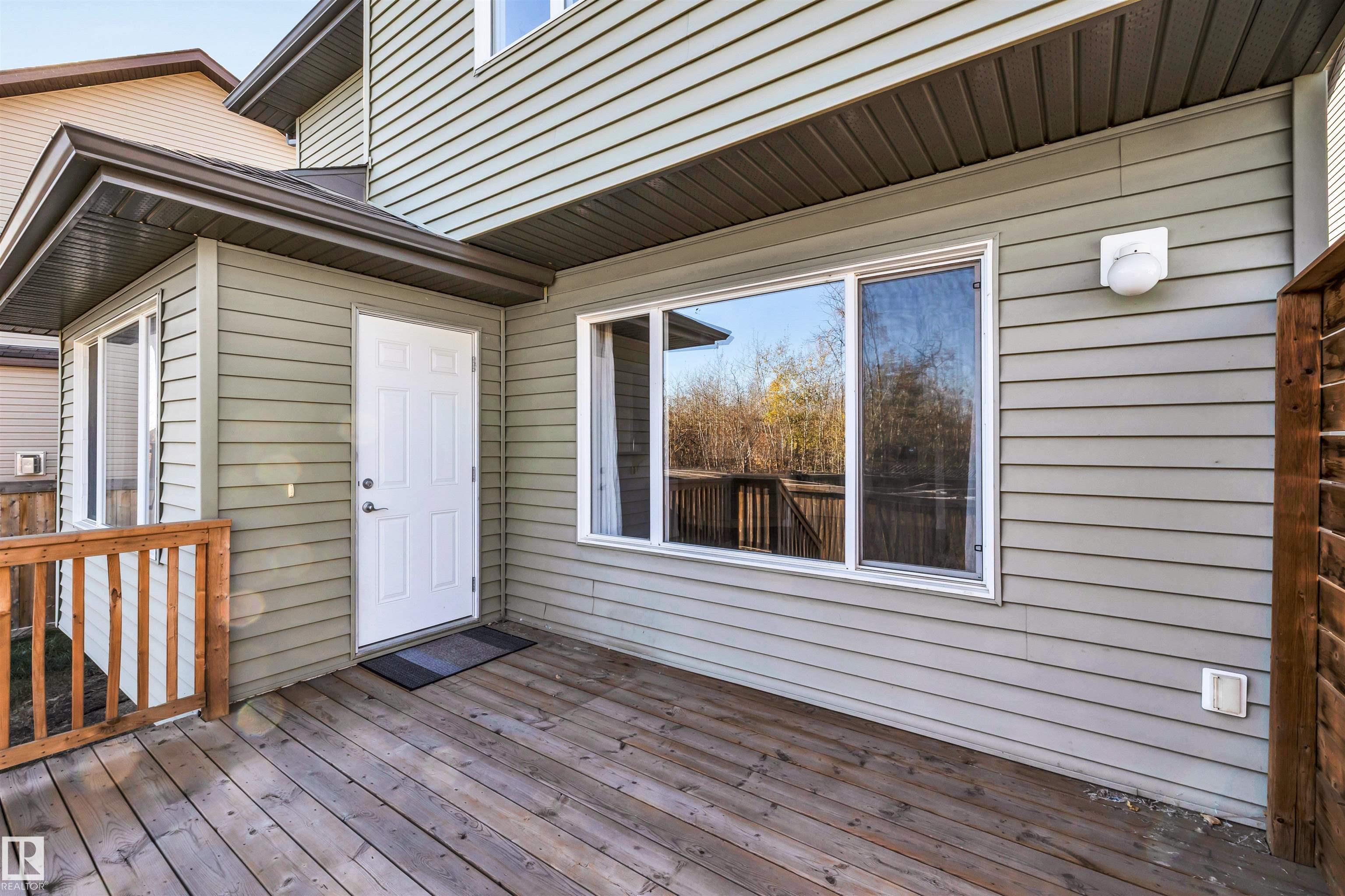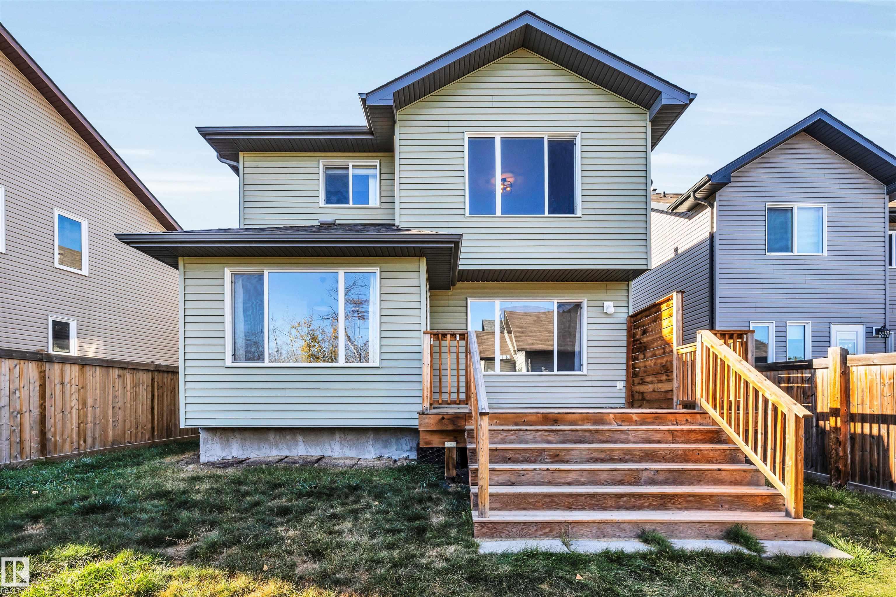 Nestled on a quiet cul-de-sac in the desirable Langdale community of Windermere, this beautifully maintained 3-bedroom, 2.5-bathroom 2-storey home with a double attached garage offers the perfect mix of comfort, privacy, and family living. The main floor features an inviting open-concept layout with a bright eat-in kitchen showcasing well-kept cabinetry, a corner pantry, and a raised dining bar. The cozy living room and dining area boast large windows that flood the space with natural light. The large deck with fully fenced backyard backing onto a beautiful tree view, offering a sense of calm and privacy. A convenient powder room and a laundry room with garage access complete the main level. Upstairs, you'll find a bright family room with soaring ceilings and a large window, perfect for family gatherings or a home office. The generous primary suite includes a walk-in closet and a private 4-piece ensuite. Two additional bedrooms and another full 4-piece bath complete the upper level.