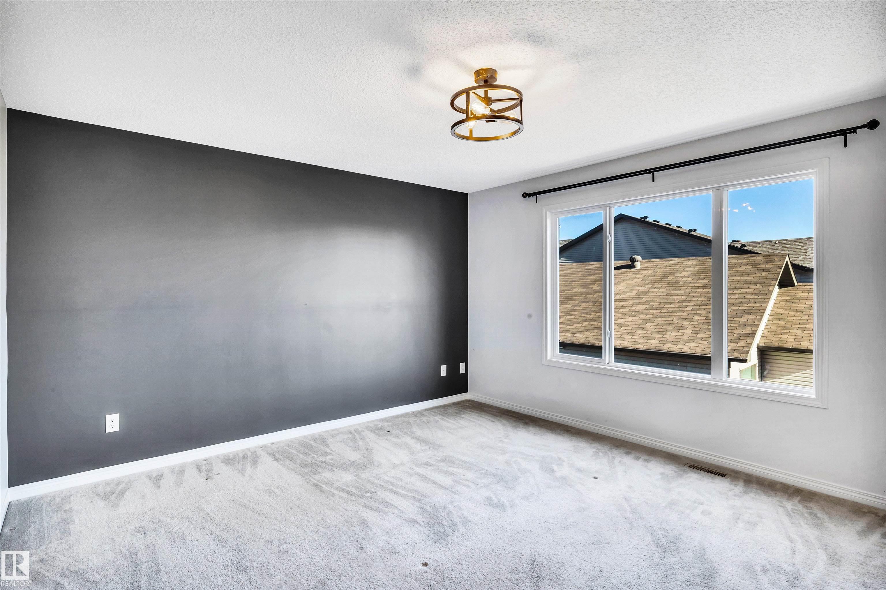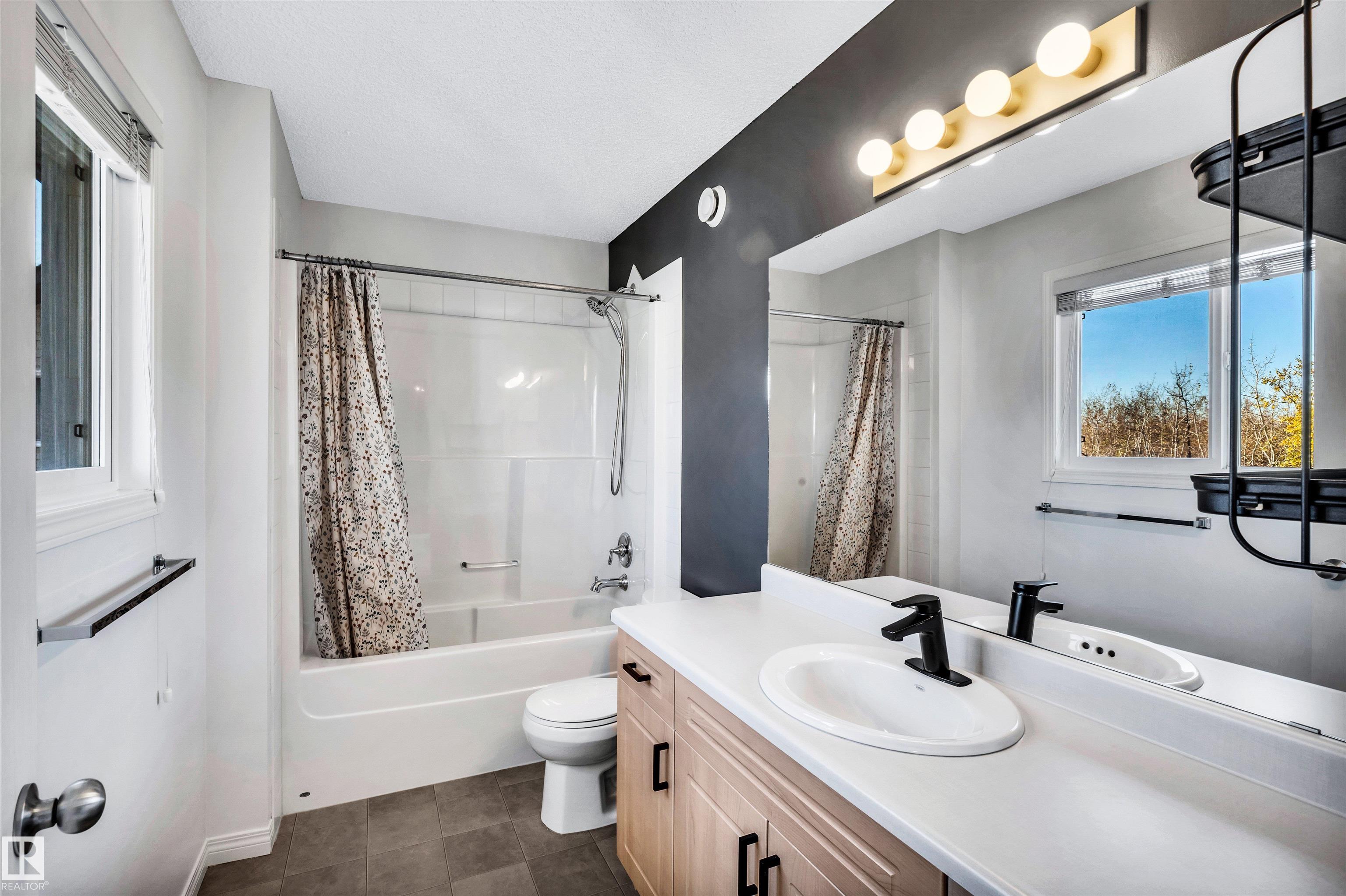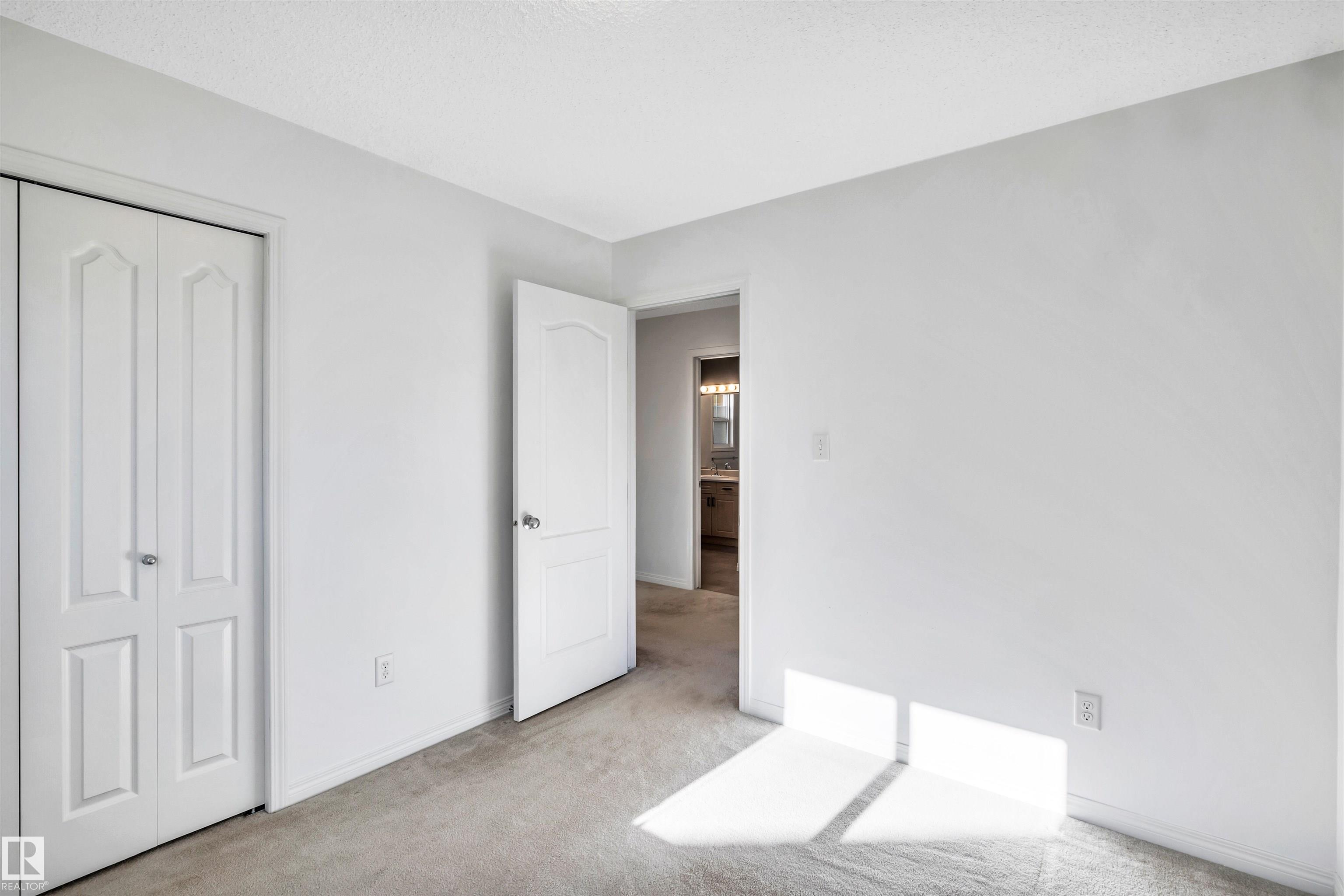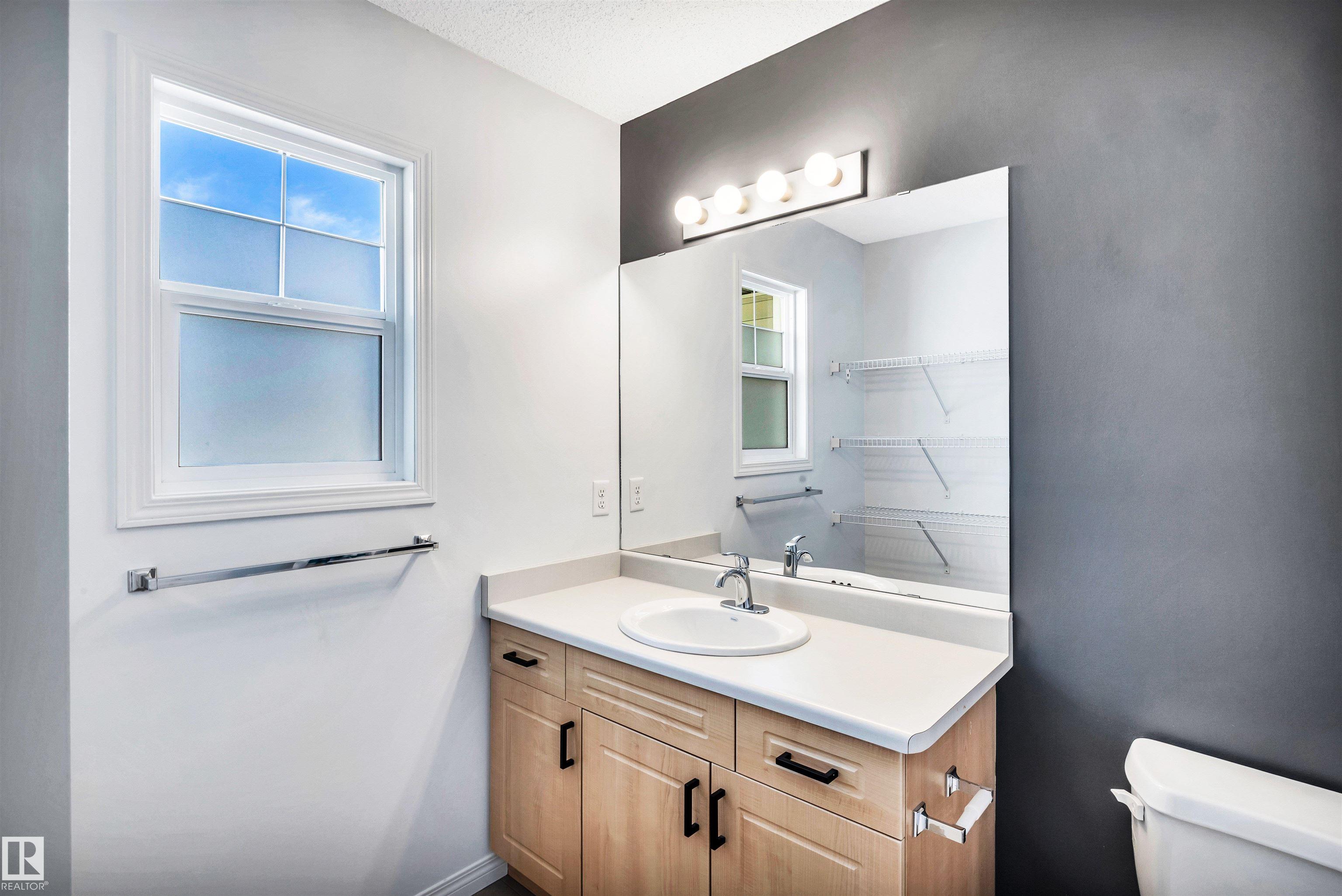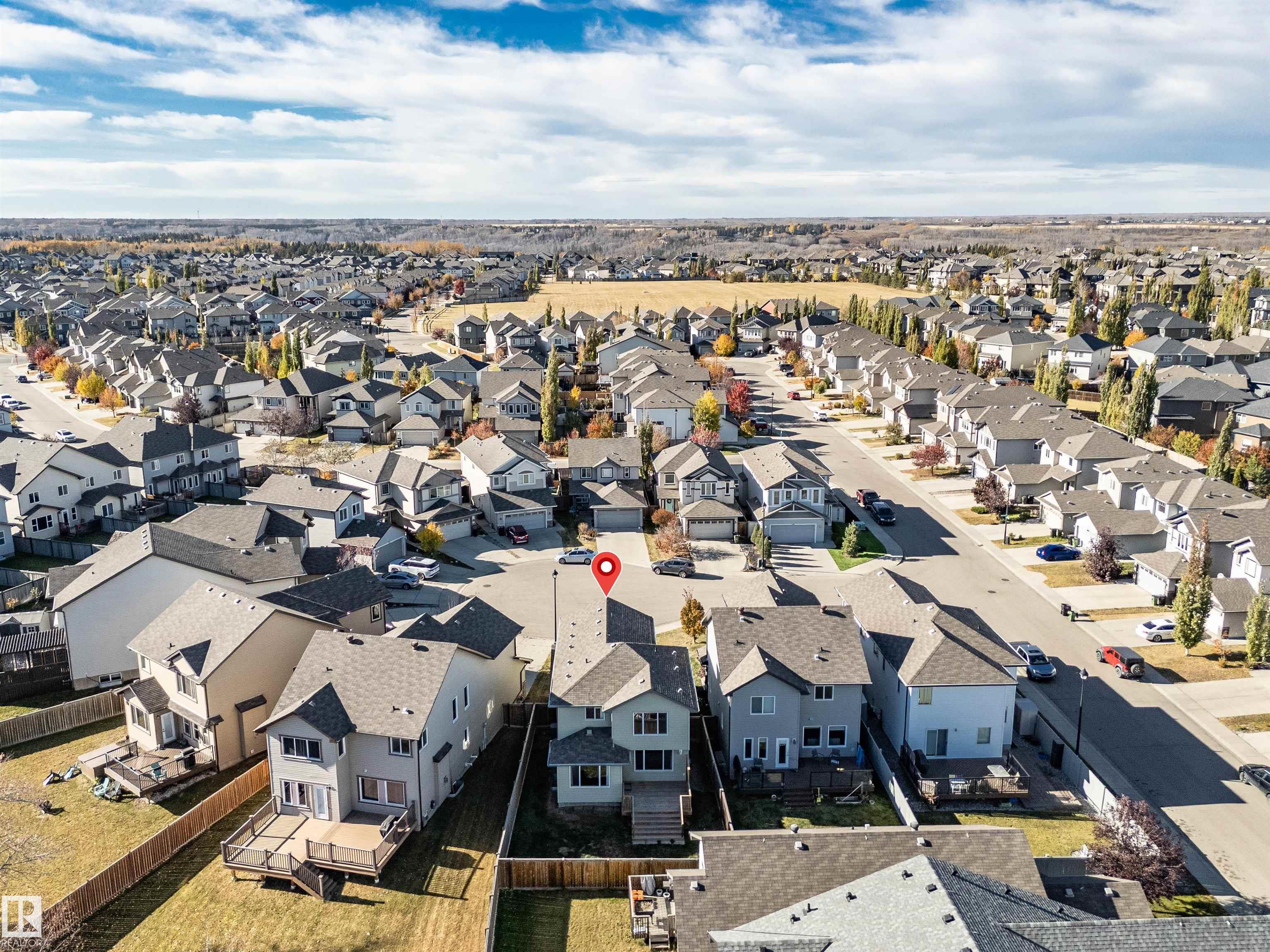 Nestled on a quiet cul-de-sac in the desirable Langdale community of Windermere, this beautifully maintained 3-bedroom, 2.5-bathroom 2-storey home with a double attached garage offers the perfect mix of comfort, privacy, and family living. The main floor features an inviting open-concept layout with a bright eat-in kitchen showcasing well-kept cabinetry, a corner pantry, and a raised dining bar. The cozy living room and dining area boast large windows that flood the space with natural light. The large deck with fully fenced backyard backing onto a beautiful tree view, offering a sense of calm and privacy. A convenient powder room and a laundry room with garage access complete the main level. Upstairs, you'll find a bright family room with soaring ceilings and a large window, perfect for family gatherings or a home office. The generous primary suite includes a walk-in closet and a private 4-piece ensuite. Two additional bedrooms and another full 4-piece bath complete the upper level.