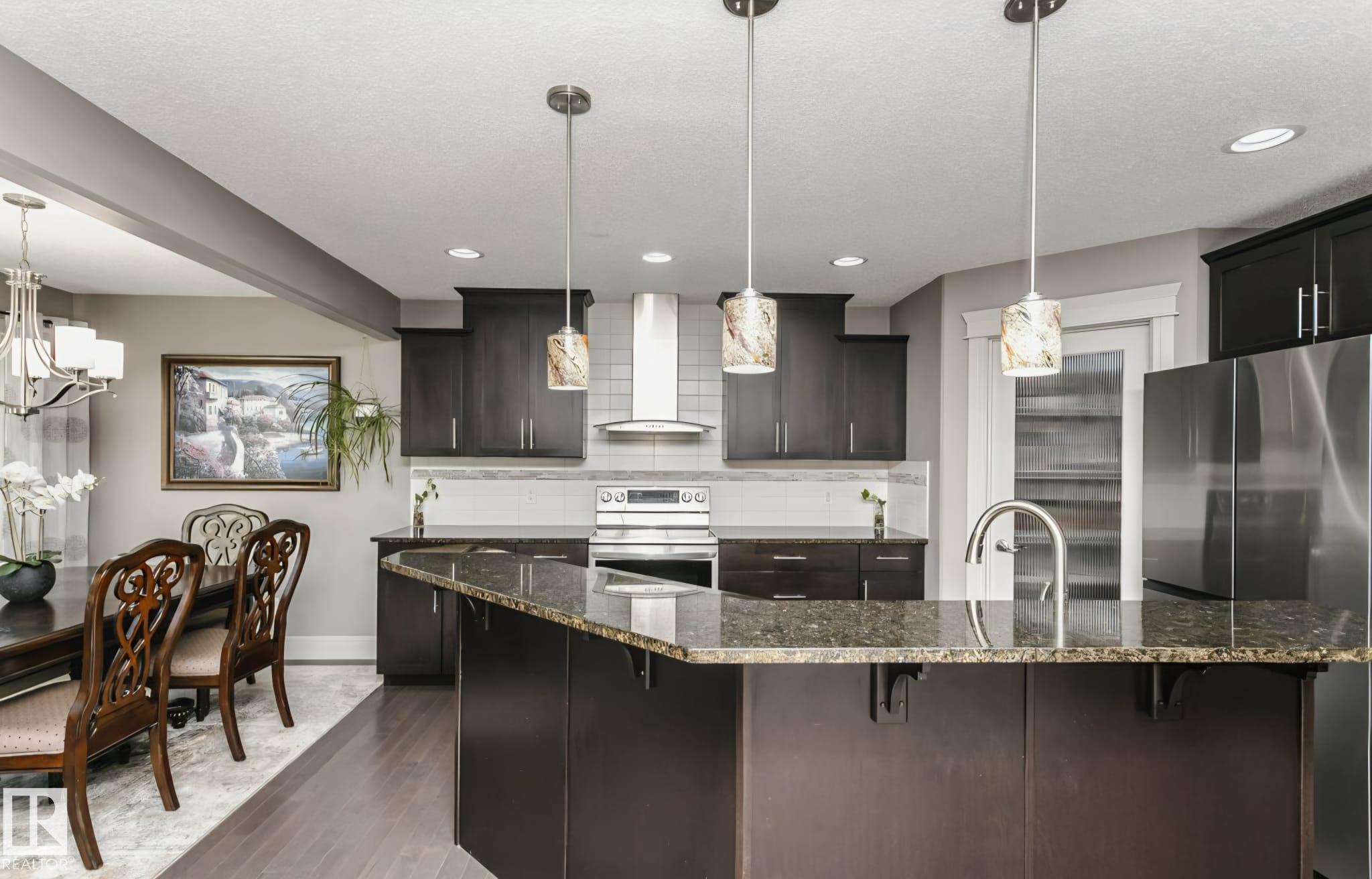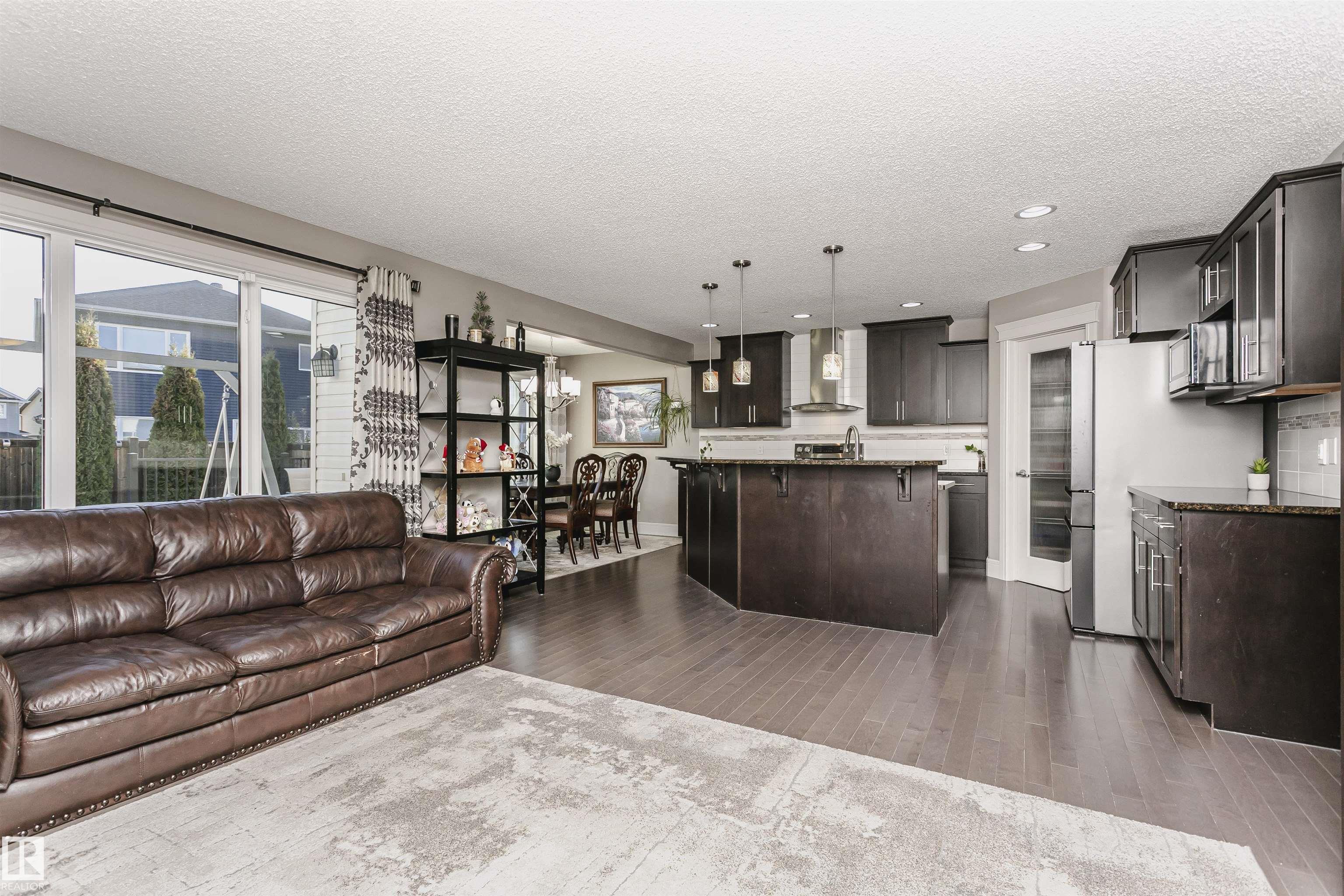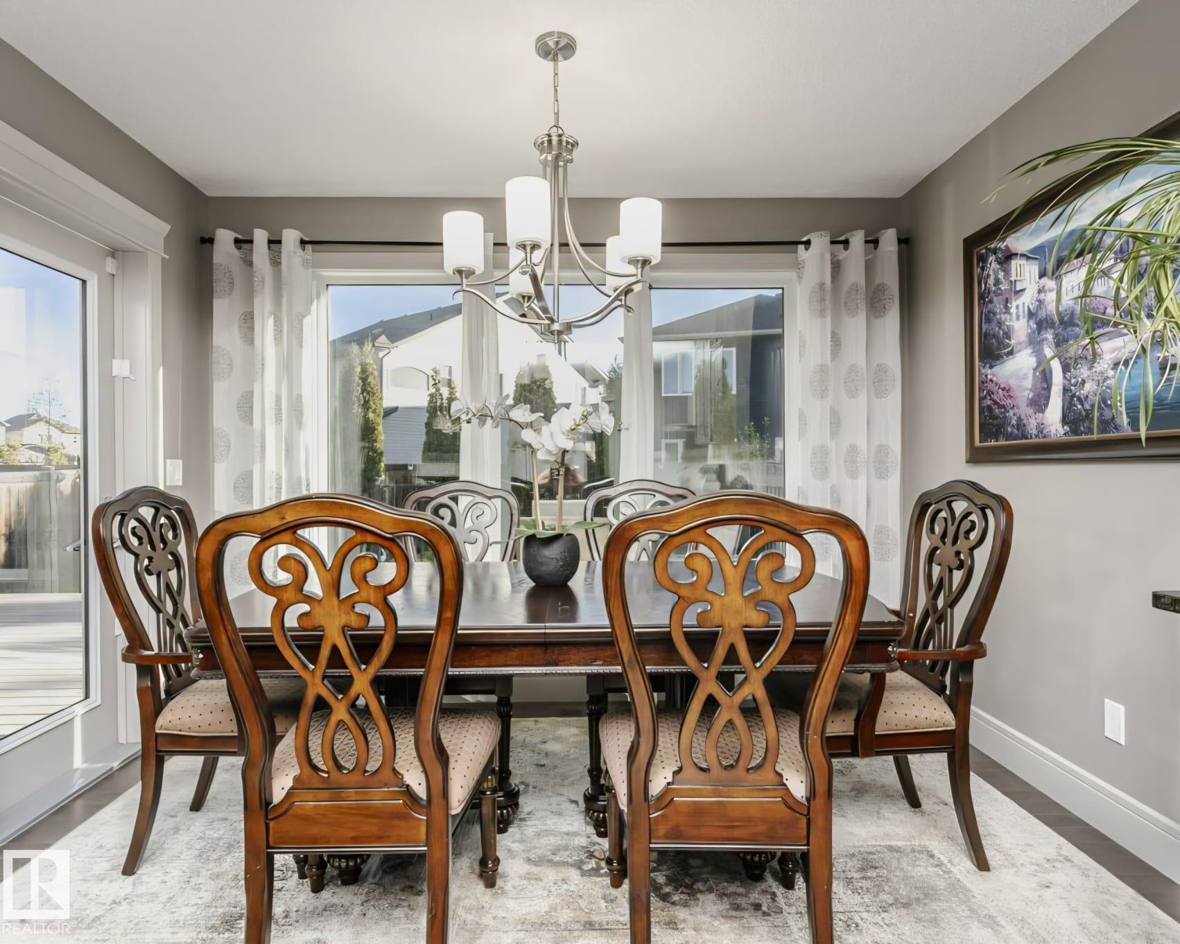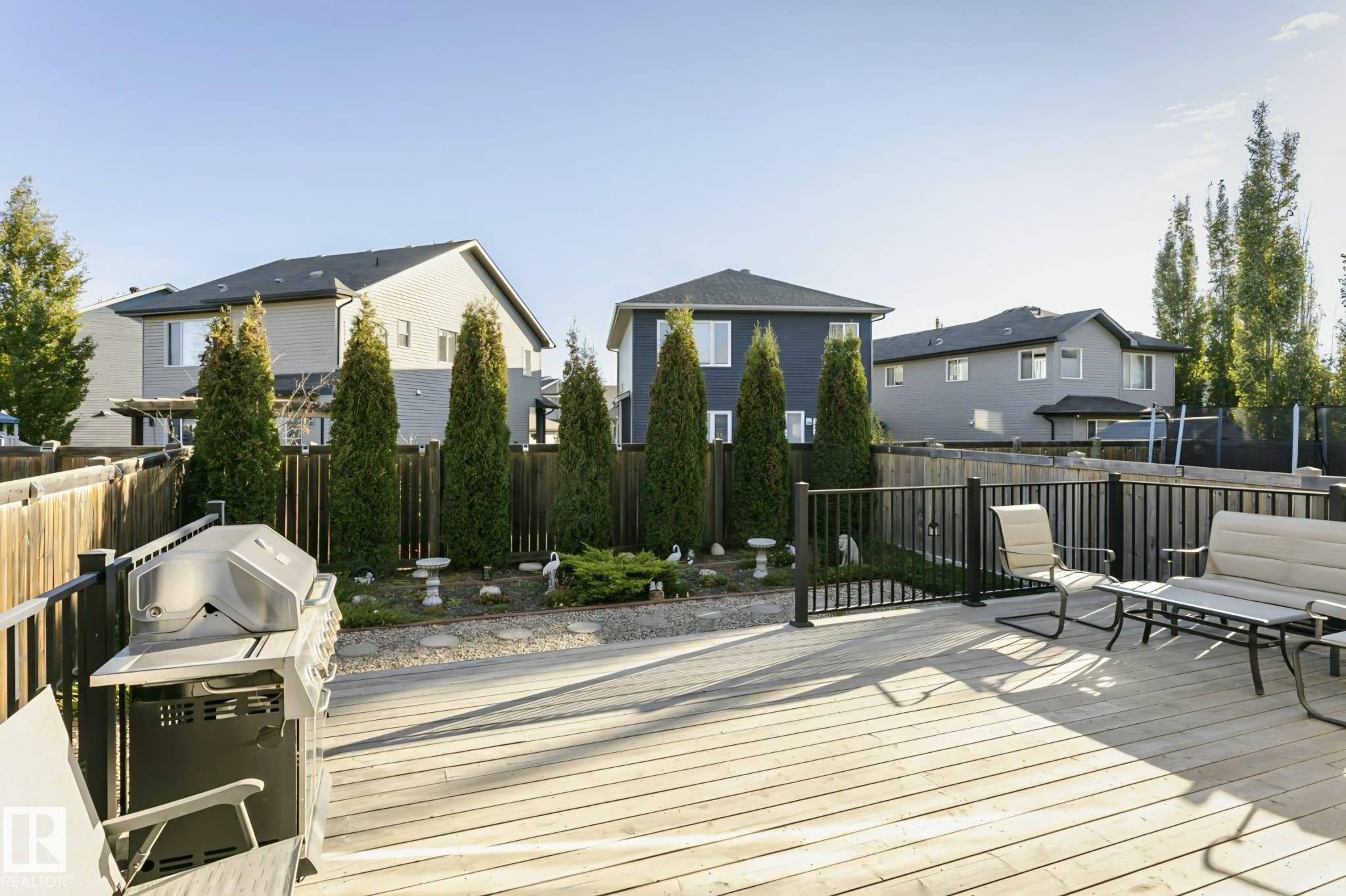 Stunning 2-Story in prestigious Windermere. This beautifully maintained 2,022 sq. ft. home offers timeless style and modern comfort in a family-friendly, quiet neighborhood. Low-maintenance landscaping with river rock and mature cedar trees adds privacy and curb appeal. Inside, a bright 2-story foyer with a maple staircase and wrought-iron spindles leads to an open-concept main floor filled with natural light, triple-pane windows, hardwood, and ceramic tile. The chef's kitchen features maple cabinets, granite counters, stainless steel appliances (including a new fridge), a large island, and a walk-through pantry. The living room centers around a cozy gas fireplace, while the dinette opens to a fully fenced backyard with a 26' wide deck--perfect for entertaining. Upstairs includes a spacious bonus room, three bedrooms, and a serene primary suite with walk-in closet and jetted tub ensuite. Enjoy a heated, drywalled double attached garage. Close to schools, shopping and all amenities + easy access to Henday.