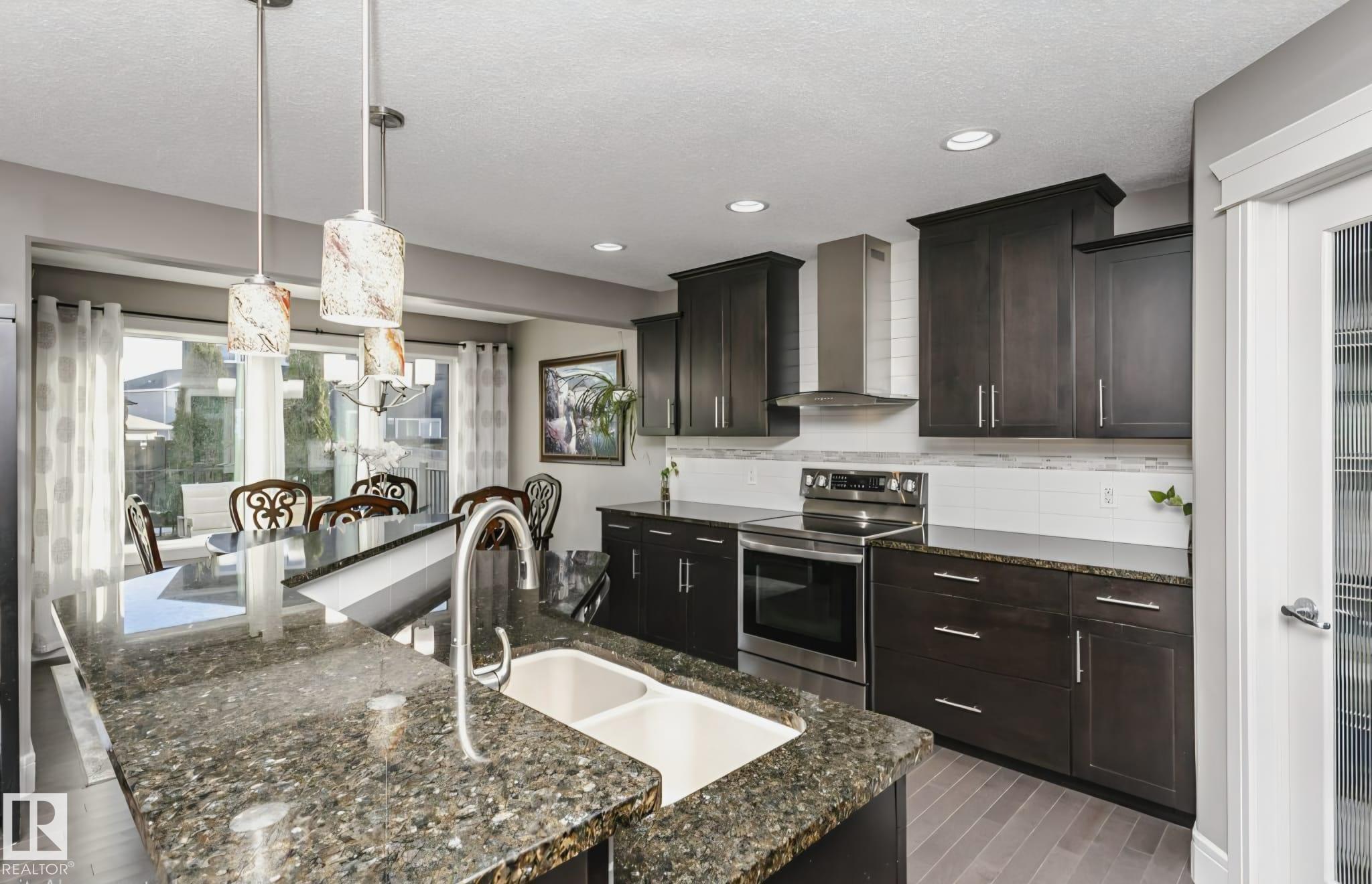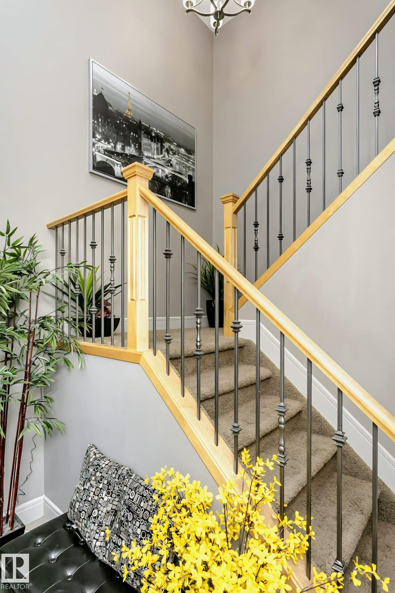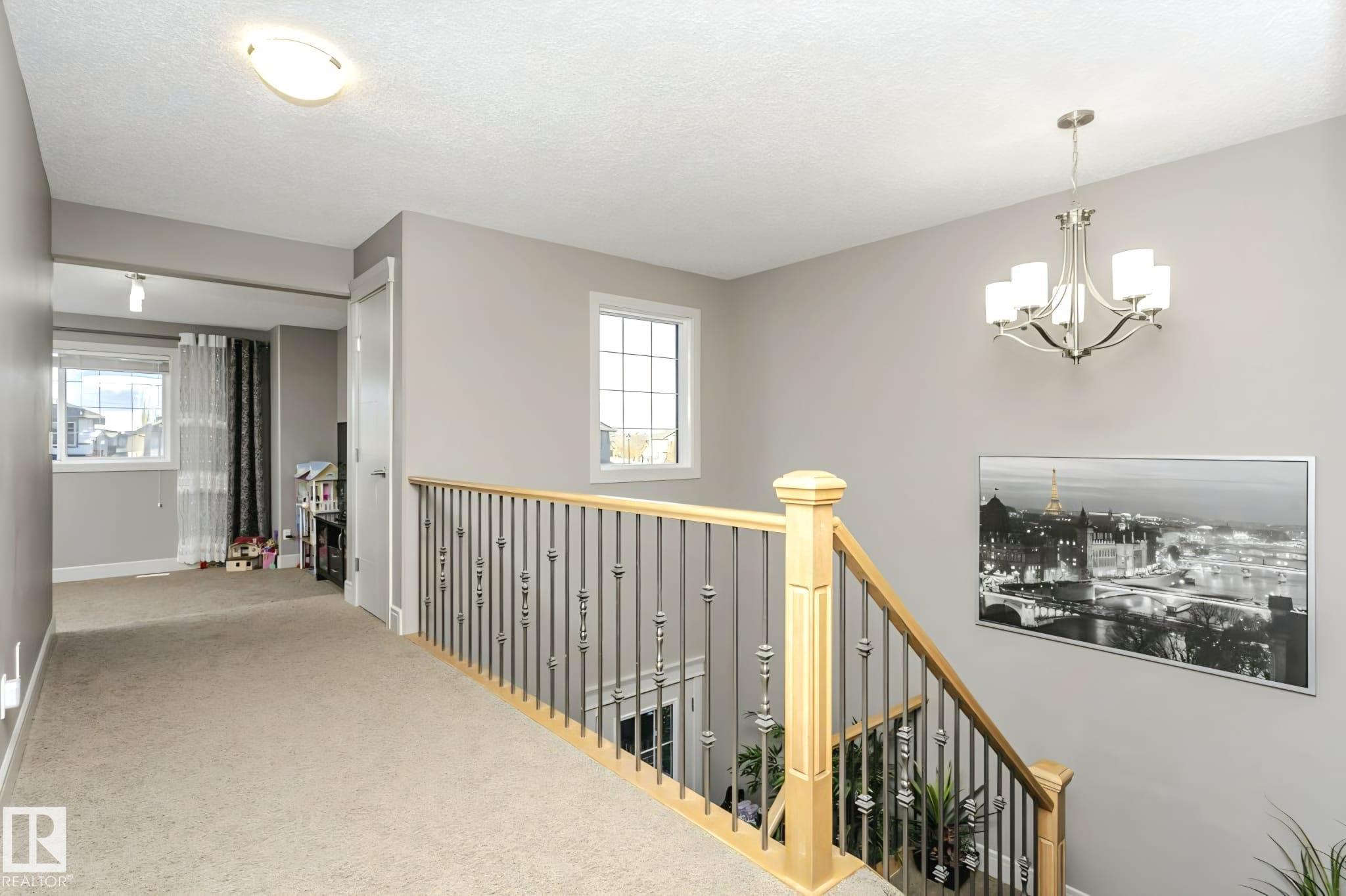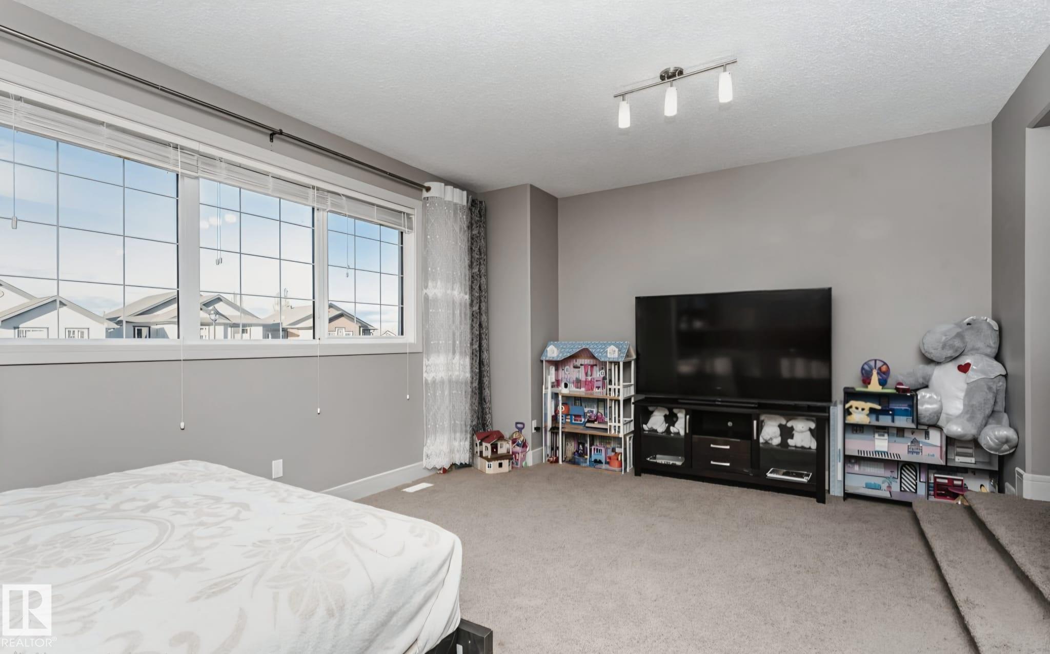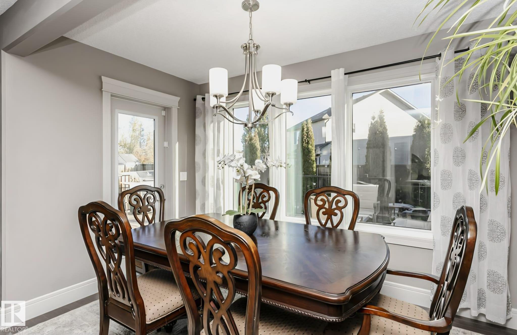 Stunning 2-Story in prestigious Windermere. This beautifully maintained 2,022 sq. ft. home offers timeless style and modern comfort in a family-friendly, quiet neighborhood. Low-maintenance landscaping with river rock and mature cedar trees adds privacy and curb appeal. Inside, a bright 2-story foyer with a maple staircase and wrought-iron spindles leads to an open-concept main floor filled with natural light, triple-pane windows, hardwood, and ceramic tile. The chef's kitchen features maple cabinets, granite counters, stainless steel appliances (including a new fridge), a large island, and a walk-through pantry. The living room centers around a cozy gas fireplace, while the dinette opens to a fully fenced backyard with a 26' wide deck--perfect for entertaining. Upstairs includes a spacious bonus room, three bedrooms, and a serene primary suite with walk-in closet and jetted tub ensuite. Enjoy a heated, drywalled double attached garage. Close to schools, shopping and all amenities + easy access to Henday.