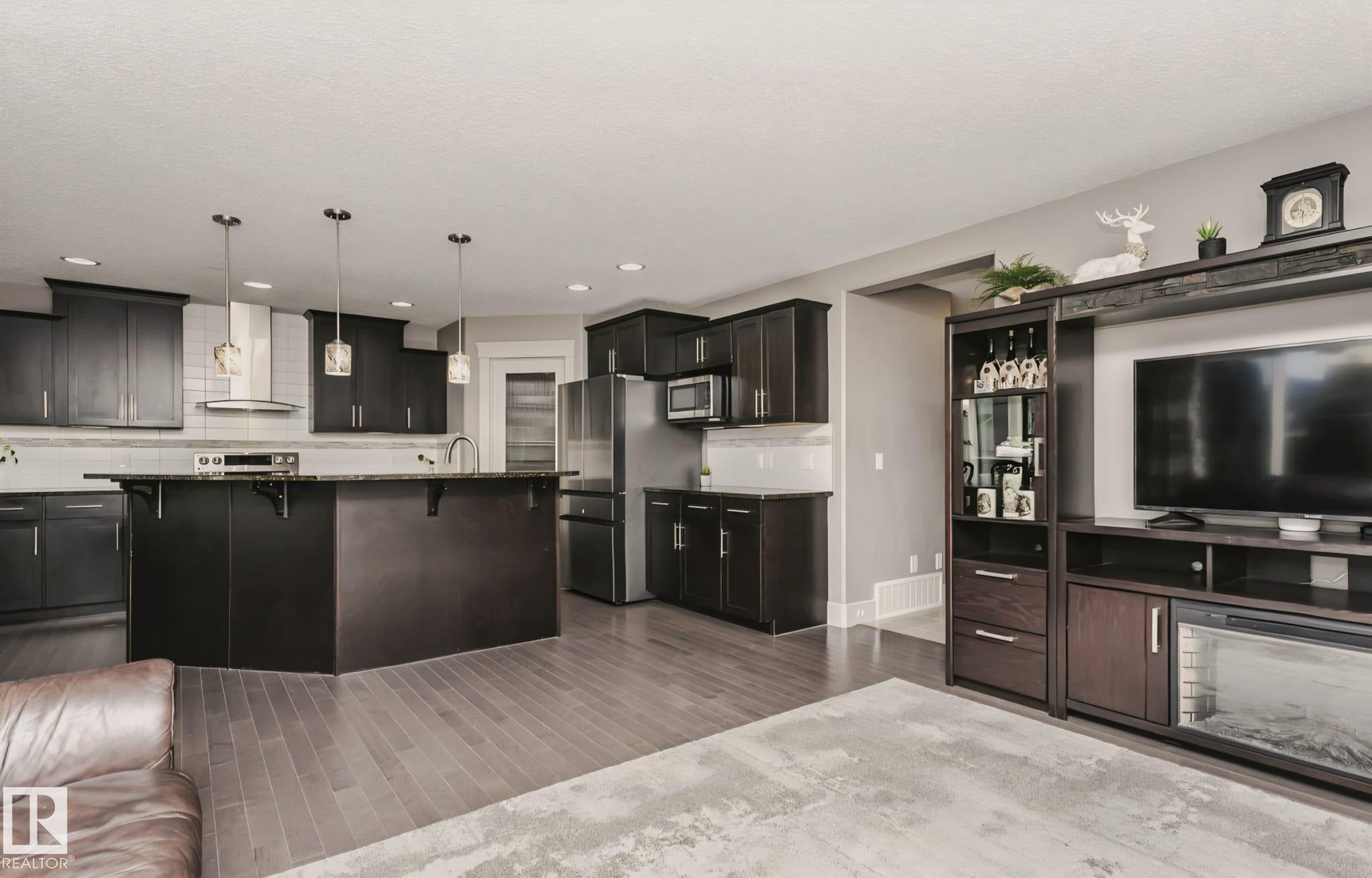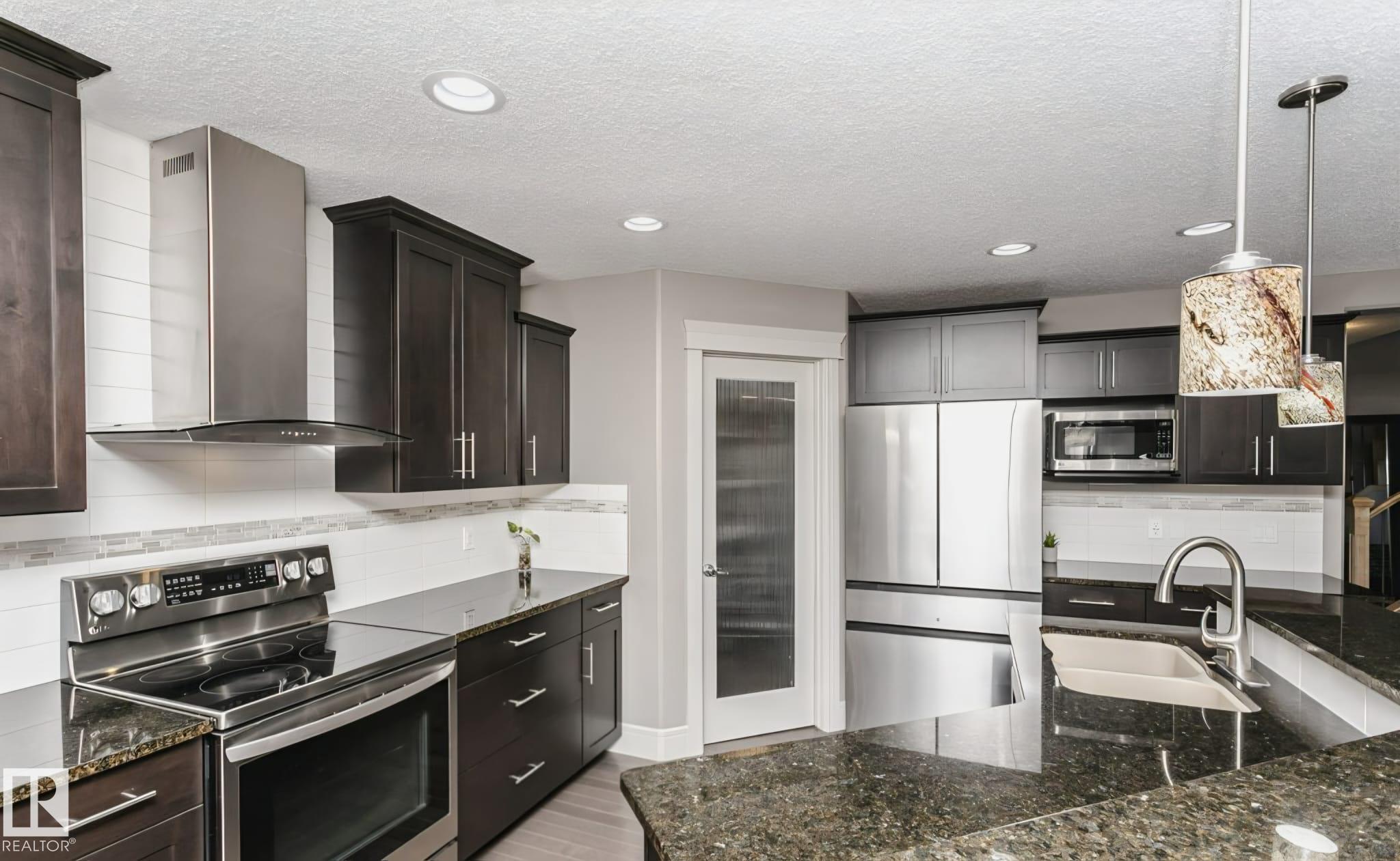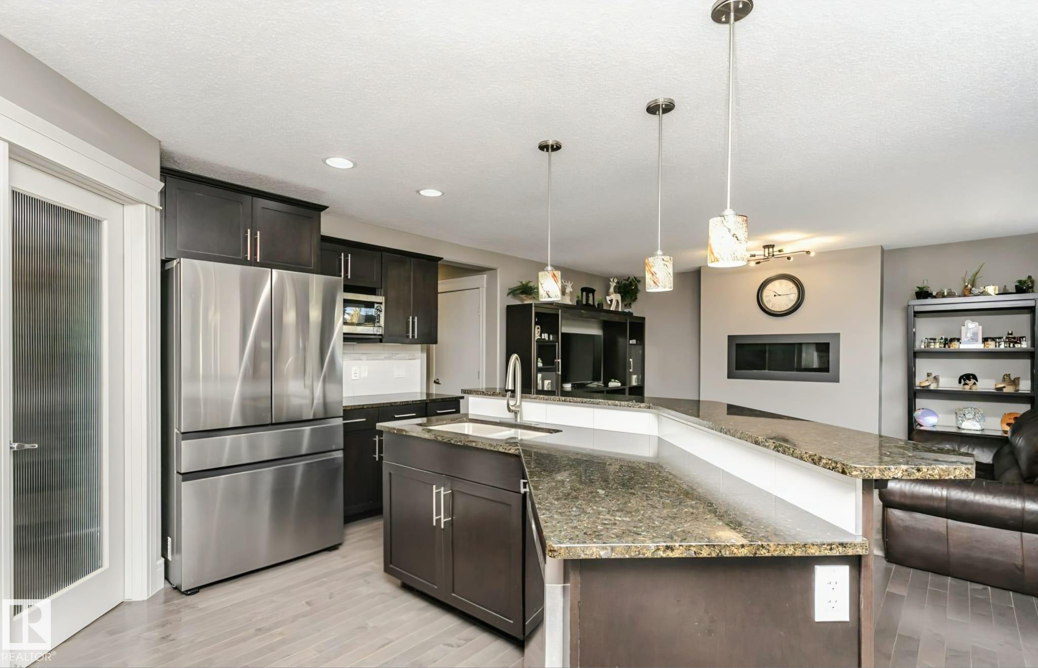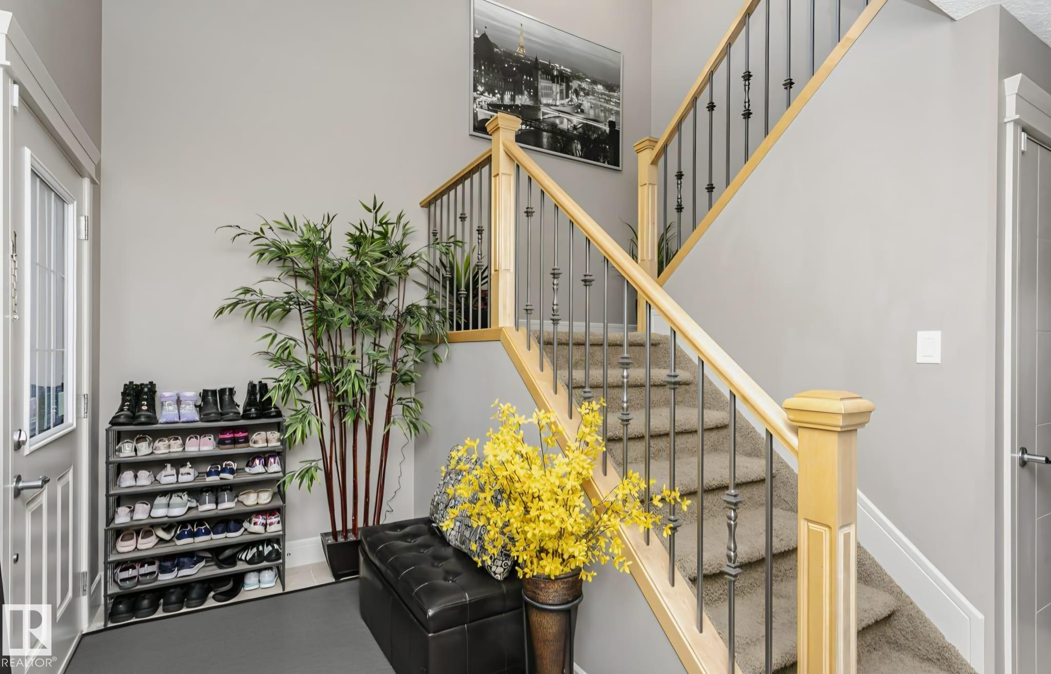 Stunning 2-Story in prestigious Windermere. This beautifully maintained 2,022 sq. ft. home offers timeless style and modern comfort in a family-friendly, quiet neighborhood. Low-maintenance landscaping with river rock and mature cedar trees adds privacy and curb appeal. Inside, a bright 2-story foyer with a maple staircase and wrought-iron spindles leads to an open-concept main floor filled with natural light, triple-pane windows, hardwood, and ceramic tile. The chef's kitchen features maple cabinets, granite counters, stainless steel appliances (including a new fridge), a large island, and a walk-through pantry. The living room centers around a cozy gas fireplace, while the dinette opens to a fully fenced backyard with a 26' wide deck--perfect for entertaining. Upstairs includes a spacious bonus room, three bedrooms, and a serene primary suite with walk-in closet and jetted tub ensuite. Enjoy a heated, drywalled double attached garage. Close to schools, shopping and all amenities + easy access to Henday.