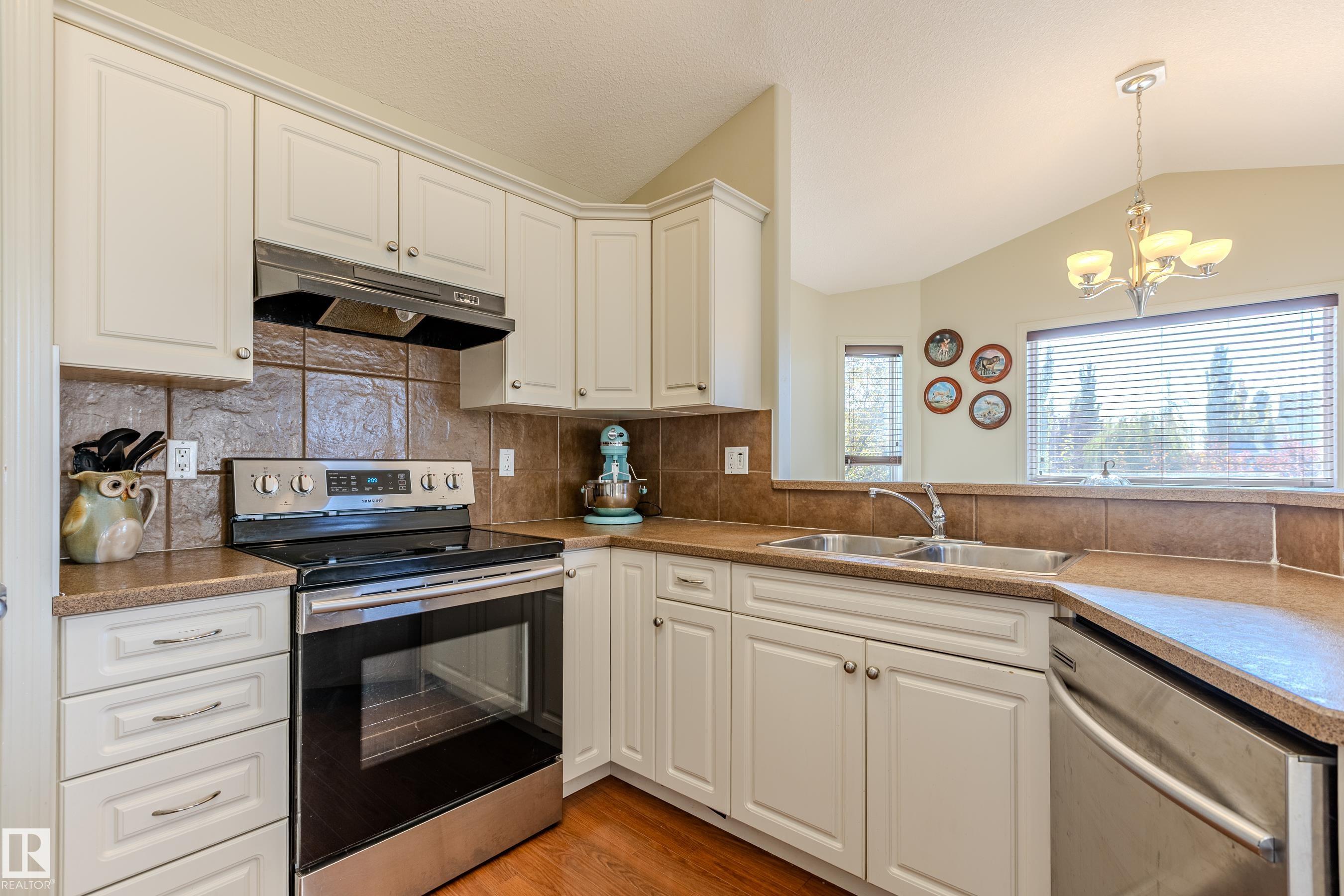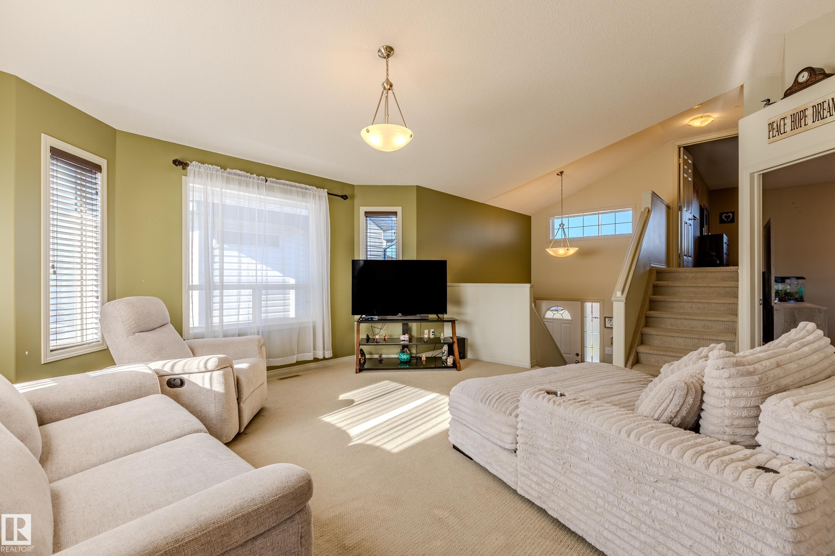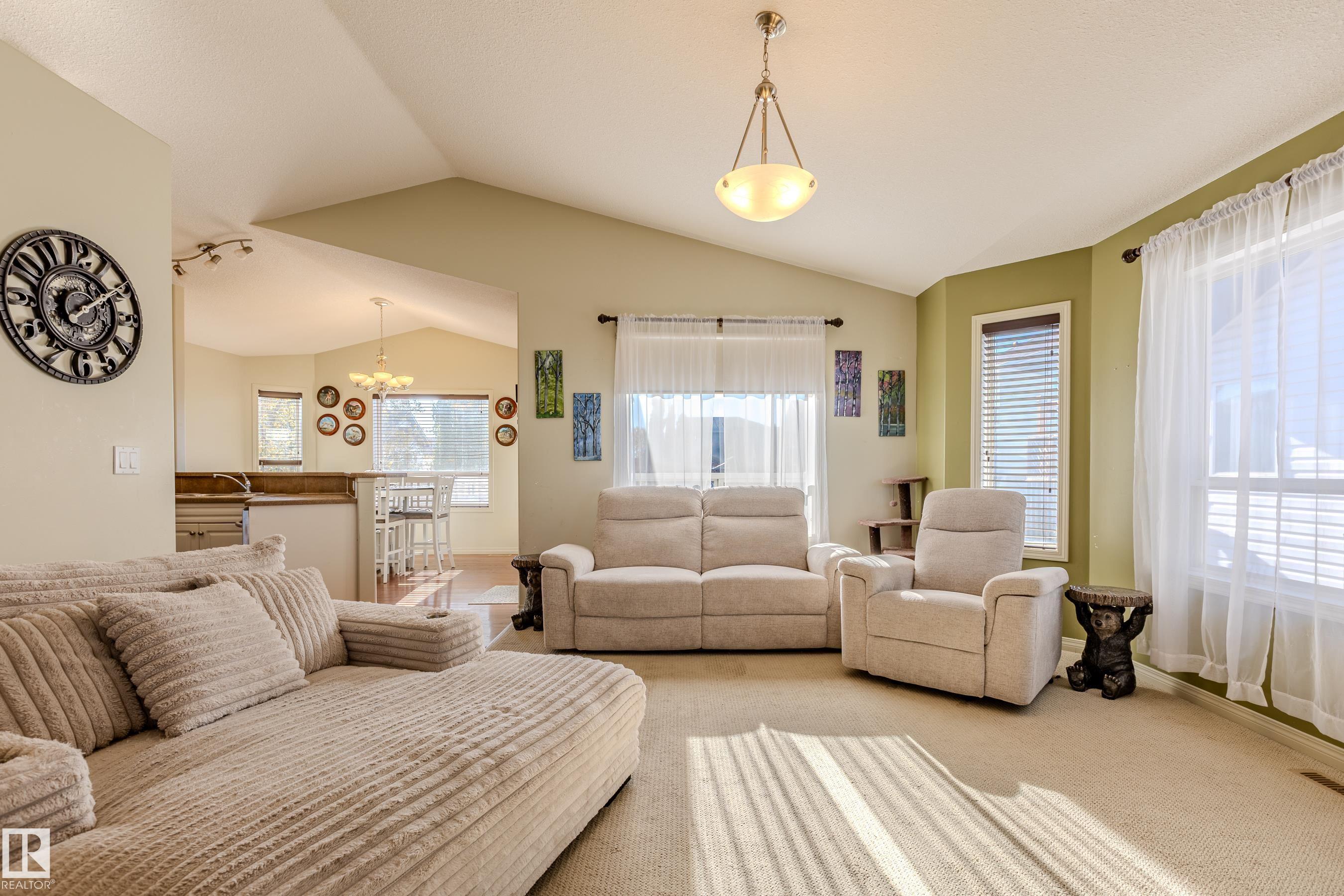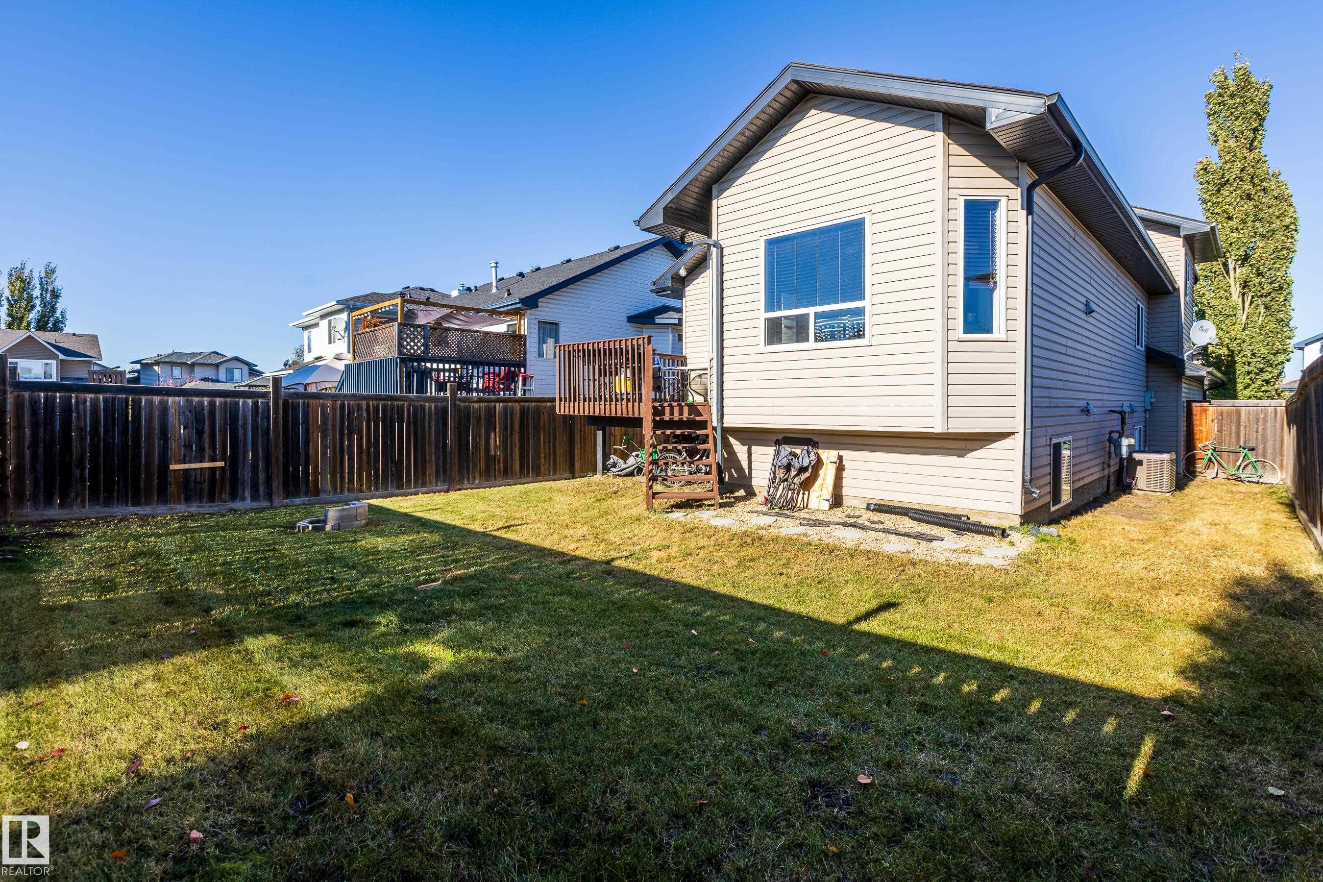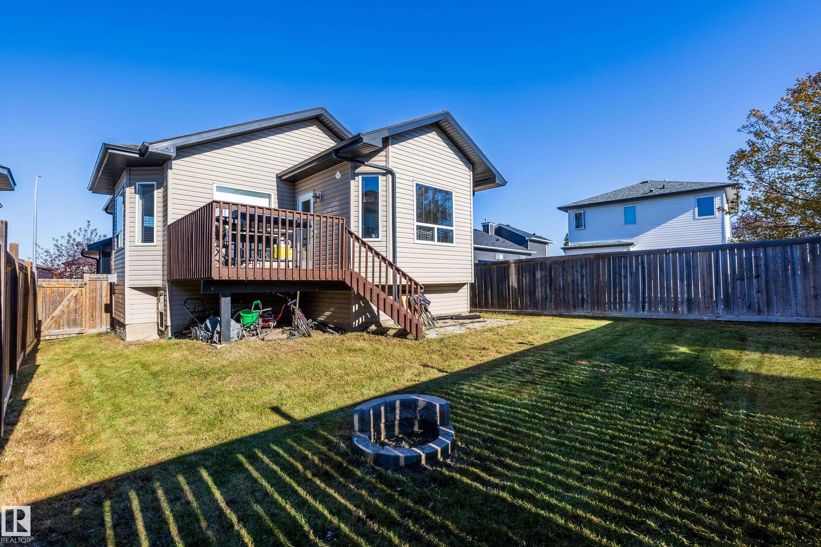 Welcome to this beautiful bi-level perfectly situated in a family-friendly neighborhood just steps from schools, playgrounds & scenic walking trails! Step inside to discover an inviting open-concept main floor featuring vaulted ceilings that create a bright & spacious feel. The kitchen flows seamlessly into the dining area from the living area. 4 piece bathroom & bedroom situated next to living area. The primary bedroom offers a private retreat complete with a walk-in closet & an ensuite featuring a soaker tub & walk-in shower. The fully finished basement is designed for comfort -- enjoy cozy family movie nights by the gas fireplace in the generous rec room. The lower level also includes two additional bedrooms & a half bath, providing plenty of space for family or guests. Additional highlights include Air-Conditioning & NEW fridge, washer & dryer. Fully fenced south facing backyard has deck & firepit. This home combines comfort, functionality & an unbeatable location with the whole family in mind.