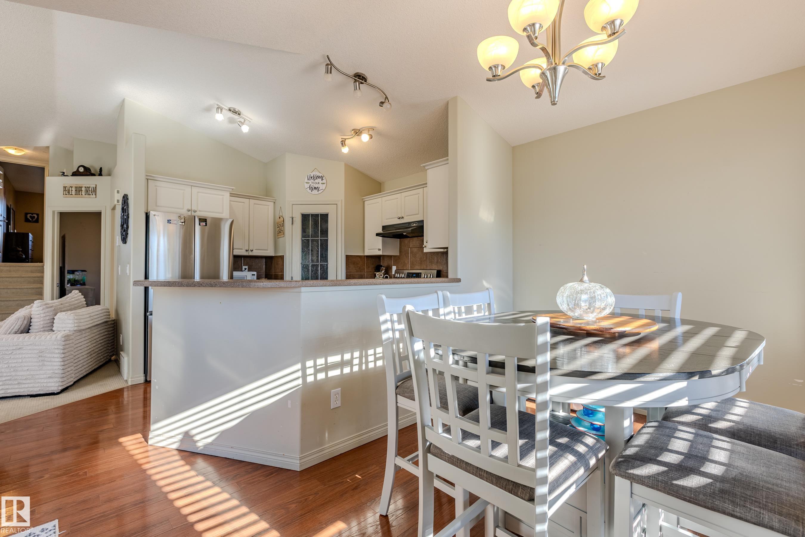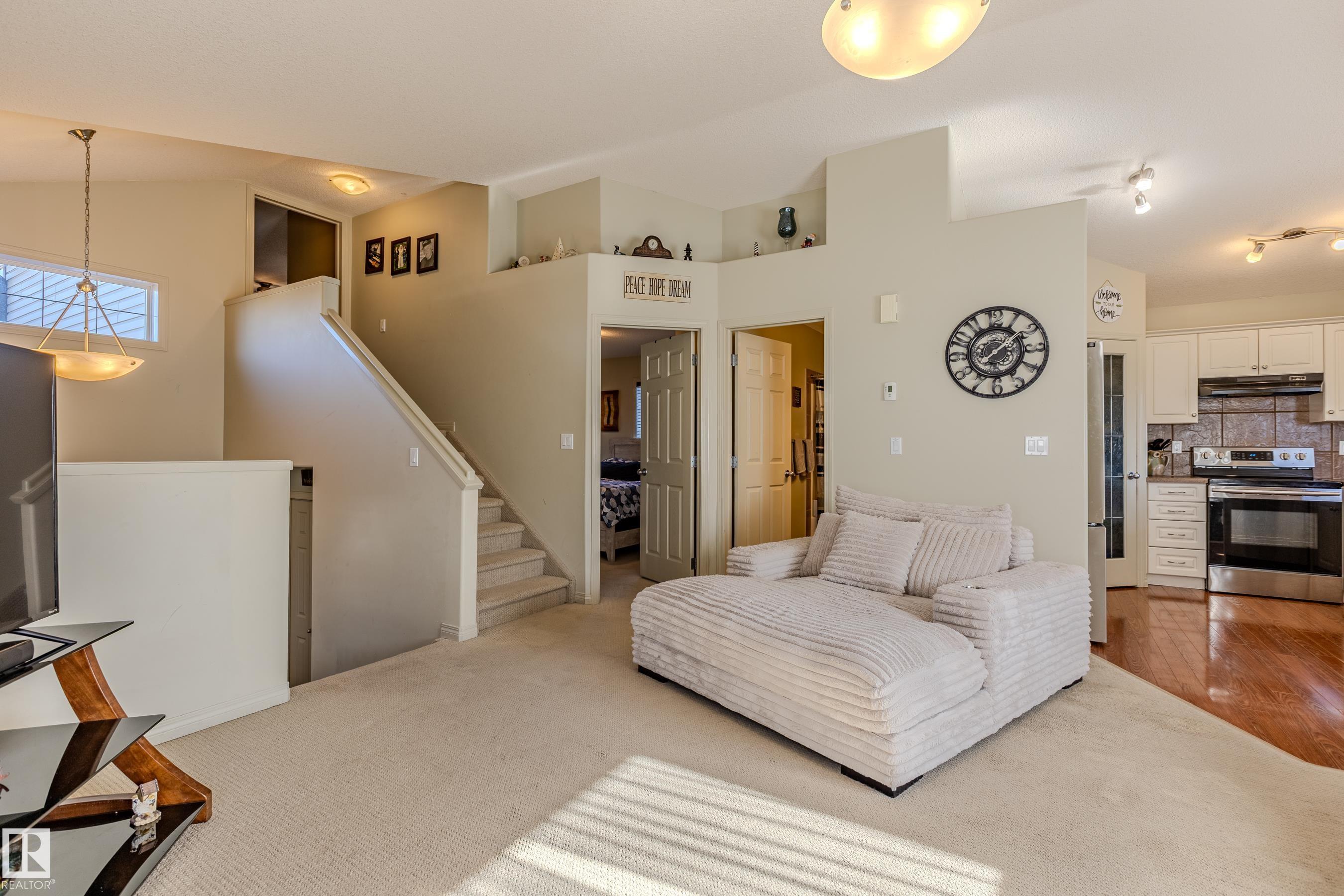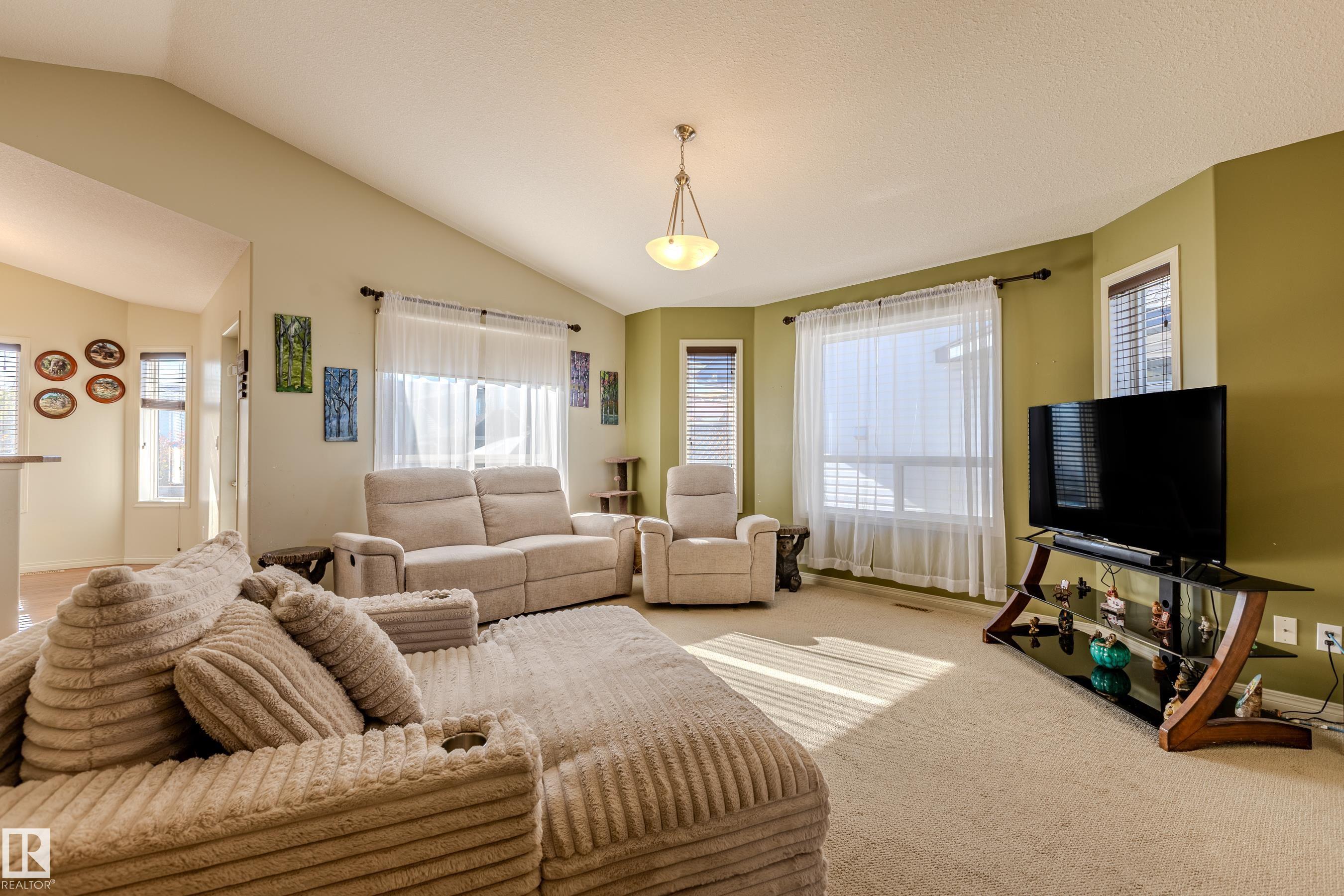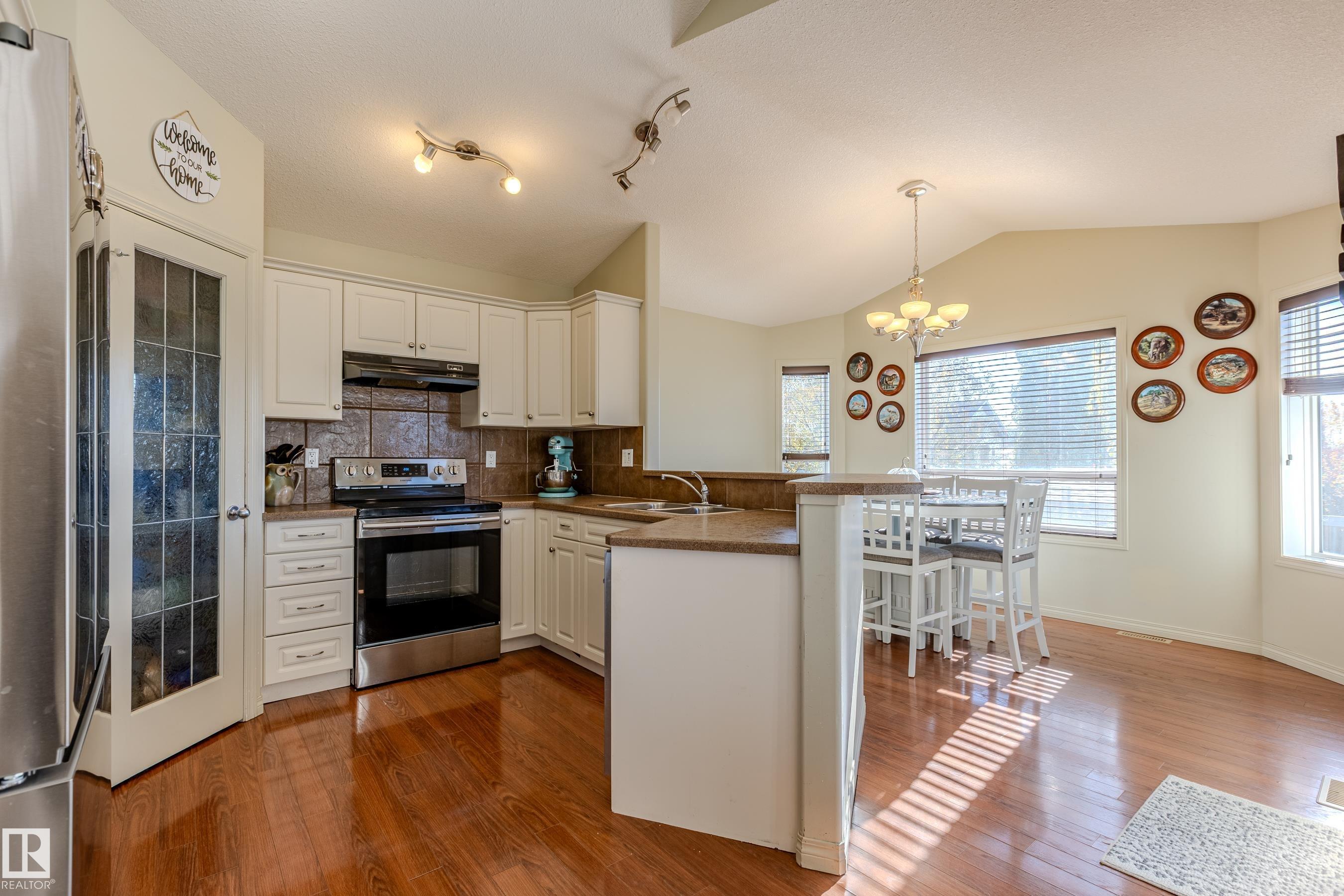 Welcome to this beautiful bi-level perfectly situated in a family-friendly neighborhood just steps from schools, playgrounds & scenic walking trails! Step inside to discover an inviting open-concept main floor featuring vaulted ceilings that create a bright & spacious feel. The kitchen flows seamlessly into the dining area from the living area. 4 piece bathroom & bedroom situated next to living area. The primary bedroom offers a private retreat complete with a walk-in closet & an ensuite featuring a soaker tub & walk-in shower. The fully finished basement is designed for comfort -- enjoy cozy family movie nights by the gas fireplace in the generous rec room. The lower level also includes two additional bedrooms & a half bath, providing plenty of space for family or guests. Additional highlights include Air-Conditioning & NEW fridge, washer & dryer. Fully fenced south facing backyard has deck & firepit. This home combines comfort, functionality & an unbeatable location with the whole family in mind.