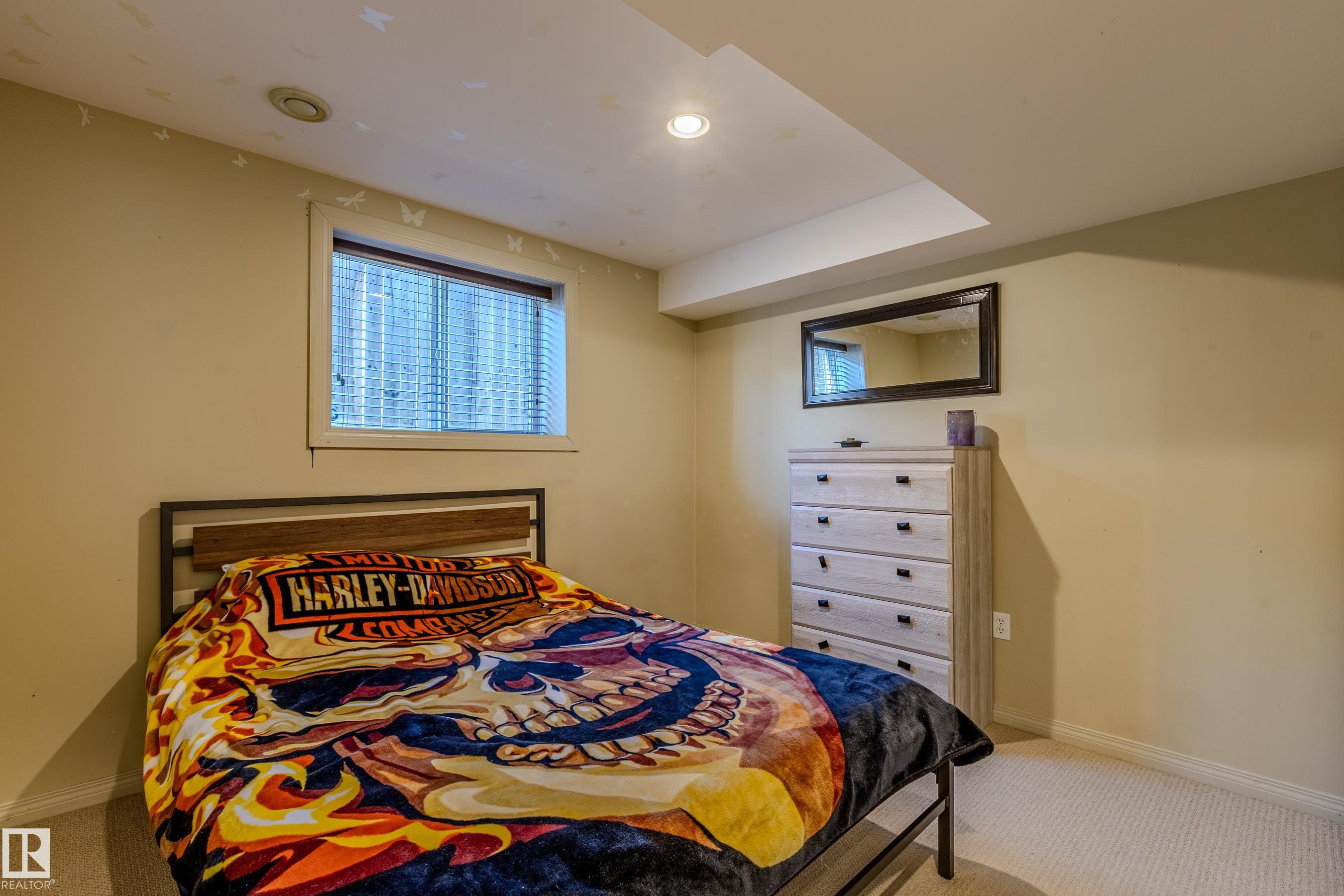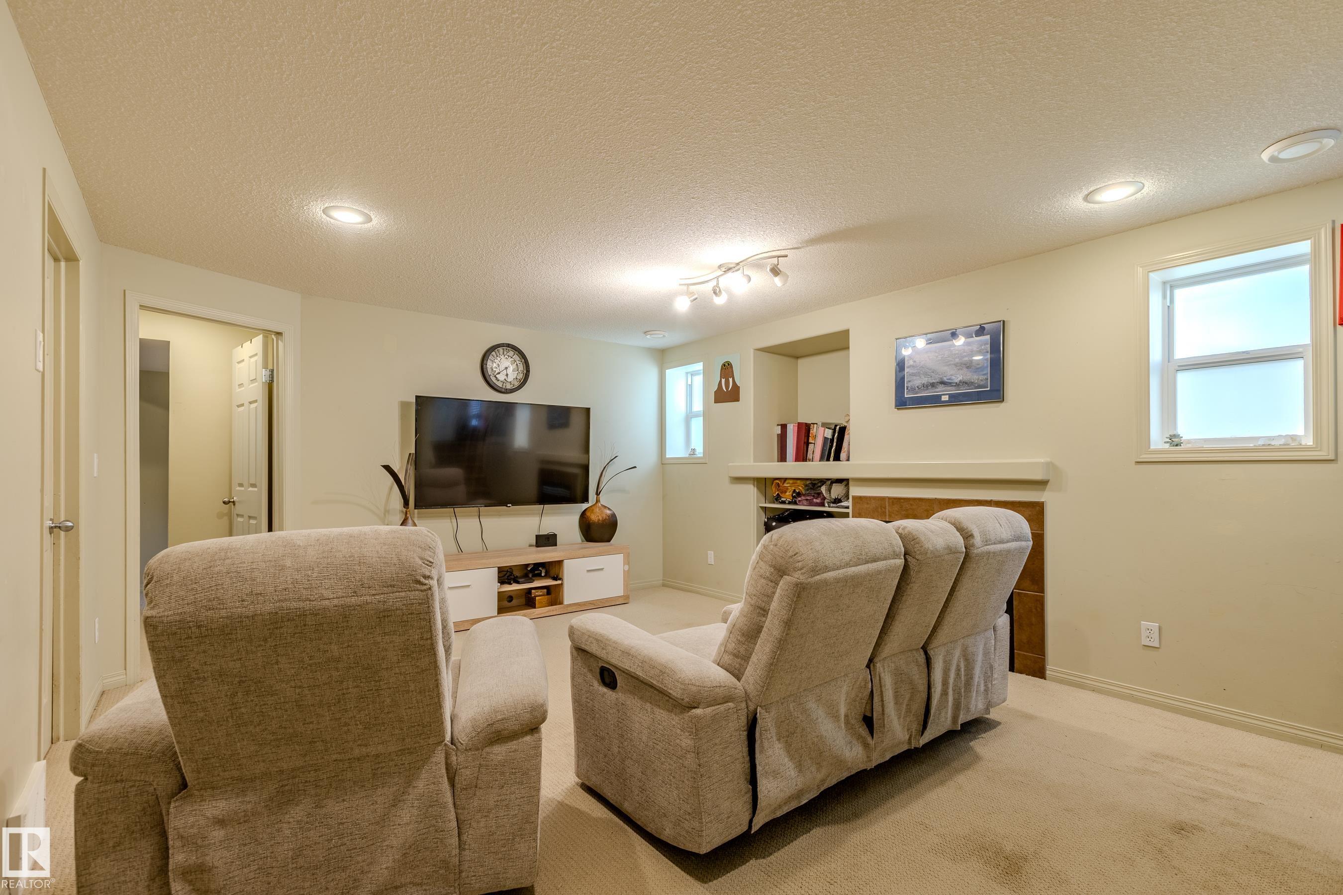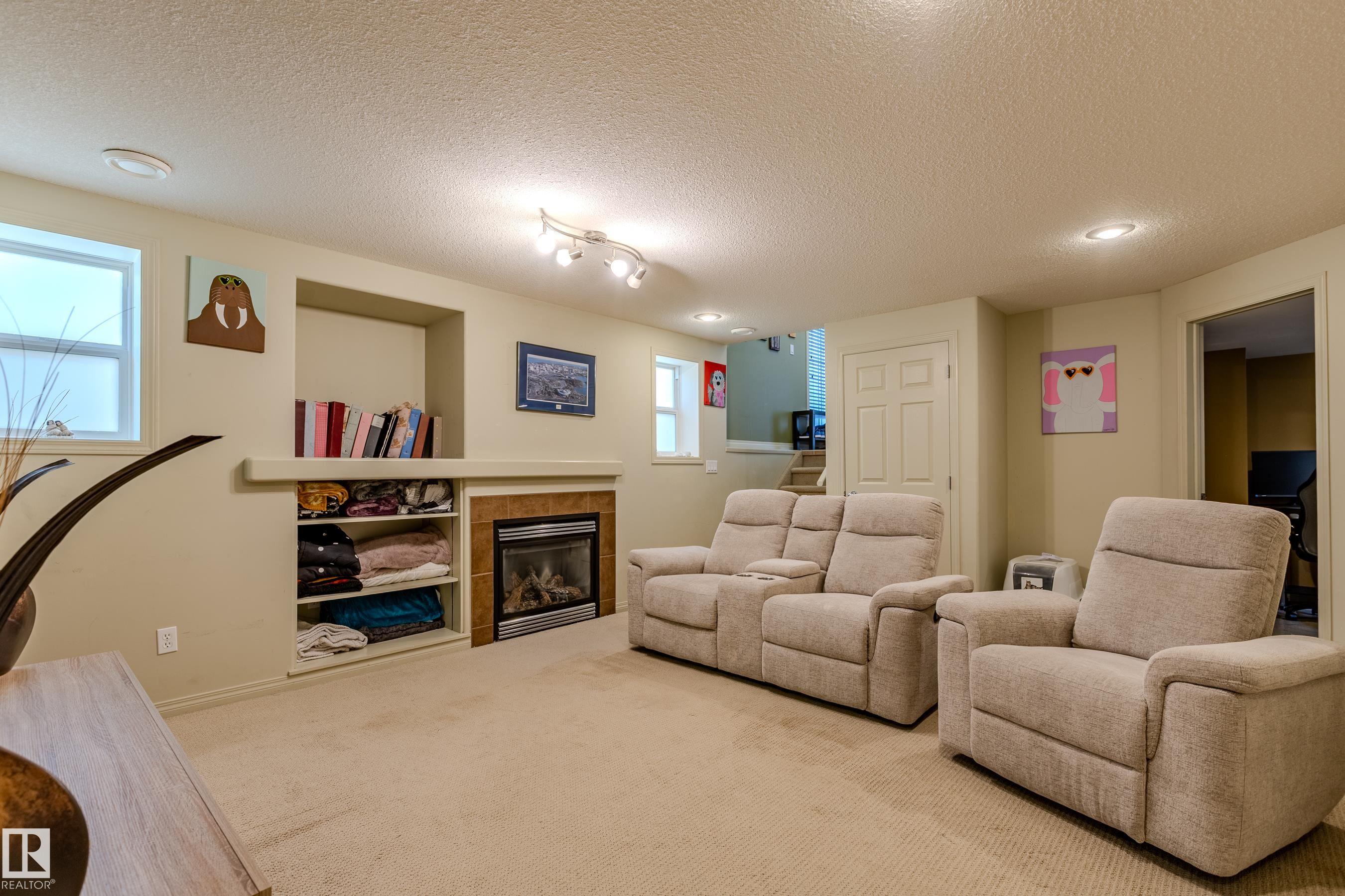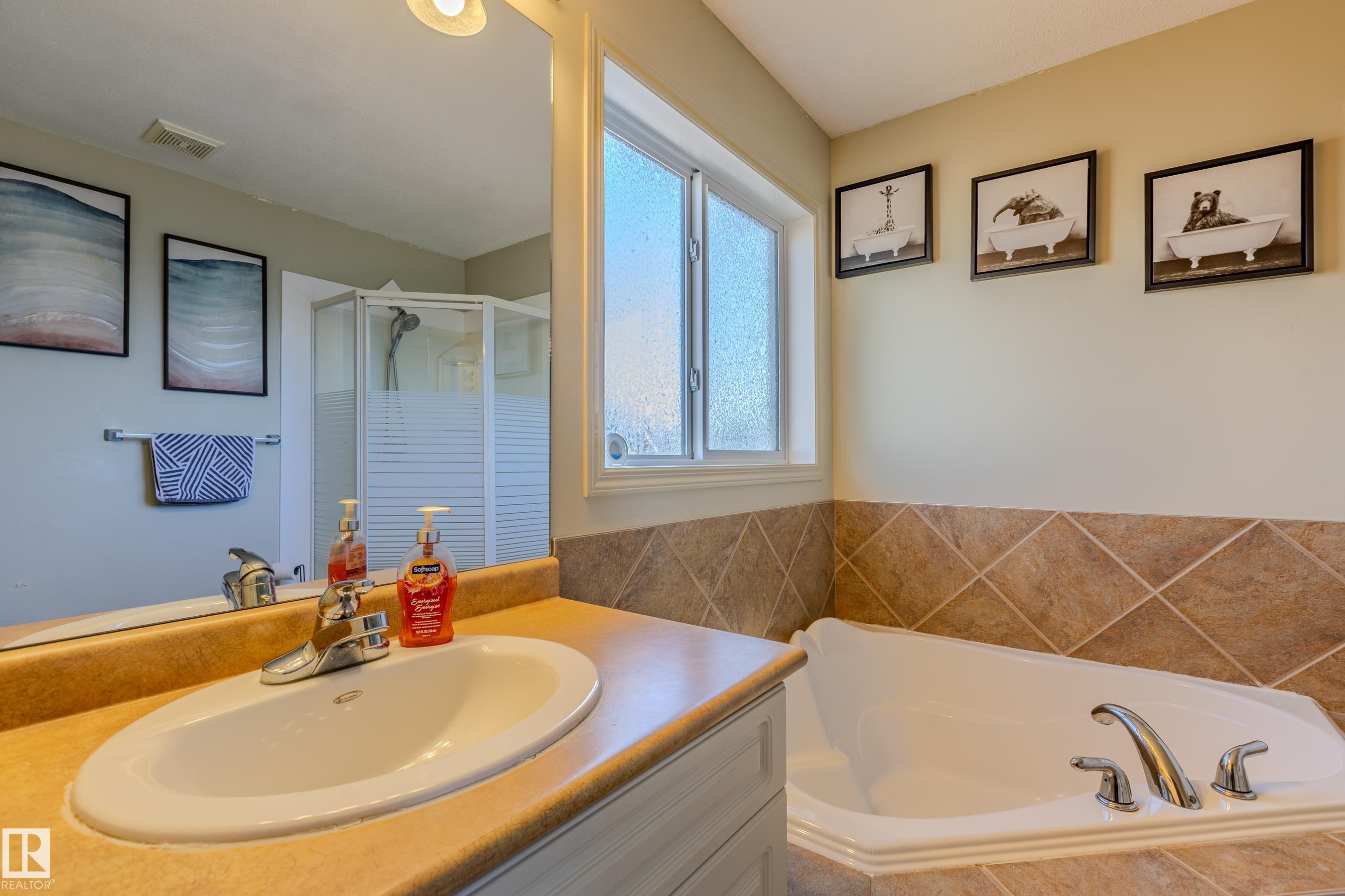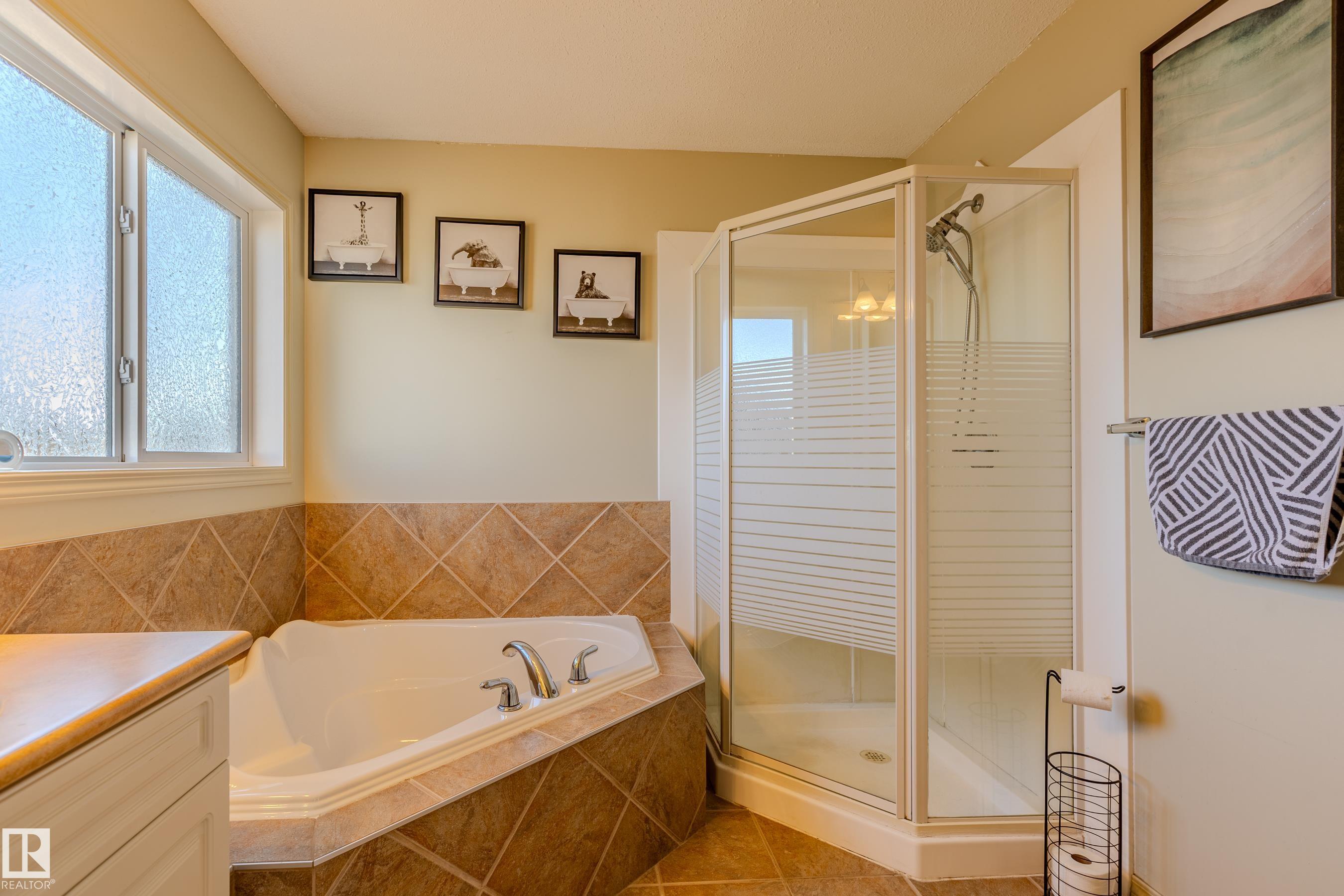 Welcome to this beautiful bi-level perfectly situated in a family-friendly neighborhood just steps from schools, playgrounds & scenic walking trails! Step inside to discover an inviting open-concept main floor featuring vaulted ceilings that create a bright & spacious feel. The kitchen flows seamlessly into the dining area from the living area. 4 piece bathroom & bedroom situated next to living area. The primary bedroom offers a private retreat complete with a walk-in closet & an ensuite featuring a soaker tub & walk-in shower. The fully finished basement is designed for comfort -- enjoy cozy family movie nights by the gas fireplace in the generous rec room. The lower level also includes two additional bedrooms & a half bath, providing plenty of space for family or guests. Additional highlights include Air-Conditioning & NEW fridge, washer & dryer. Fully fenced south facing backyard has deck & firepit. This home combines comfort, functionality & an unbeatable location with the whole family in mind.
