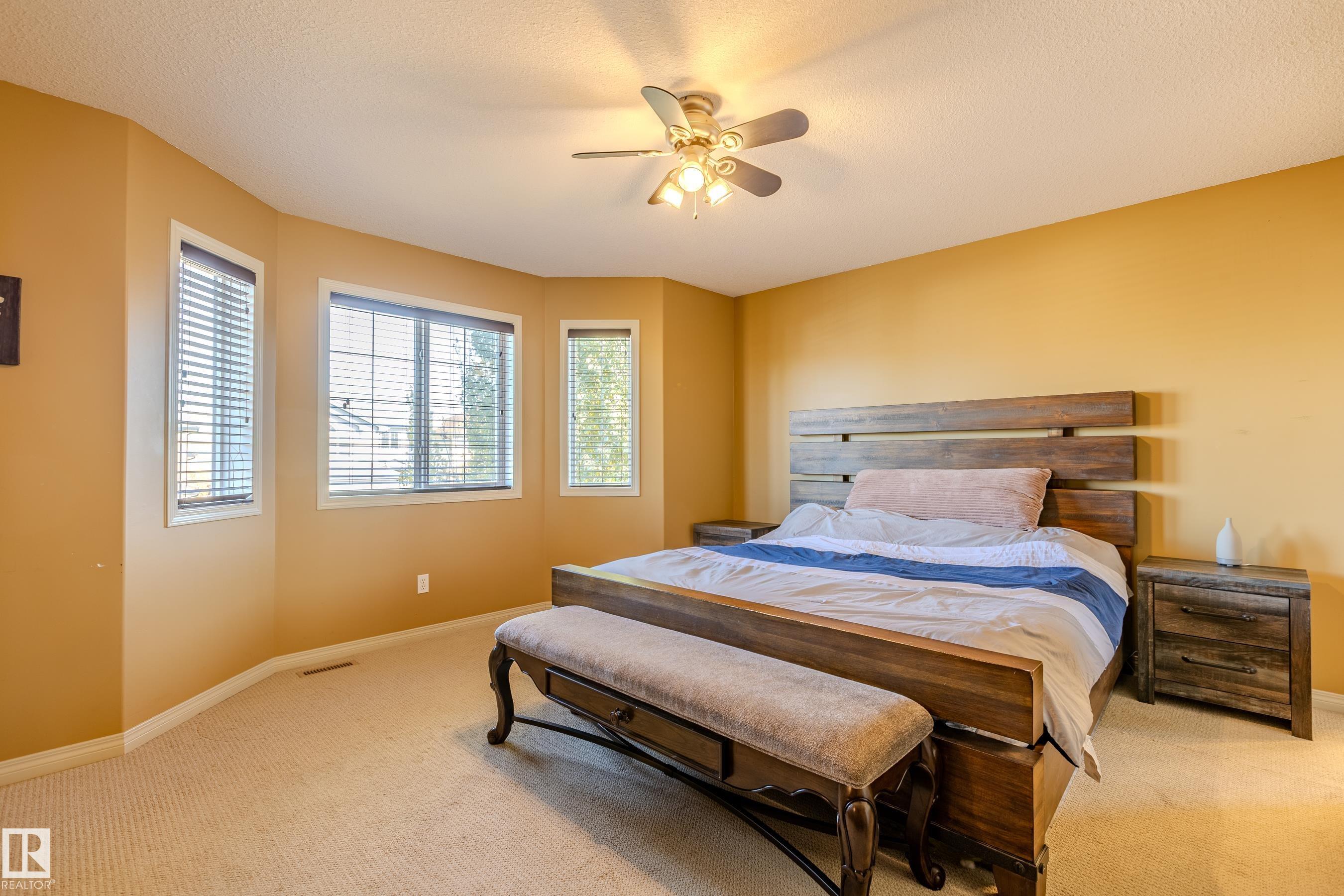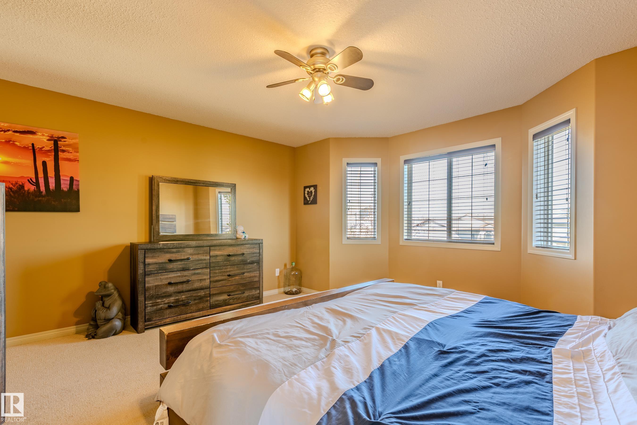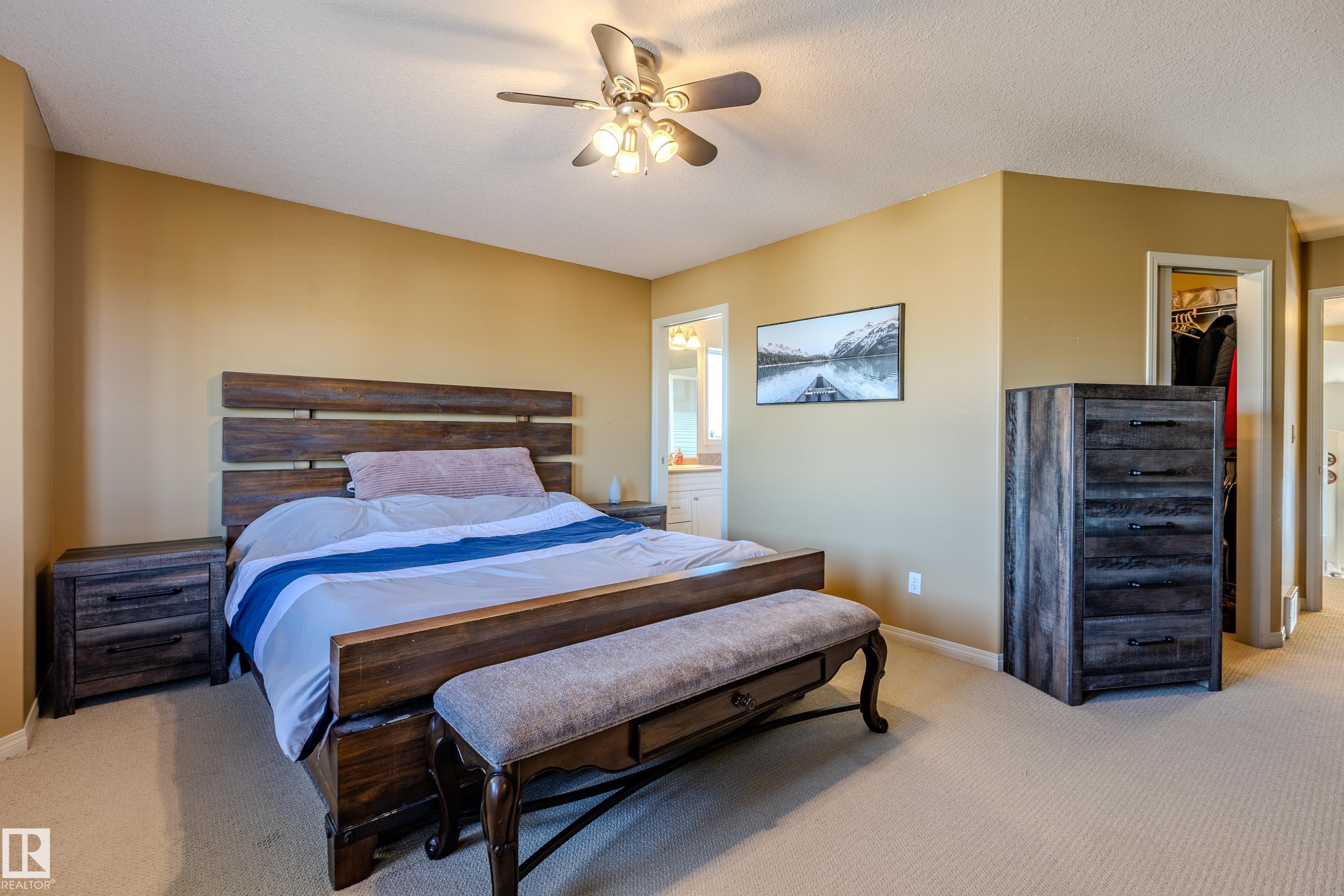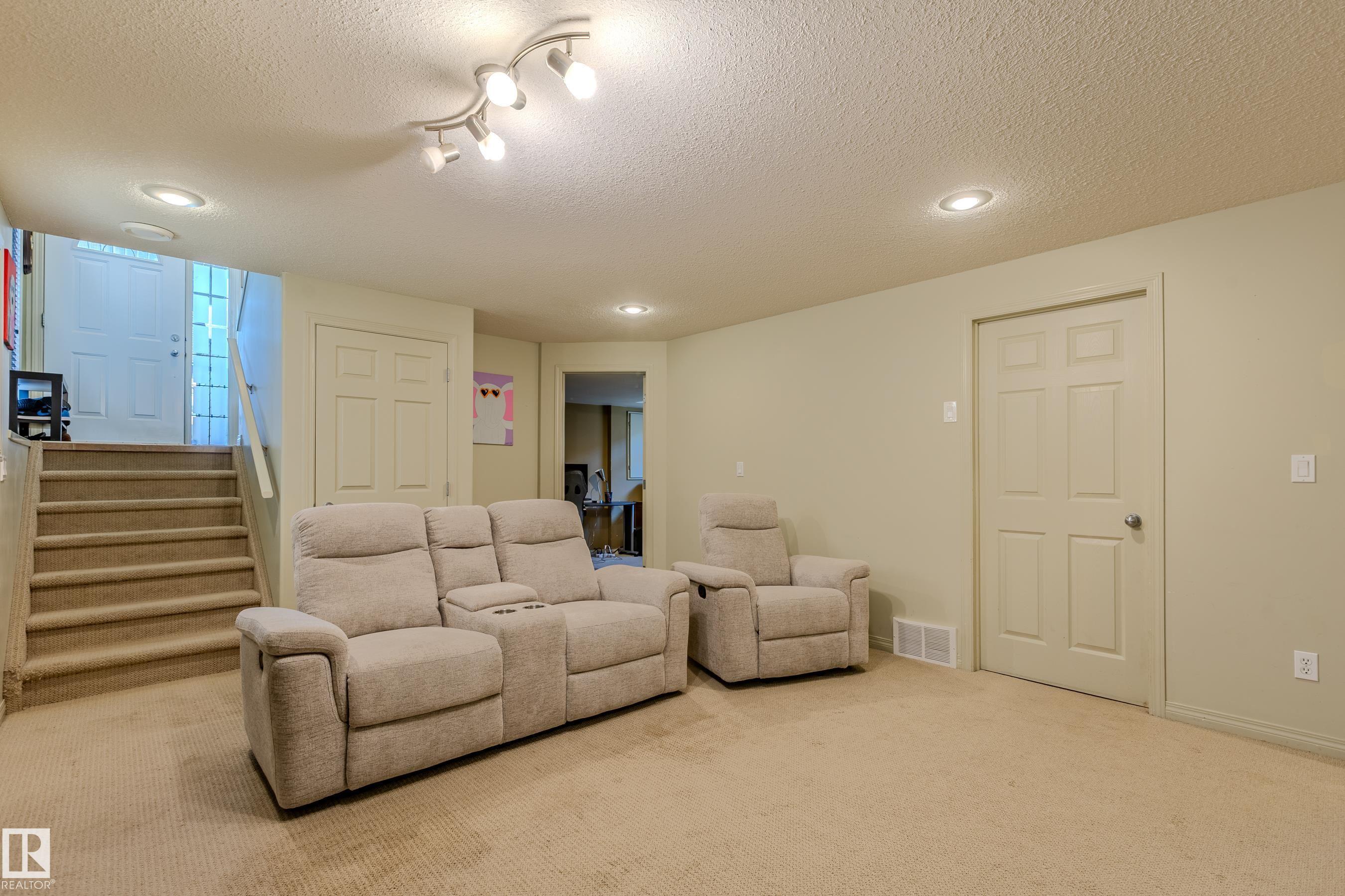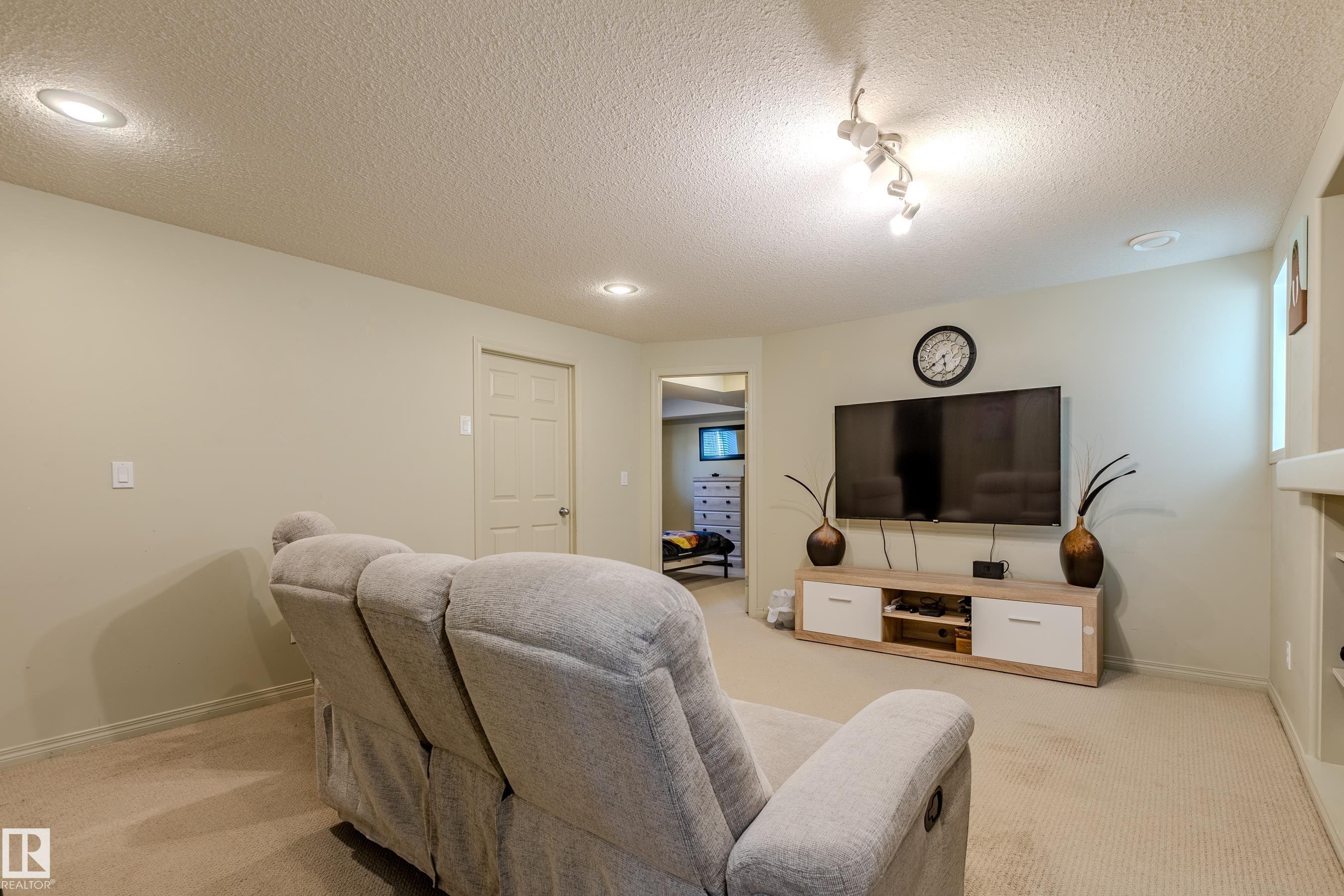 Welcome to this beautiful bi-level perfectly situated in a family-friendly neighborhood just steps from schools, playgrounds & scenic walking trails! Step inside to discover an inviting open-concept main floor featuring vaulted ceilings that create a bright & spacious feel. The kitchen flows seamlessly into the dining area from the living area. 4 piece bathroom & bedroom situated next to living area. The primary bedroom offers a private retreat complete with a walk-in closet & an ensuite featuring a soaker tub & walk-in shower. The fully finished basement is designed for comfort -- enjoy cozy family movie nights by the gas fireplace in the generous rec room. The lower level also includes two additional bedrooms & a half bath, providing plenty of space for family or guests. Additional highlights include Air-Conditioning & NEW fridge, washer & dryer. Fully fenced south facing backyard has deck & firepit. This home combines comfort, functionality & an unbeatable location with the whole family in mind.